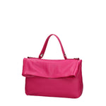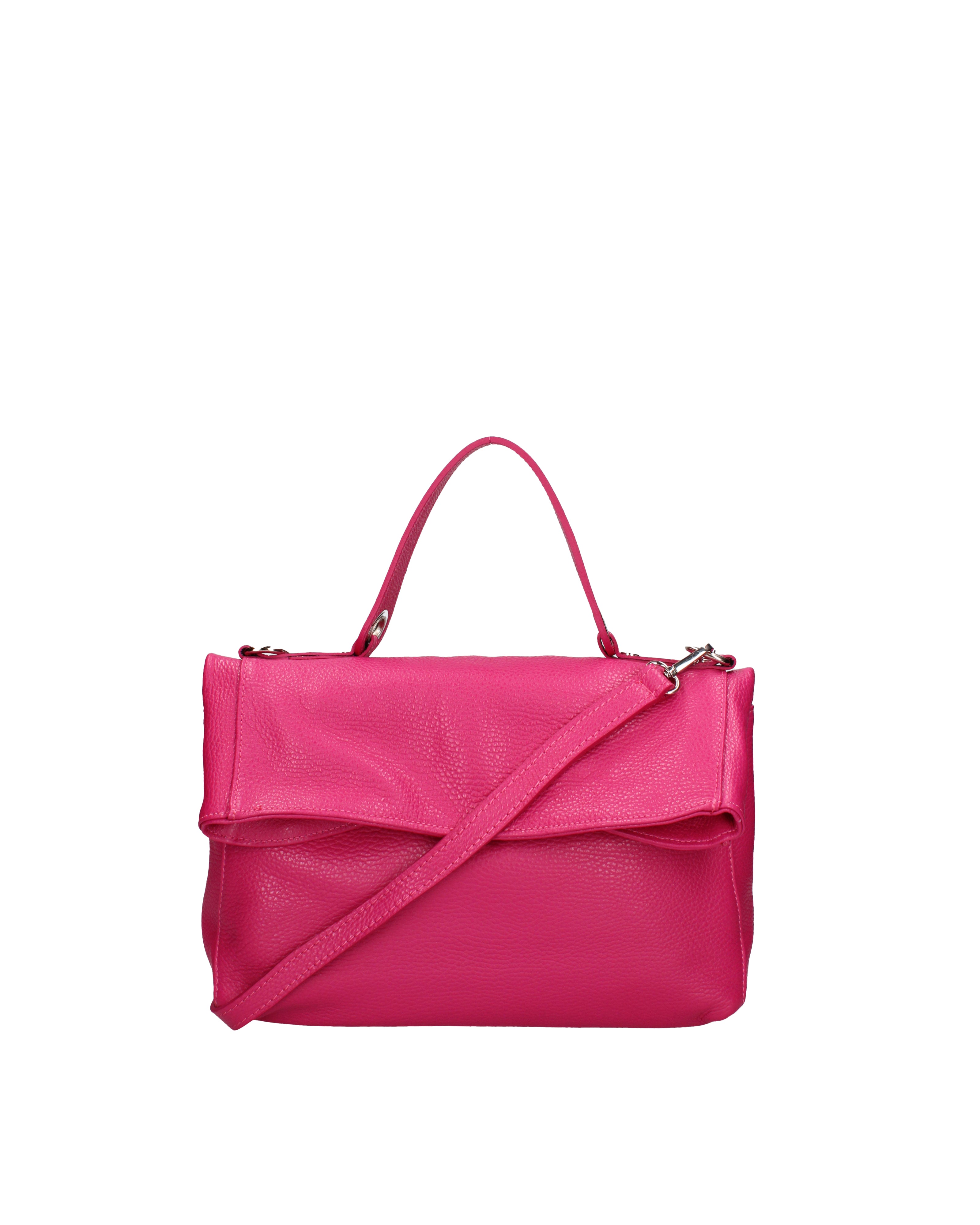 Women's shoulder bag that converts into a backpack. It has a snap closure. There are one internal zip pocket and one open pocket. There are no external pockets. The shoulder strap is adjustable and removable in leather. The handle is made of leather. There is one internal compartment. The exterior is made of genuine cowhide leather. The interior is lined with 70% cotton - 30% polyester fabric. Dimensions: 34 x 21 x 12 cm. Made in Italy
