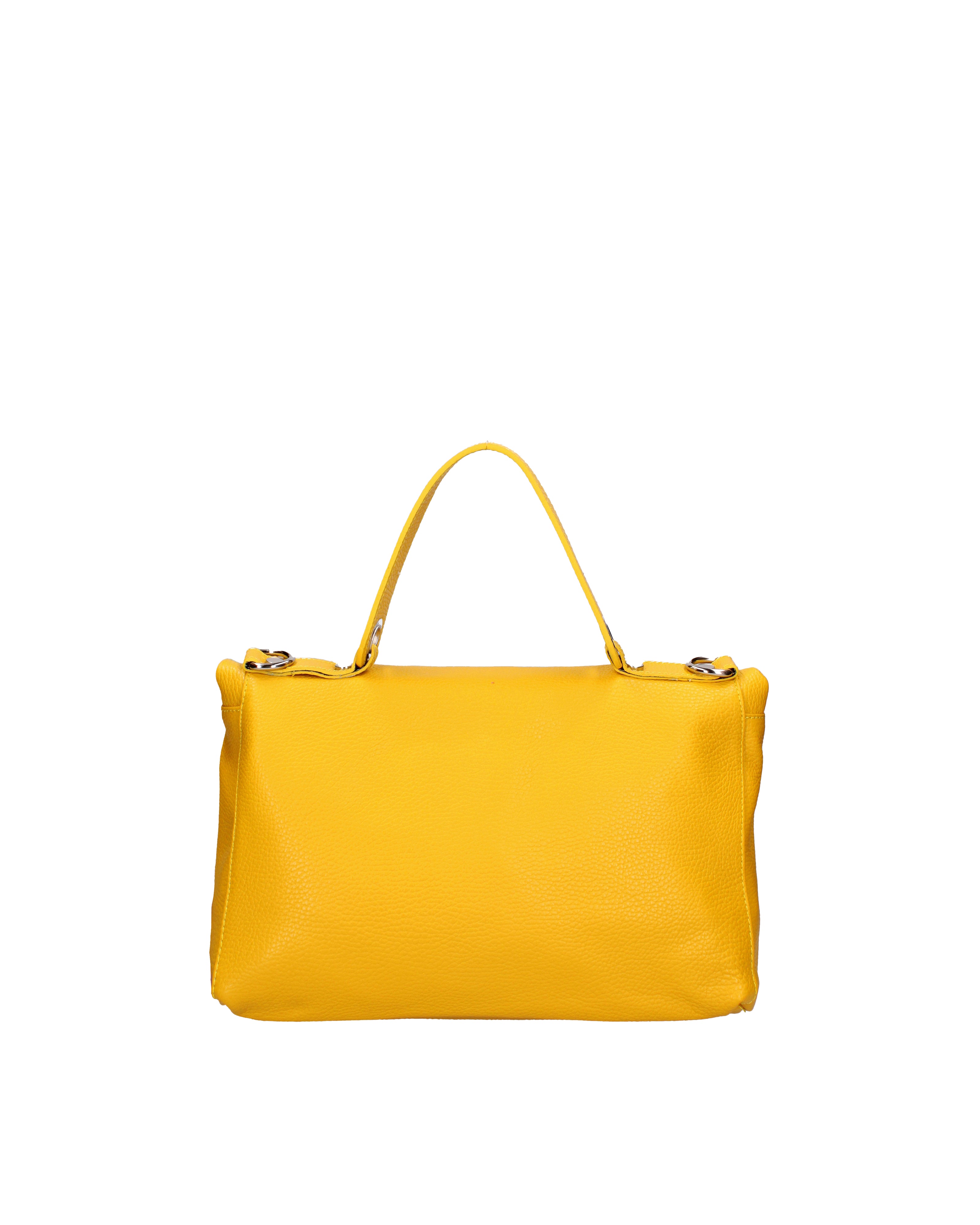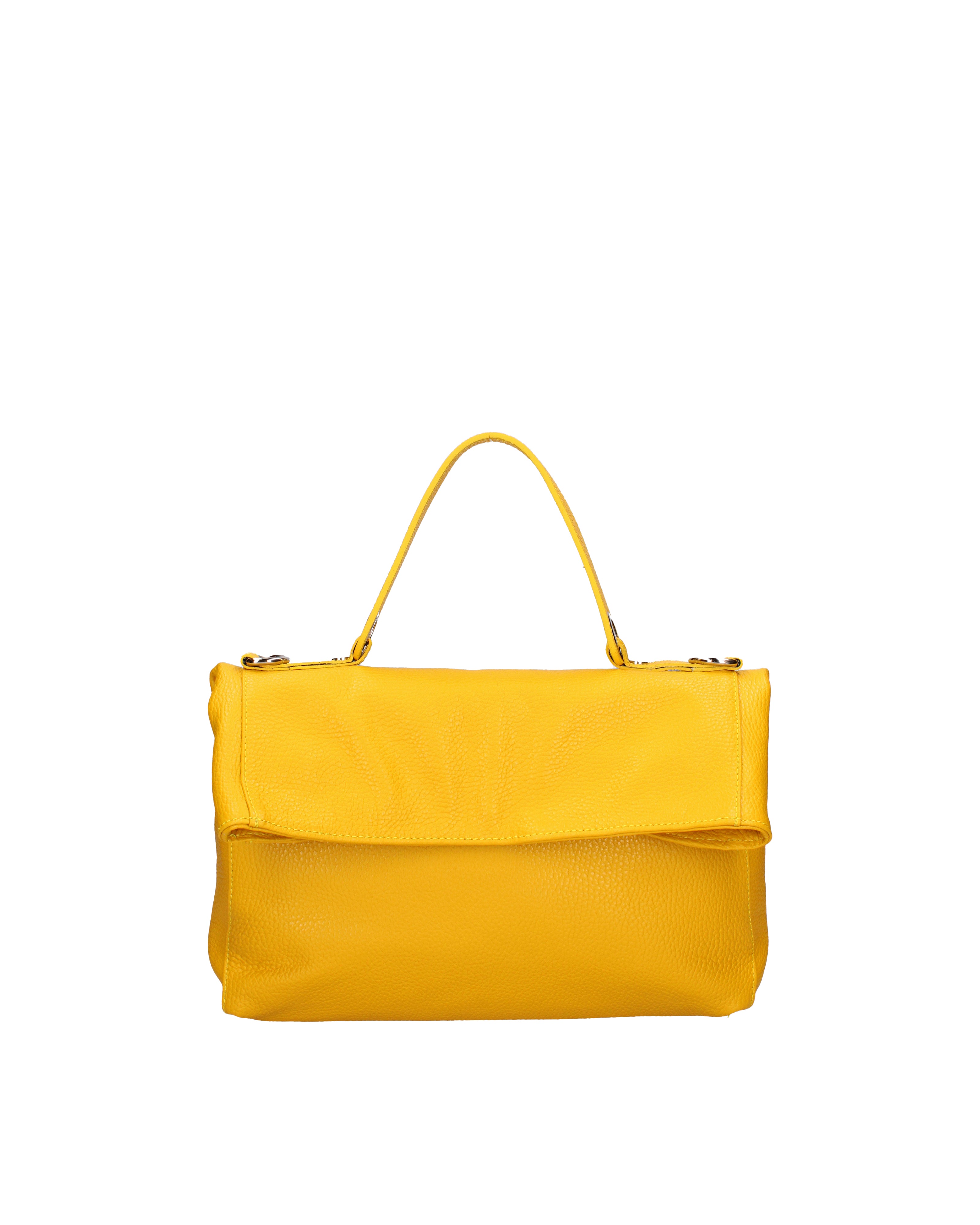 Women's shoulder bag that converts into a backpack. It has a snap closure. There are one internal zip pocket and one open pocket. There are no external pockets. The shoulder strap is adjustable and removable in leather. The handle is made of leather. There is one internal compartment. The exterior is made of genuine cowhide leather. The interior is lined with 70% cotton - 30% polyester fabric. Dimensions: 34 x 21 x 12 cm. Made in Italy