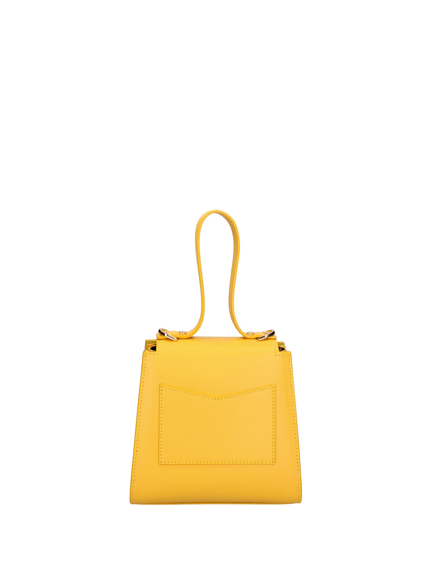 Women's handbag. It has a twist lock closure. There are one internal zip pocket. There is one external open pocket on the back. The shoulder strap is adjustable and removable in leather. The handle is made of leather. There are one internal compartment. The exterior material is genuine wrinkled leather. The interior is lined with genuine leather. Dimensions: 20x18x10 cm. Made in Italy