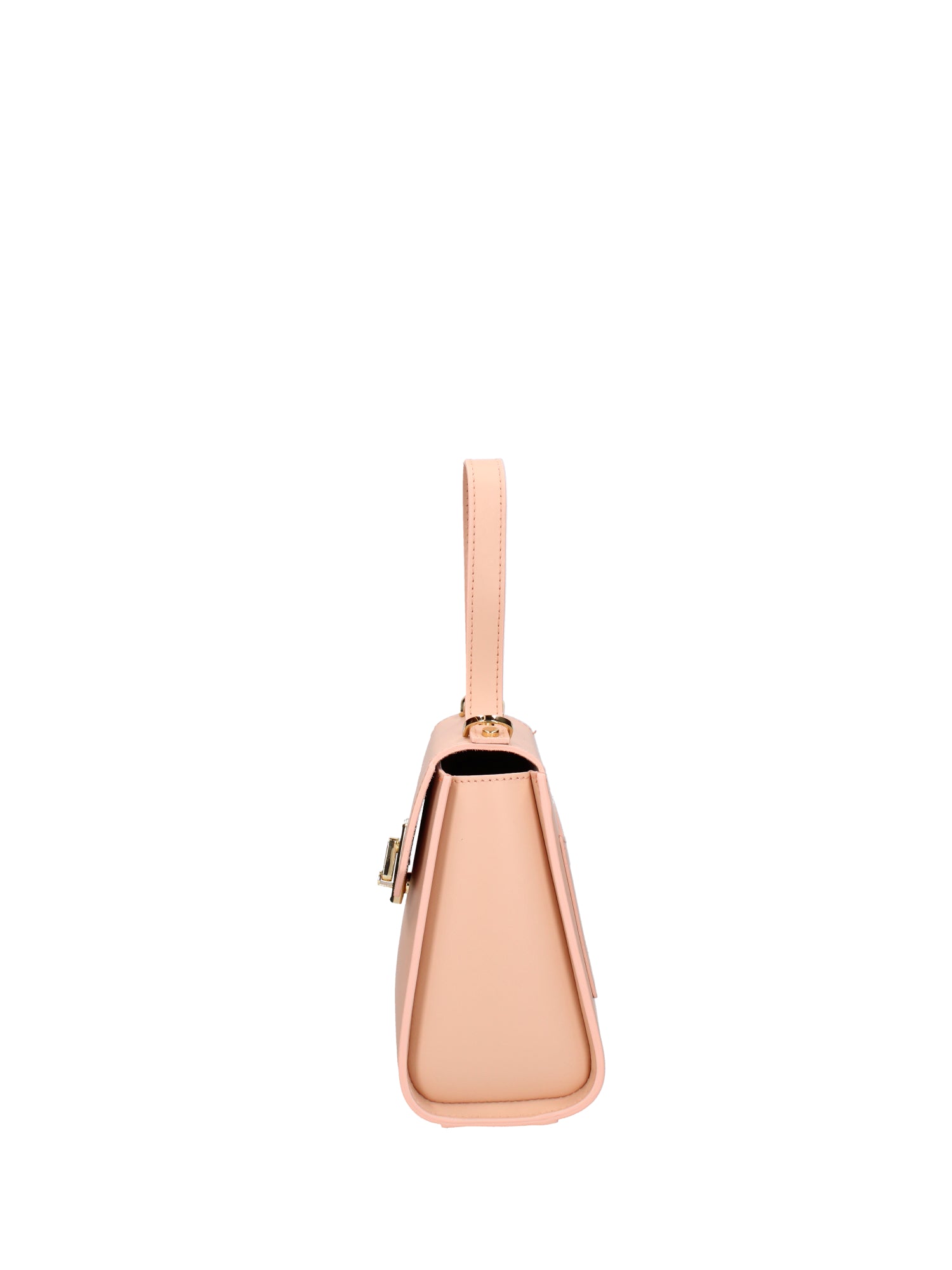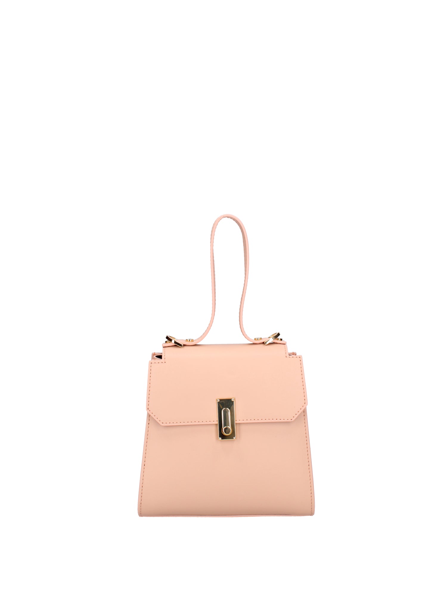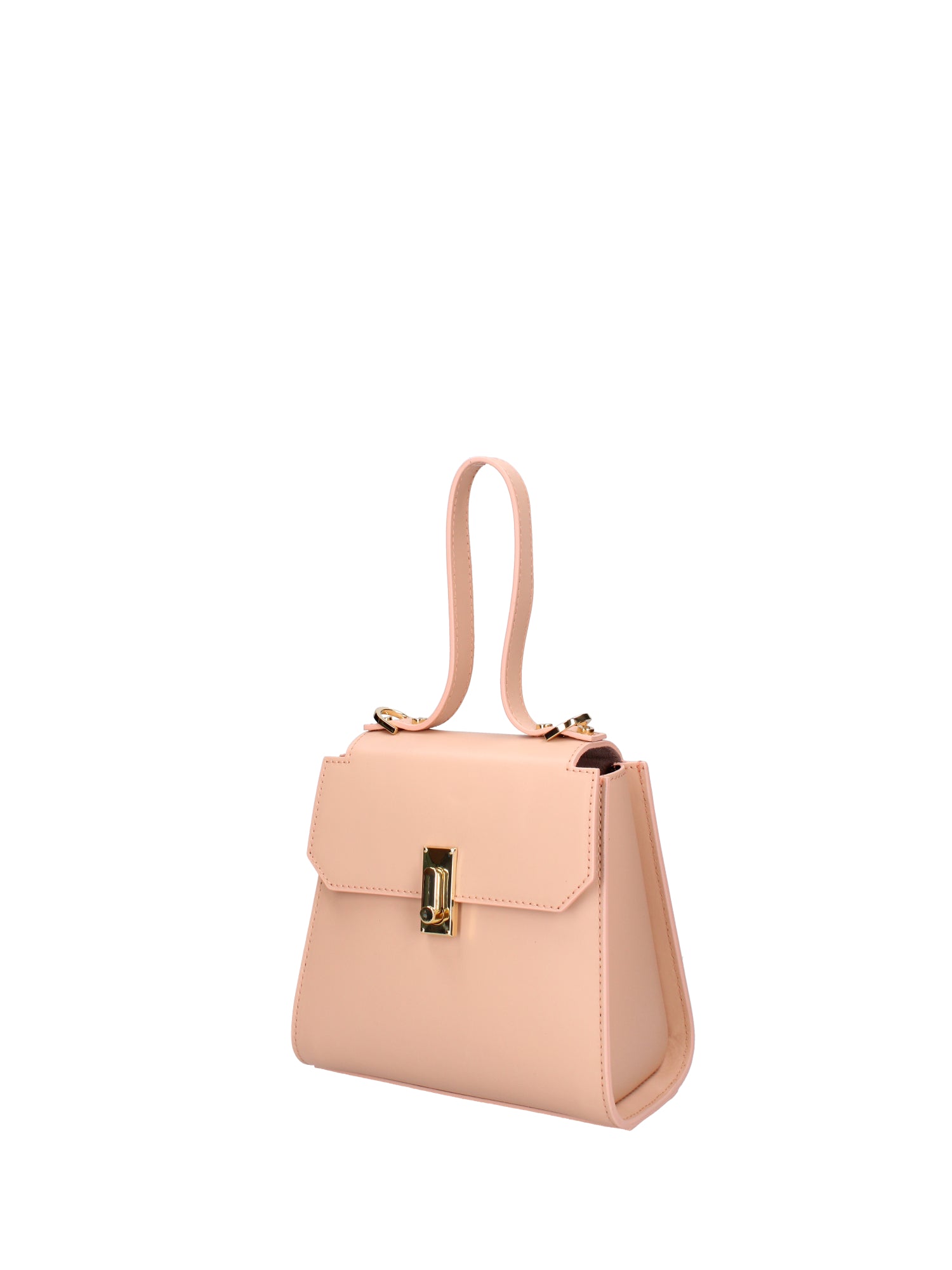 Women's handbag. It has a twist lock closure. There are one internal zip pocket. There is one external open pocket on the back. The shoulder strap is adjustable and removable in leather. The handle is made of leather. There are one internal compartment. The exterior material is genuine wrinkled leather. The interior is lined with genuine leather. Dimensions: 20x18x10 cm. Made in Italy