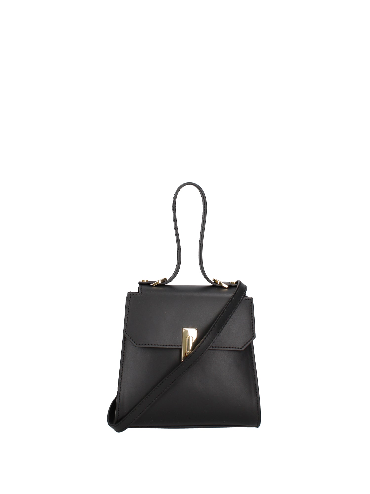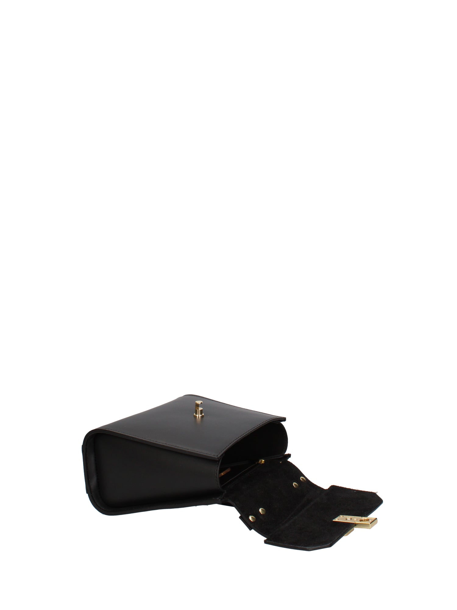 Women's handbag. It has a twist lock closure. There are one internal zip pocket. There is one external open pocket on the back. The shoulder strap is adjustable and removable in leather. The handle is made of leather. There are one internal compartment. The exterior material is genuine wrinkled leather. The interior is lined with genuine leather. Dimensions: 20x18x10 cm. Made in Italy
