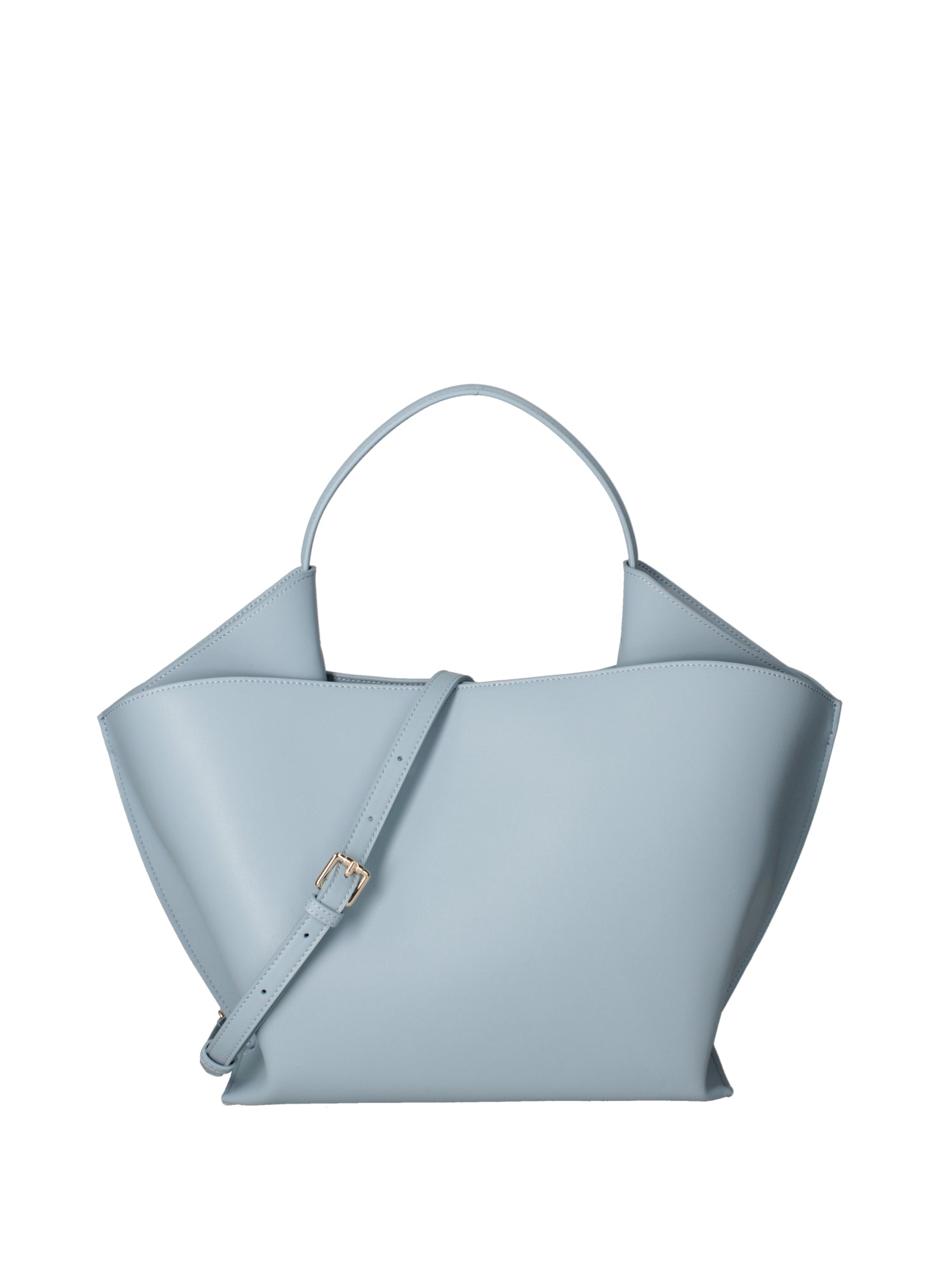 Women's handbag. It closes with a magnetic button. There are one zip pocket and two open pockets inside. There are no external pockets. The shoulder strap is made of bonded leather. The handle is also made of bonded leather. There are two internal compartments. The exterior material is bonded leather. The interior is suede. Dimensions: 42 x 25 x 14 cm. Fashion product