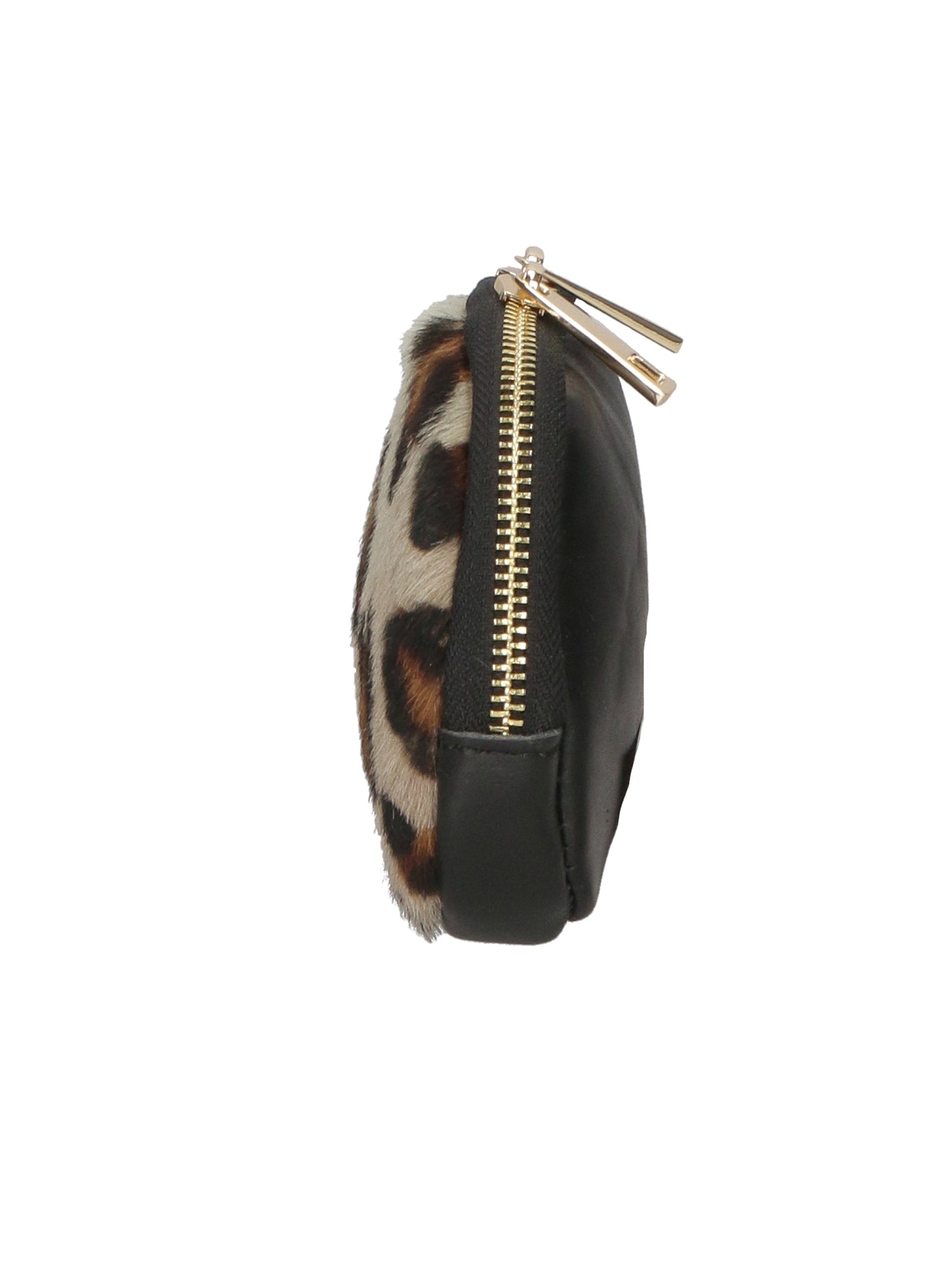 Pochette zippée en cuir véritable Rachele pour femme 02535-LEOPARDO TAUPE