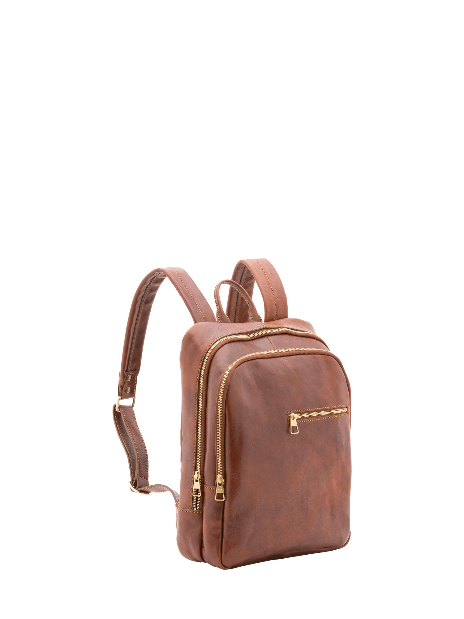 Sac à dos unisexe. La fermeture est à zip. Les poches intérieures sont ouvertes. Les poches extérieures sont au nombre de deux à l'avant avec fermetures éclair. La bandoulière est réglable en cuir. La poignée est en cuir. Il y a un compartiment interne. Le matériau extérieur est 100 % cuir véritable. L'intérieur est doublé en coton. Dimensions : 39x29x10 cm. Fabriqué en Italie