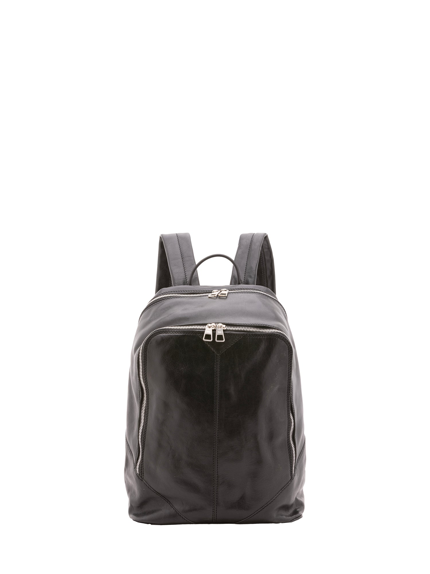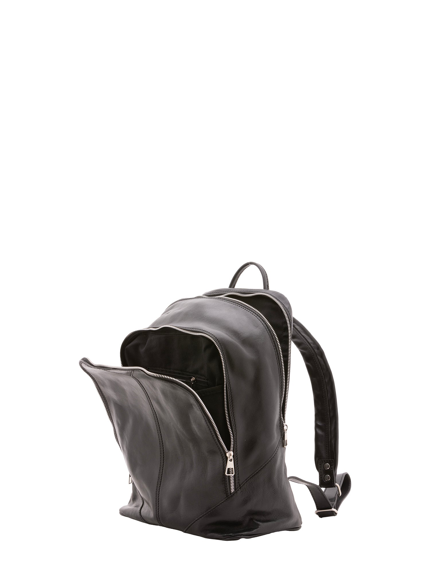 Sac à dos unisexe. La fermeture est à zip. Les poches intérieures sont ouvertes. Les poches extérieures sont une à l'avant avec zip. La bandoulière est réglable en cuir. La poignée est en cuir. Il y a un compartiment interne. Le matériau extérieur est 100 % cuir véritable. L'intérieur est doublé en coton. Dimensions : 30x46x17 cm. Fabriqué en Italie