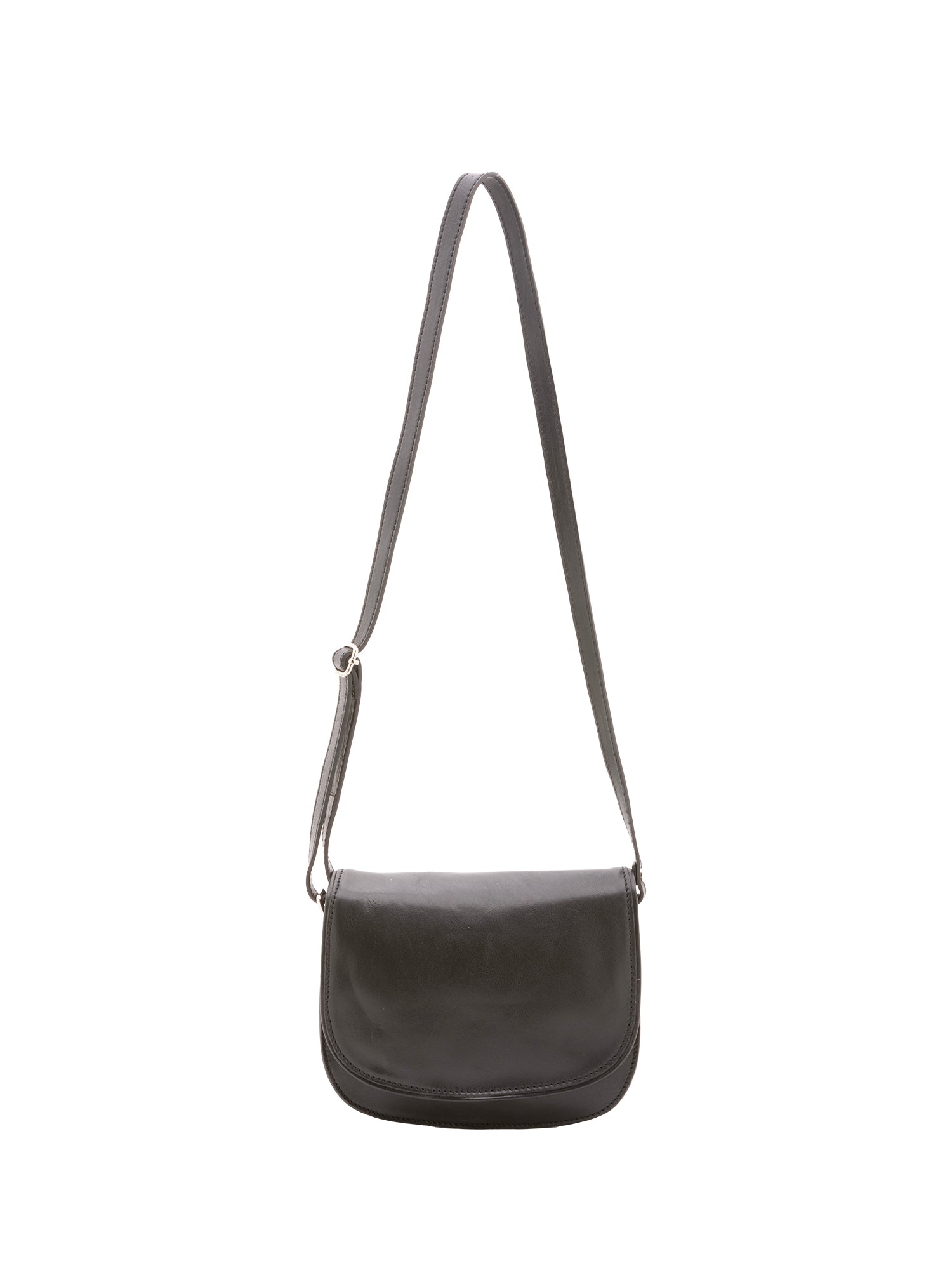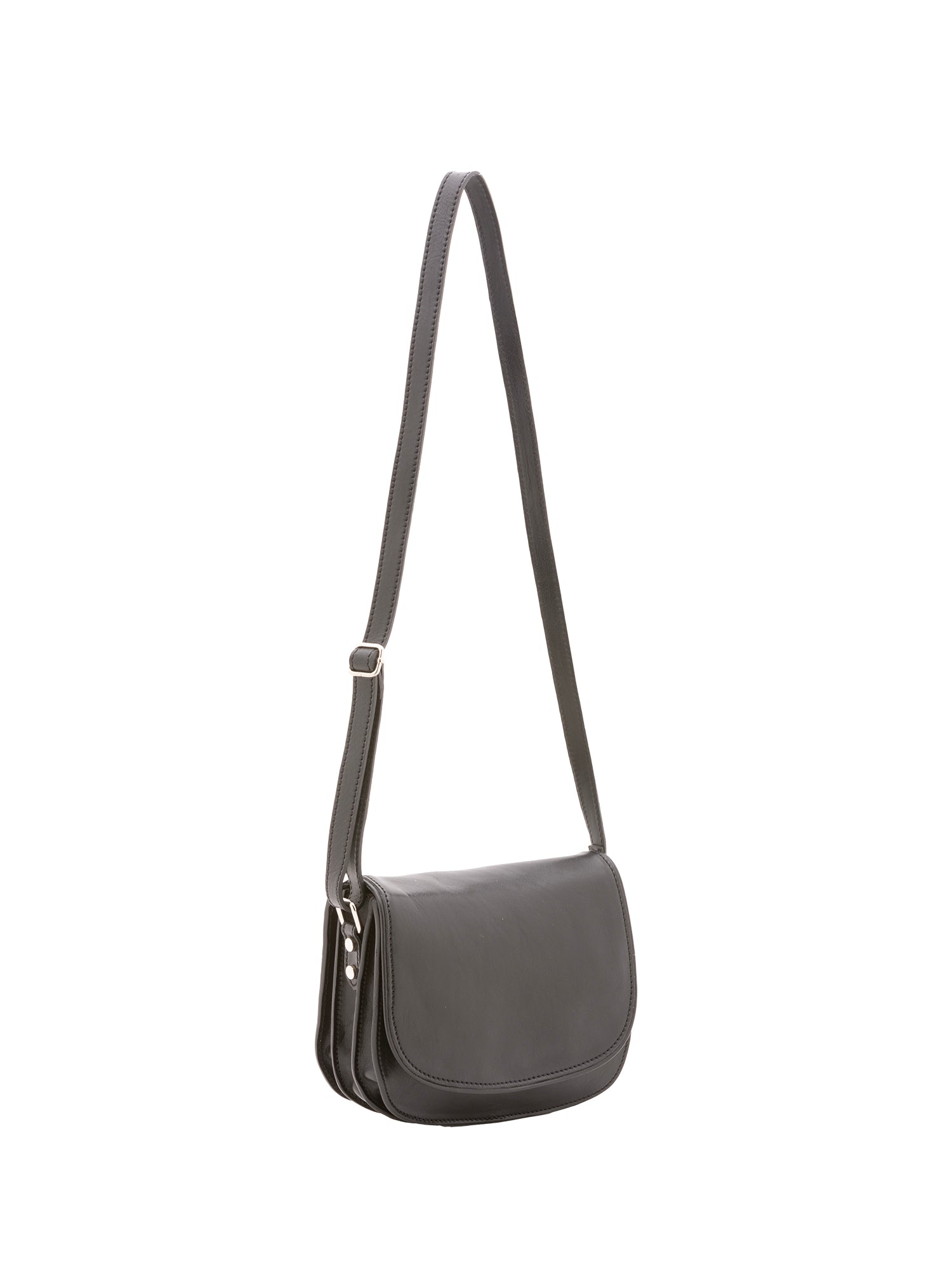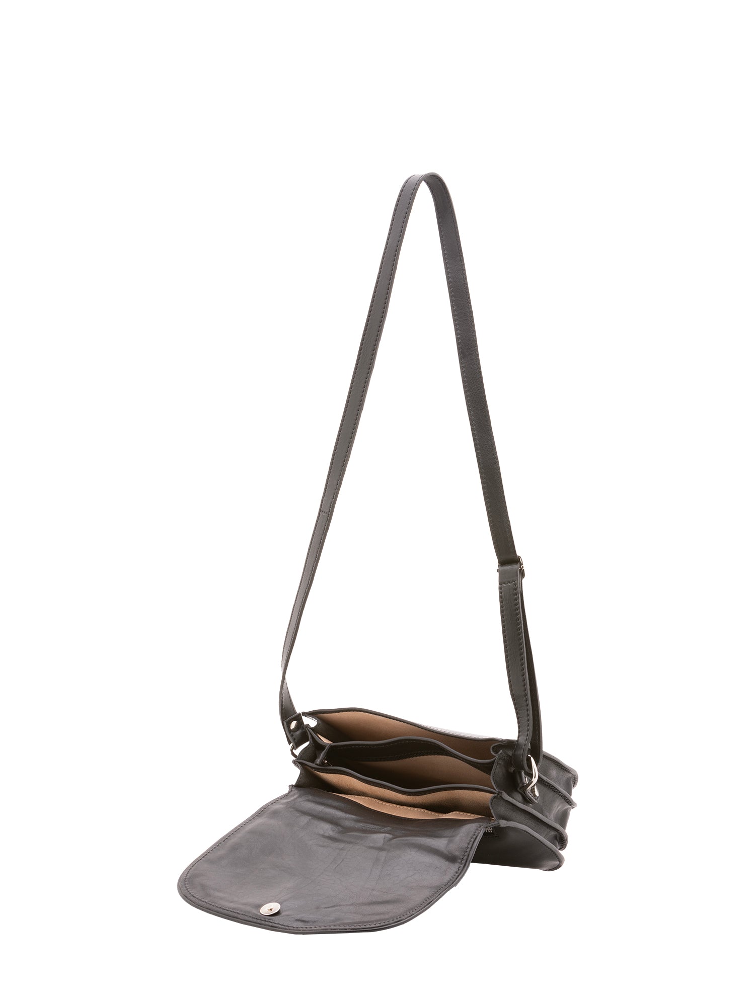 Sac bandoulière pour femme. La fermeture est par bouton pression. Les poches intérieures sont une avec un zip. Les poches extérieures sont une à l'arrière avec zip. La bandoulière est réglable en cuir. La poignée est manquante. Il y a deux compartiments internes. Le matériau extérieur est 100 % cuir véritable. L'intérieur est doublé de cuir véritable. Dimensions : 25x23x11 cm. Fabriqué en Italie