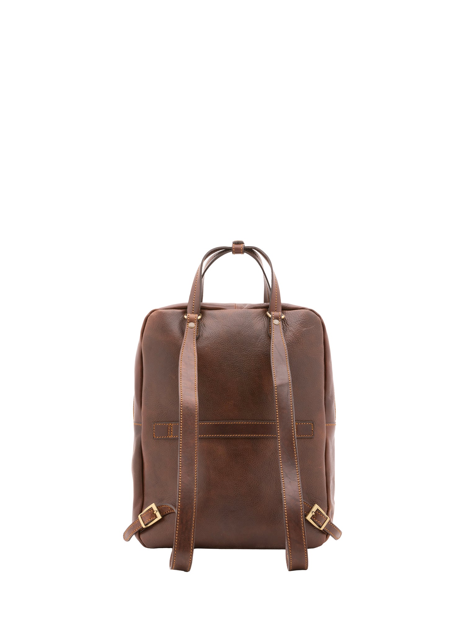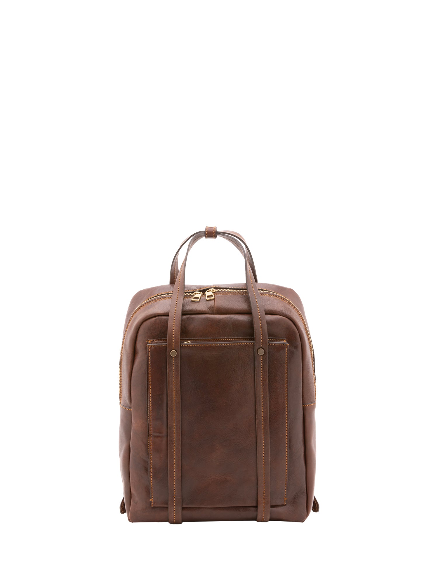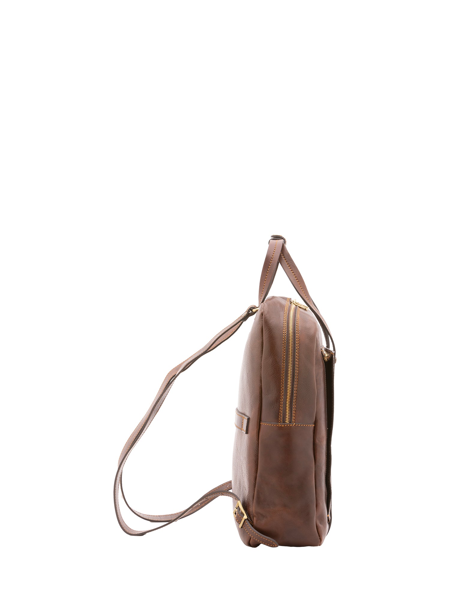 Sac à dos unisexe. La fermeture est à zip. Les poches intérieures sont des poches multifonctionnelles. Les poches extérieures sont une à l'avant avec zip. La bandoulière est réglable en cuir. La poignée est en cuir. Il y a un compartiment interne. Le matériau extérieur est 100 % cuir véritable. L'intérieur est doublé en coton. Dimensions : 43x33x11 cm. Fabriqué en Italie
