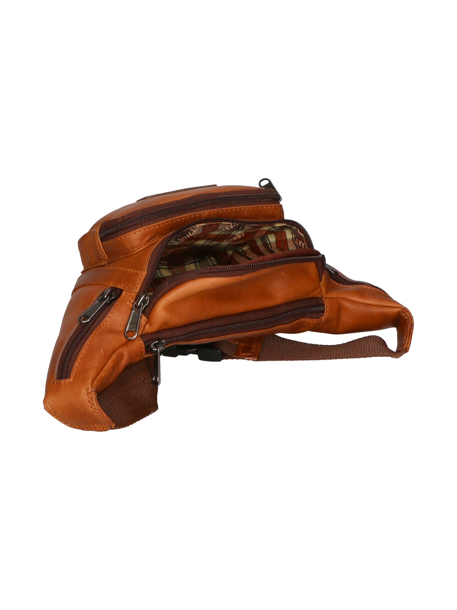 Sac banane homme en véritable cuir de veau graissé avec ceinture réglable.