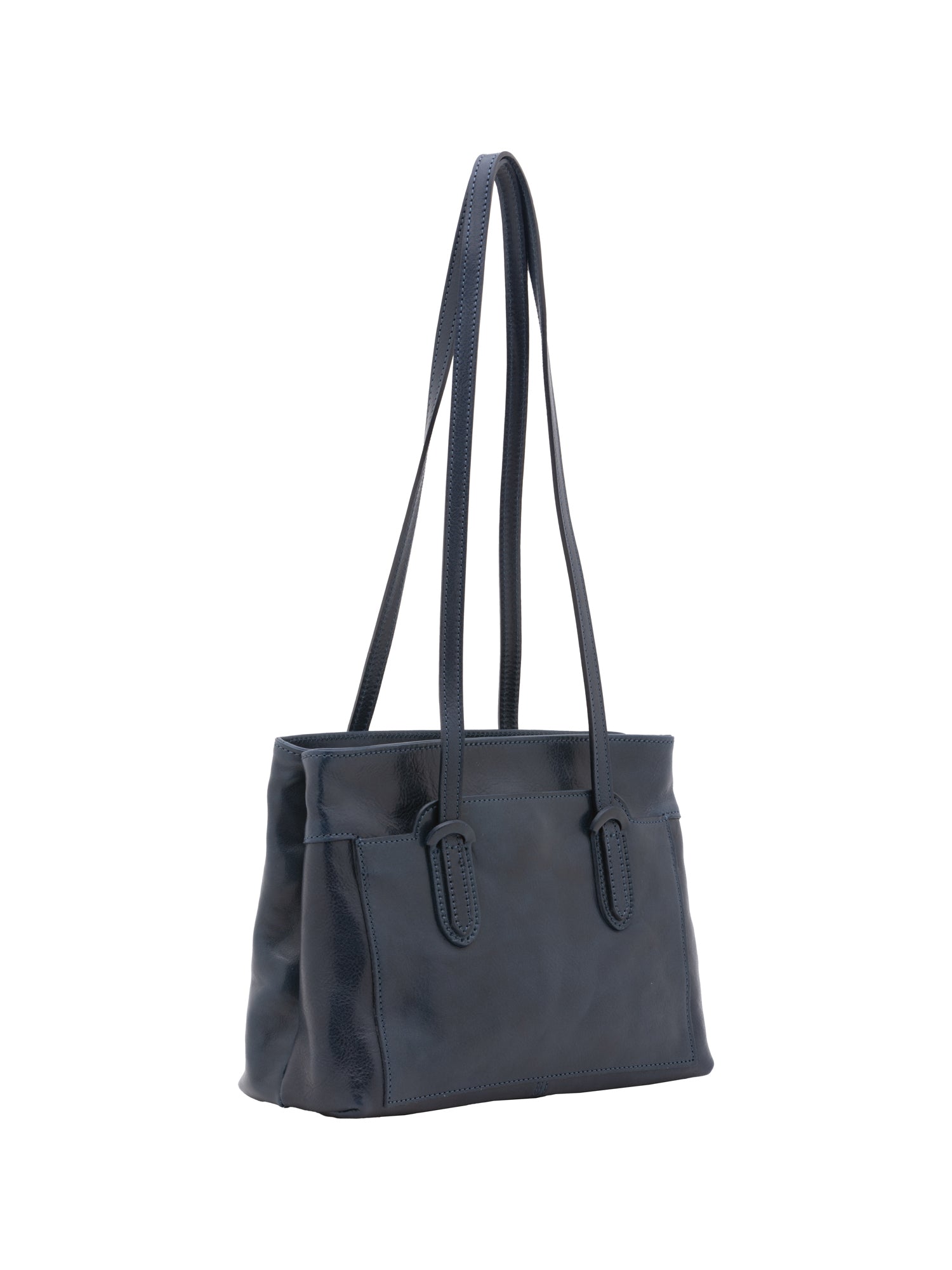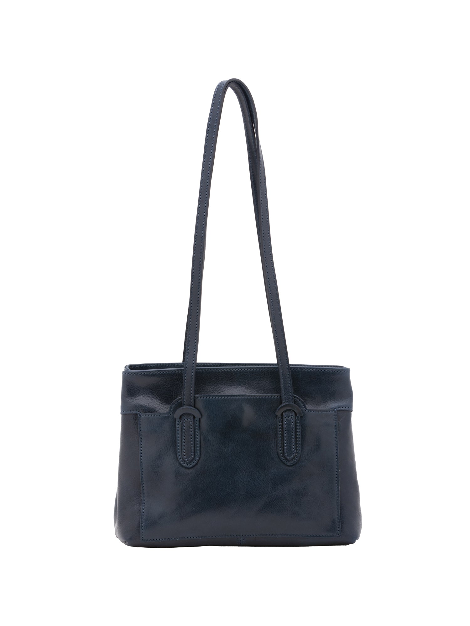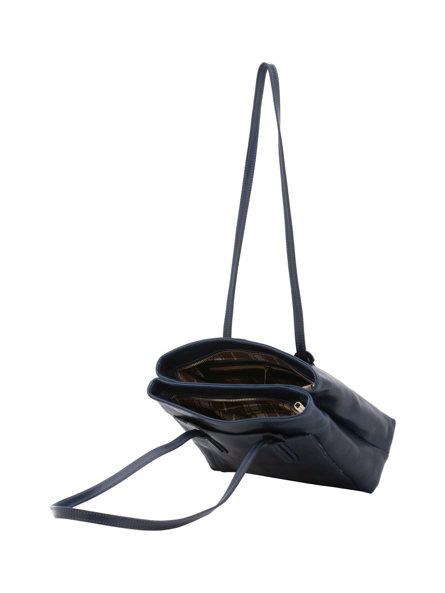 Sac bandoulière pour femme. La fermeture est à zip. Les poches intérieures sont une avec un zip. Les poches extérieures sont ouvertes sur le devant. La bandoulière est manquante. La poignée est en cuir. Il y a deux compartiments internes. Le matériau extérieur est en cuir de vachette véritable. L'intérieur est doublé en coton. Dimensions : 23x30x12 cm. Fabriqué en Italie