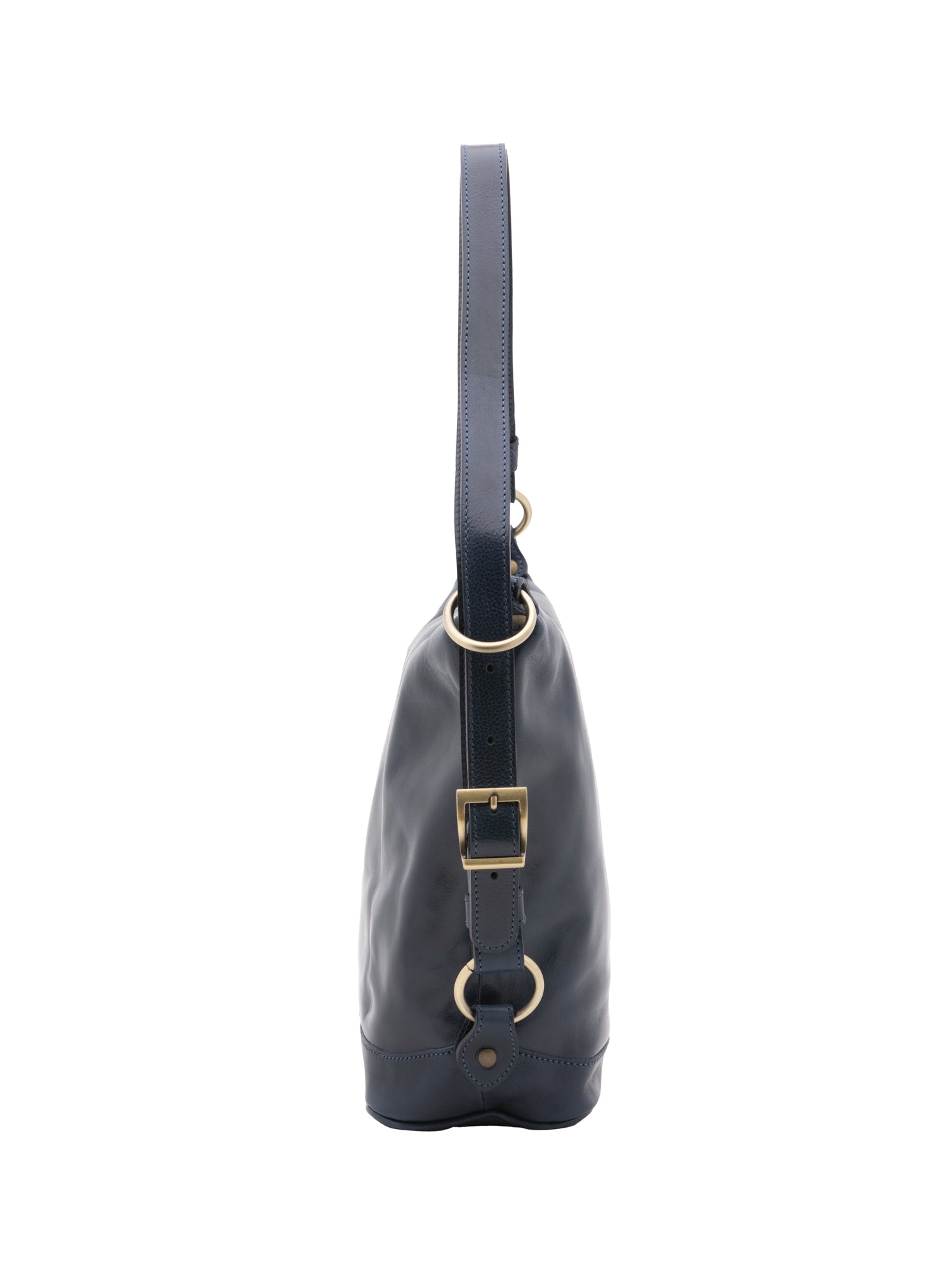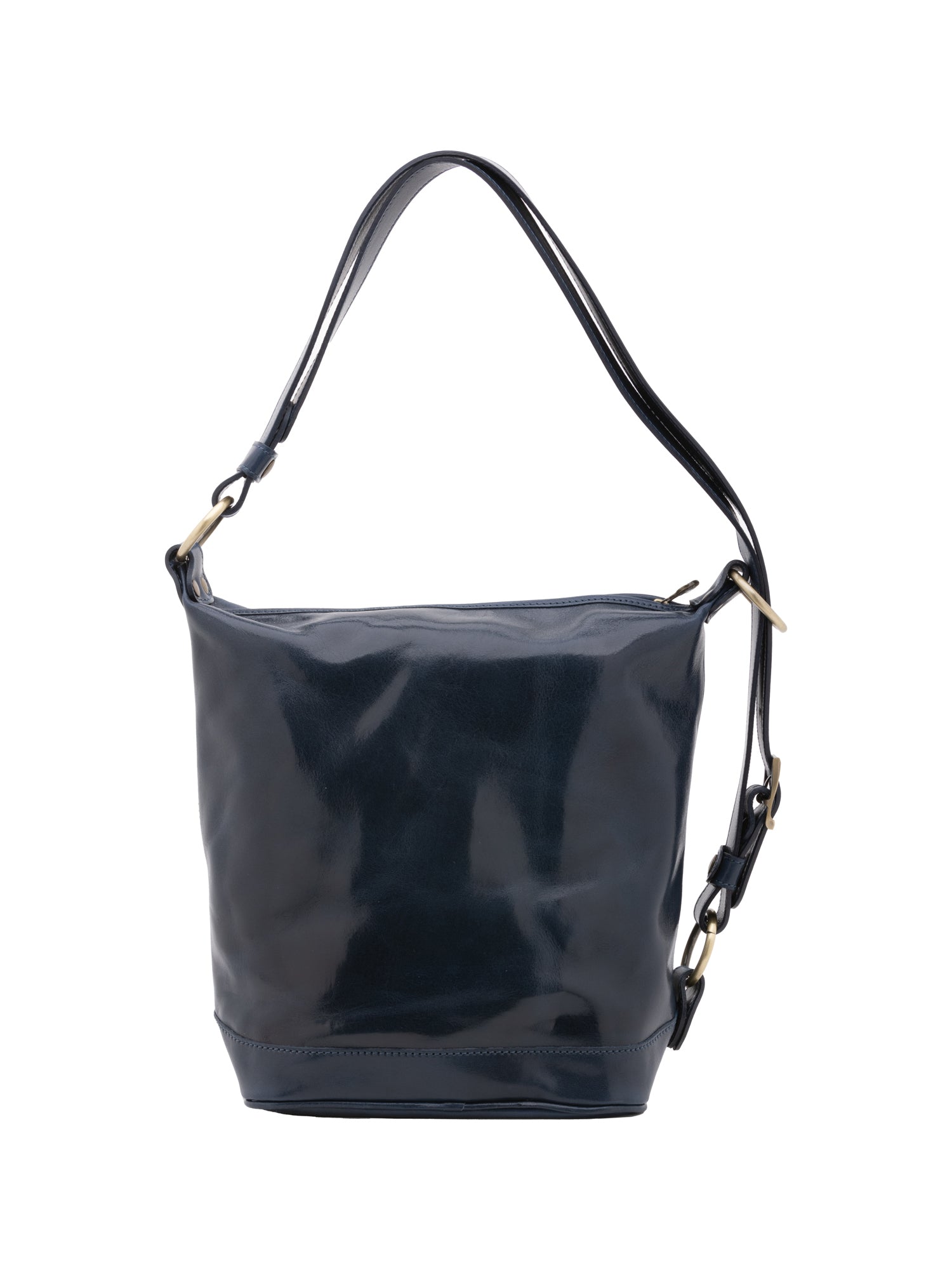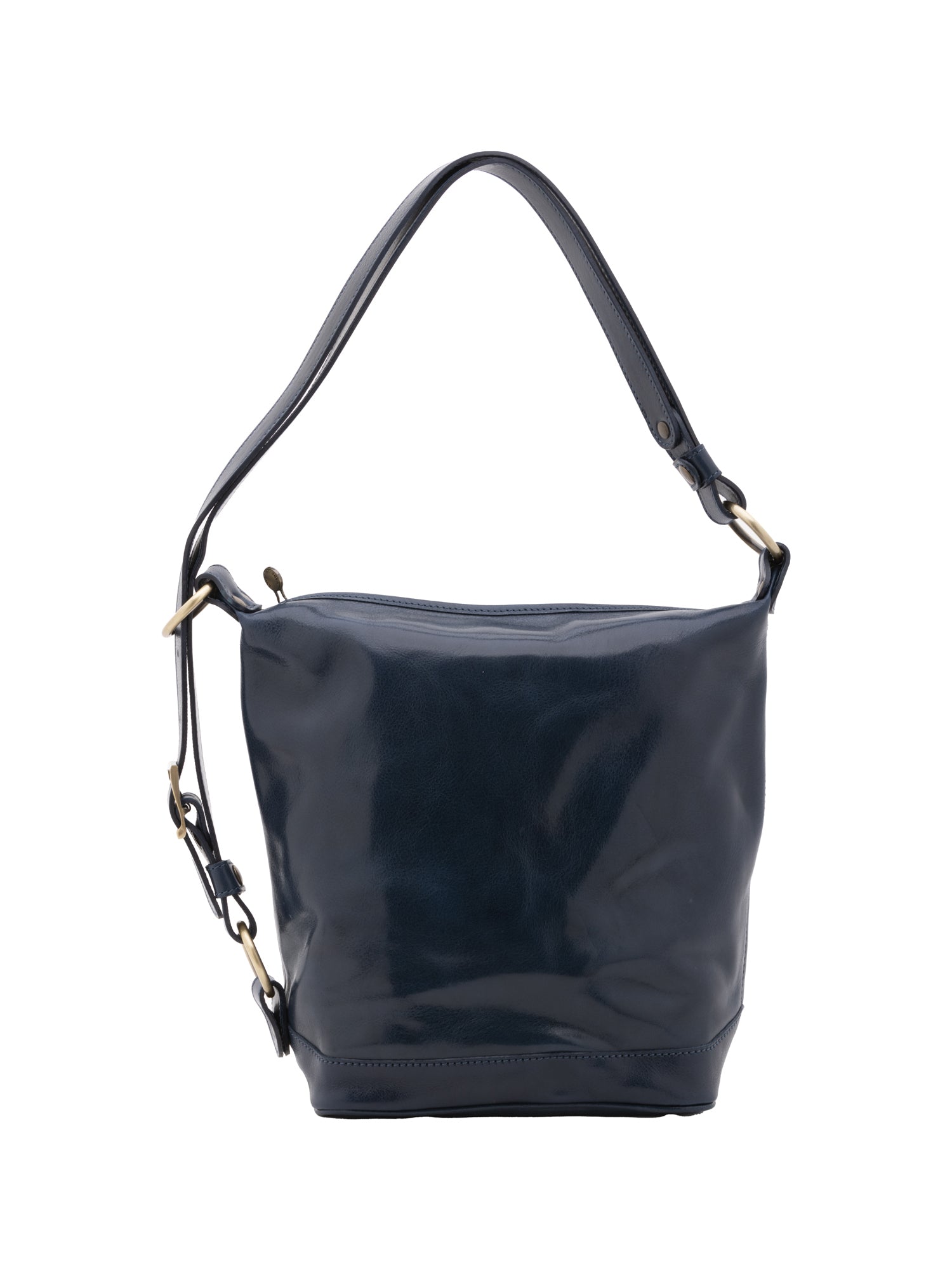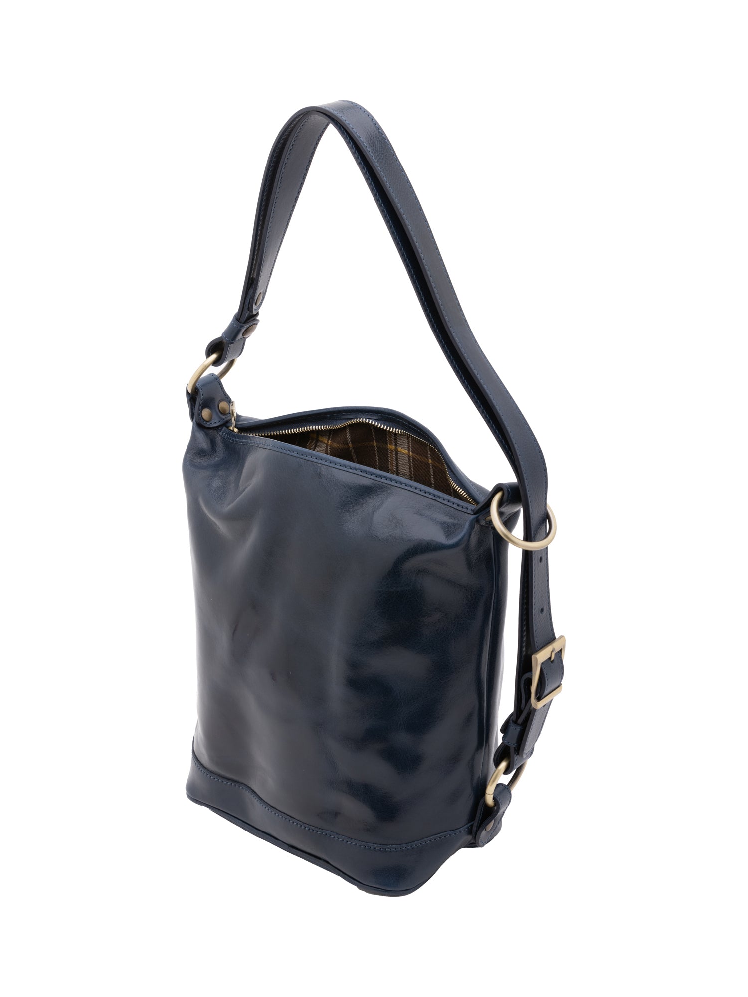 Sac seau pour femme. La fermeture est à zip. Les poches intérieures sont une avec zip. Il n'y a pas de poches extérieures. La bandoulière est réglable en cuir. La poignée est manquante. Il y a un compartiment interne. Le matériau extérieur est en cuir de vachette véritable. L'intérieur est doublé en coton. Dimensions : 34x33x15 cm. Fabriqué en Italie