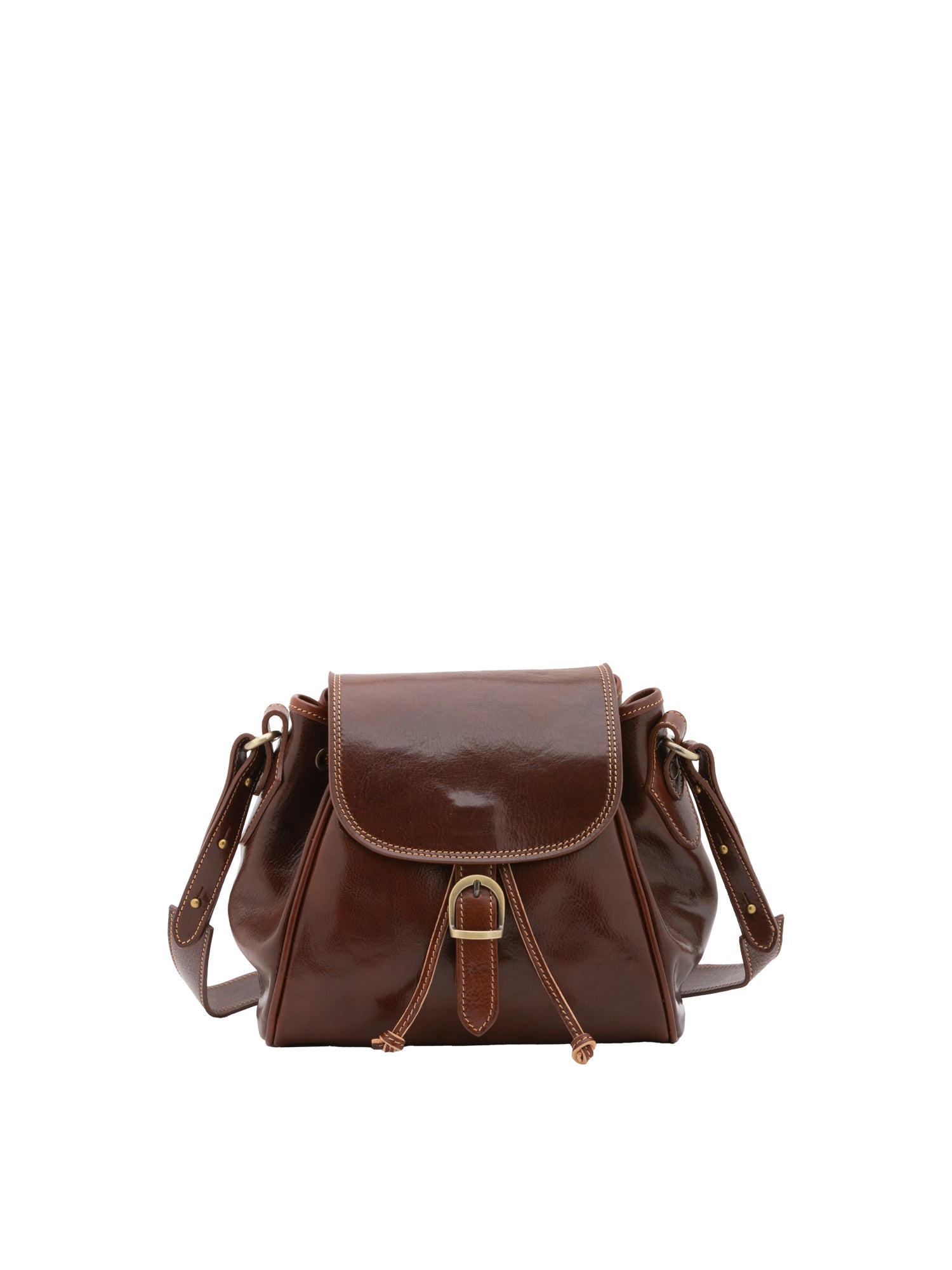 Sac seau pour femme. La fermeture est avec un cordon de serrage en cuir. Les poches intérieures sont une avec un zip. Les poches extérieures sont une à l'arrière avec zip. La bandoulière est manquante. La poignée est en cuir. Il y a un compartiment interne. Le matériau extérieur est en cuir de vachette véritable. L'intérieur est doublé en coton. Dimensions : 24x24x14 cm. Fabriqué en Italie