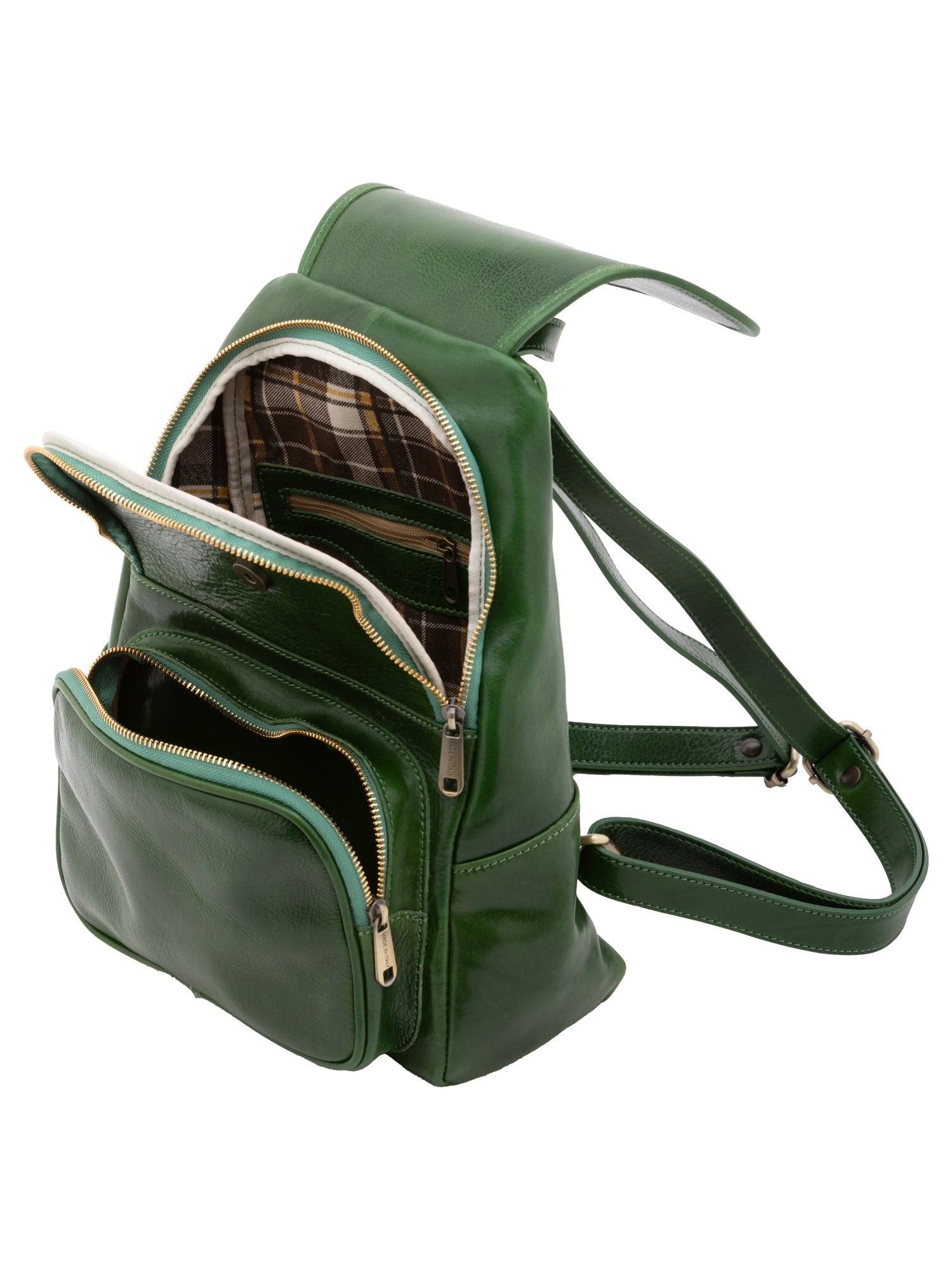 Sac bandoulière pour femme. La fermeture est à zip. Les poches intérieures sont une avec un zip. Les poches extérieures sont une poche avant avec fermeture éclair et deux poches latérales ouvertes. La bandoulière est réglable en cuir. La poignée est en cuir. Il y a un compartiment interne. Le matériau extérieur est en cuir de vachette véritable. L'intérieur est doublé en coton. Dimensions : 34x26x16 cm. Fabriqué en Italie