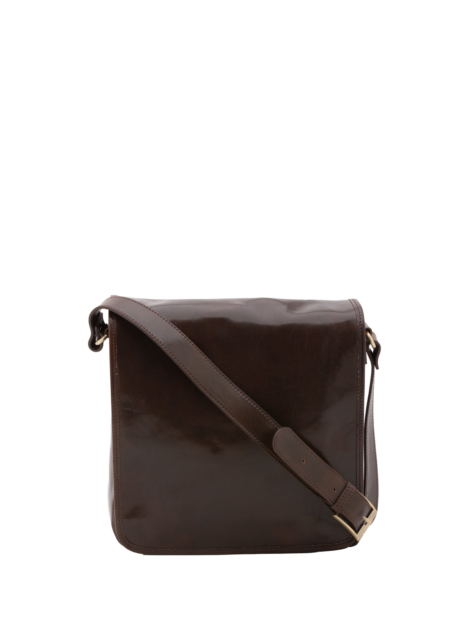 Sac bandoulière pour homme. La fermeture est avec un aimant. Les poches intérieures sont une avec un zip. Les poches extérieures sont une à l'avant avec poche ouverte et une à l'arrière avec fermeture éclair. La bandoulière est réglable en cuir. La poignée est manquante. Il y a un compartiment interne. Le matériau extérieur est en cuir de vachette véritable. L'intérieur est doublé en coton. Dimensions : 29x28x9 cm. Fabriqué en Italie