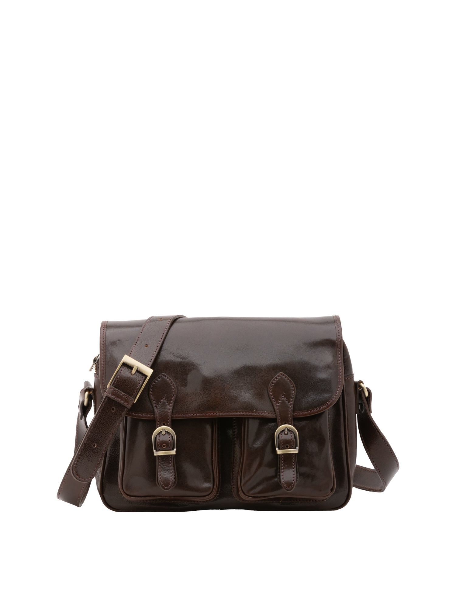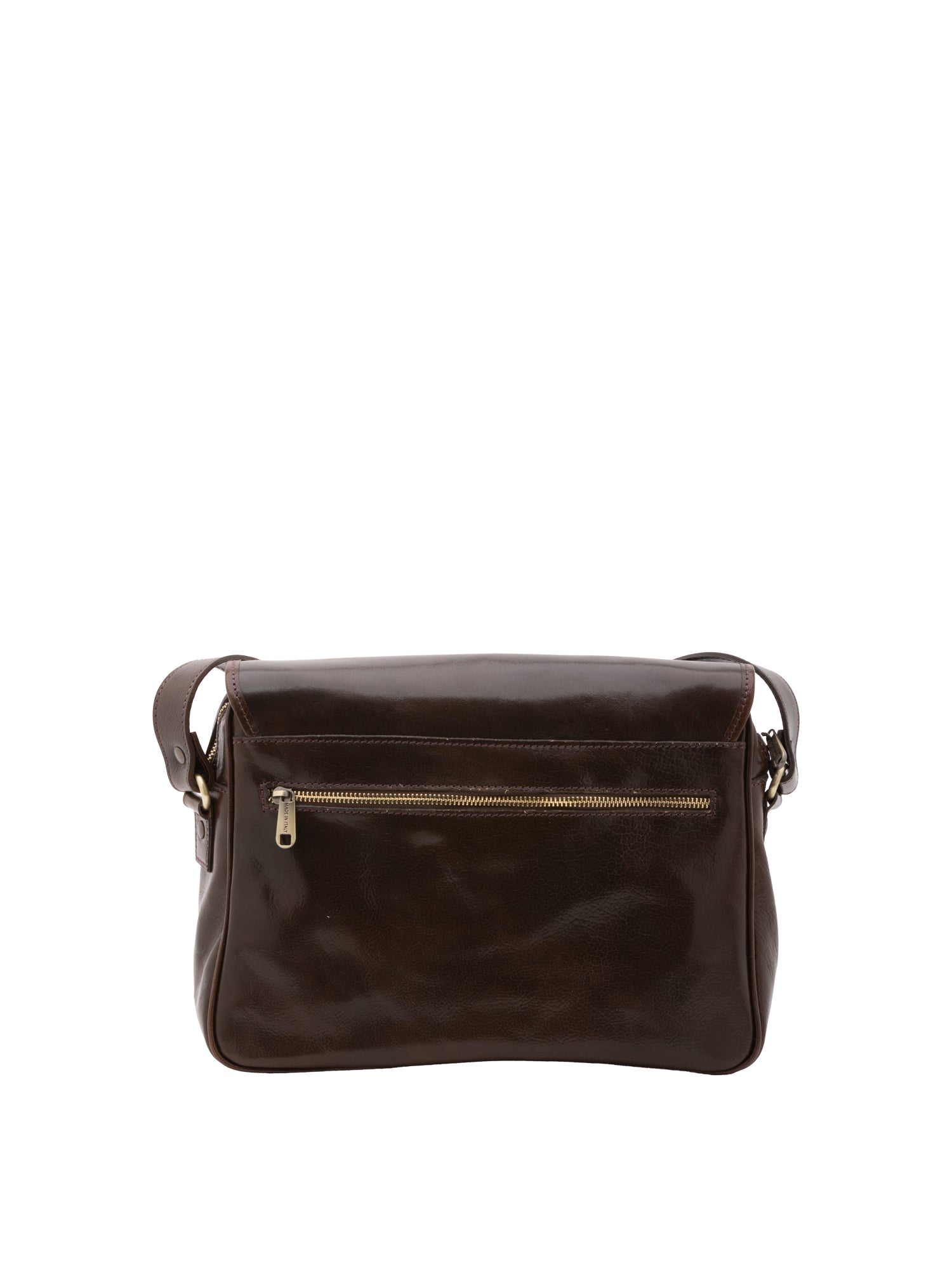 Sac bandoulière pour femme. La fermeture est avec un aimant. Les poches intérieures sont une avec fermeture éclair et deux ouvertes. Les poches extérieures sont une à l'avant avec poche ouverte et une à l'arrière avec fermeture éclair. La bandoulière est réglable en cuir. La poignée est manquante. Il y a un compartiment interne. Le matériau extérieur est en cuir de vachette véritable. L'intérieur est doublé en coton. Dimensions : 32x23x15 cm. Fabriqué en Italie