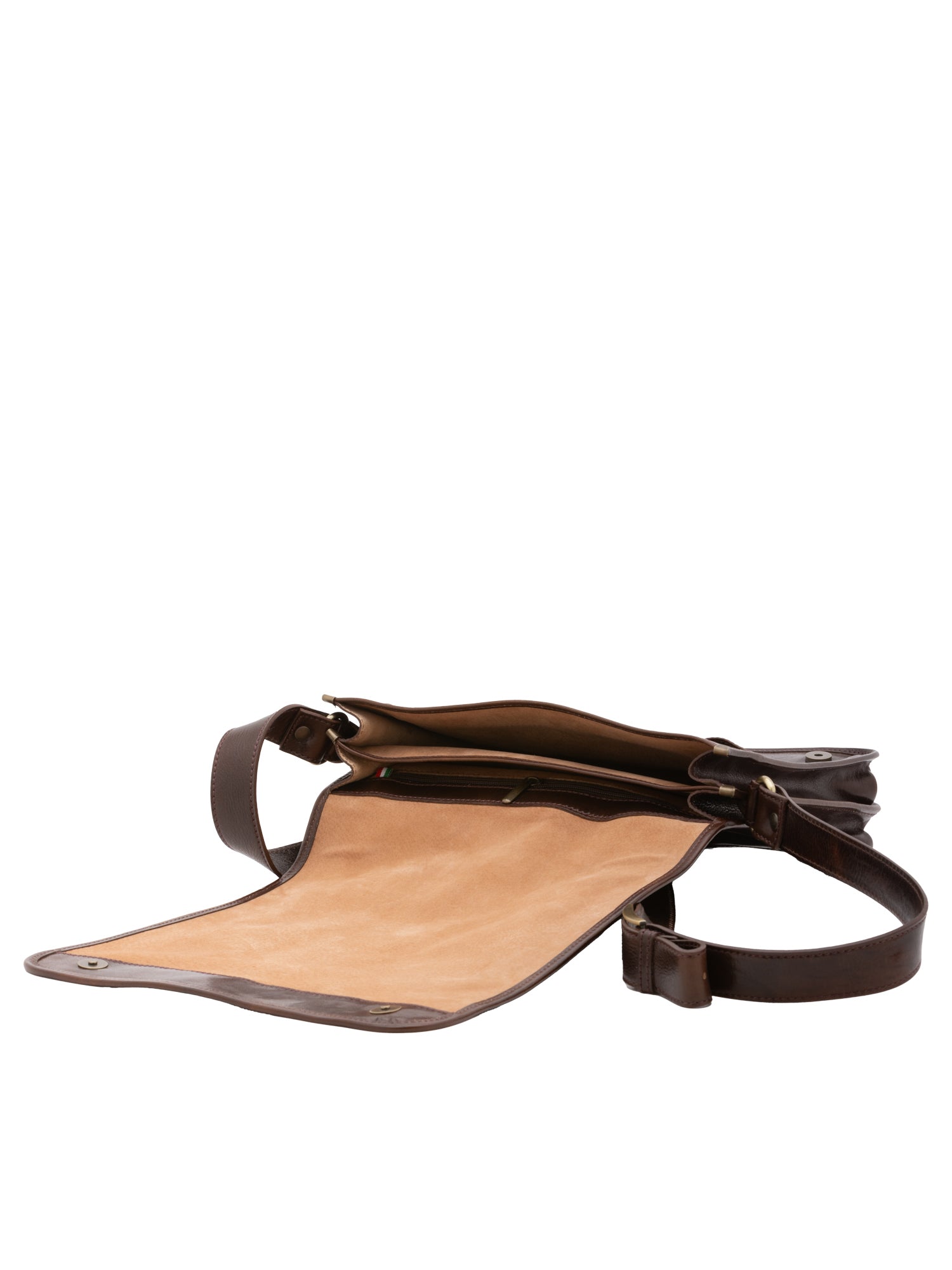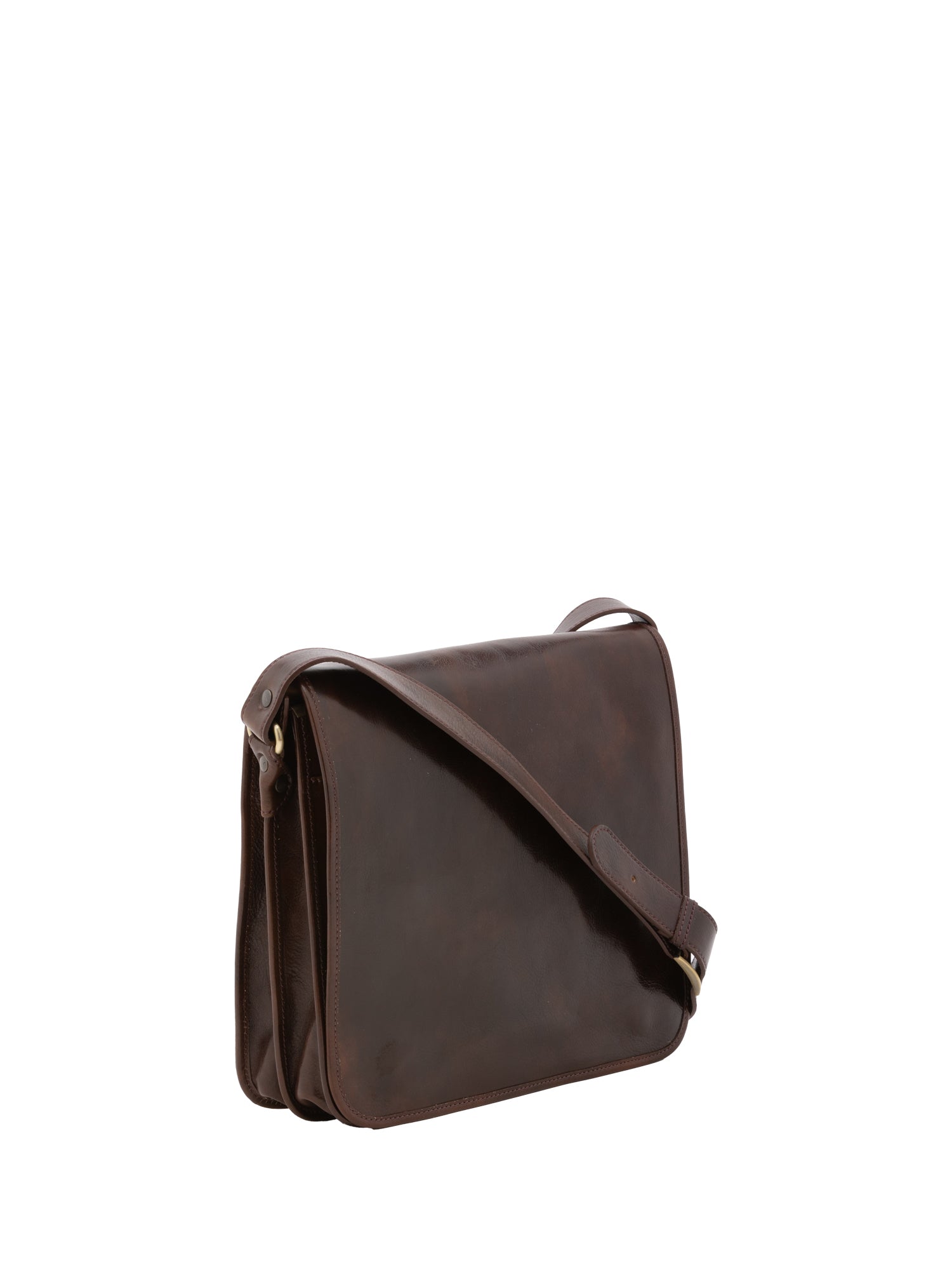 Sac bandoulière pour homme. La fermeture est avec un aimant. Les poches intérieures sont une avec un zip. Les poches extérieures sont une à l'arrière avec zip. La bandoulière est réglable en cuir. La poignée est manquante. Il y a deux compartiments internes. Le matériau extérieur est en cuir de vachette véritable. L'intérieur est doublé en coton. Dimensions : 28x30x12 cm. Fabriqué en Italie