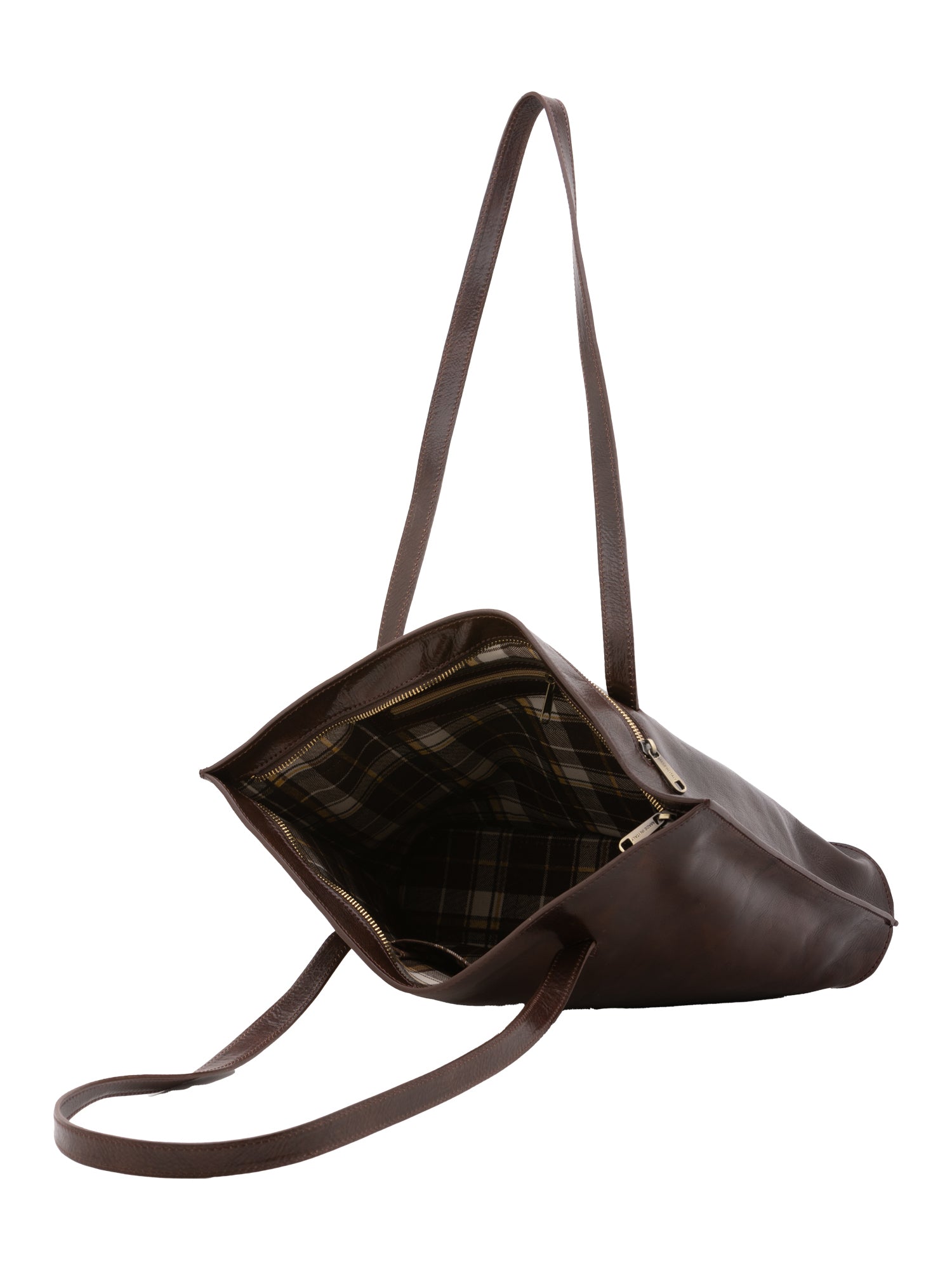 Sac bandoulière pour femme. La fermeture est à zip. Les poches intérieures sont deux avec fermetures éclair et deux ouvertes. Les poches extérieures sont une à l'arrière avec zip. La bandoulière est manquante. La poignée est en cuir. Il y a un compartiment interne. Le matériau extérieur est en cuir de vachette véritable. L'intérieur est doublé en coton. Dimensions : 31x43x10 cm. Fabriqué en Italie