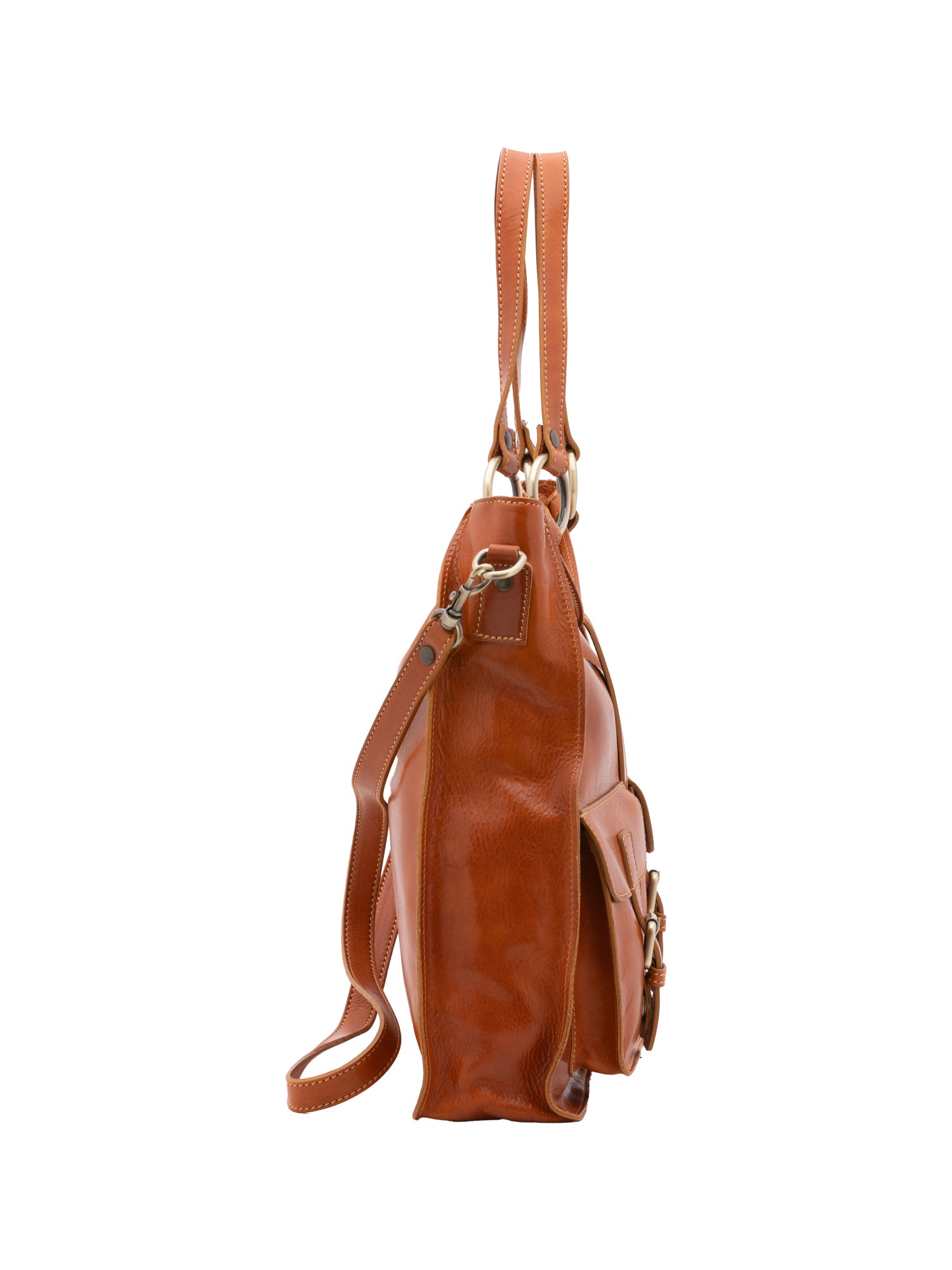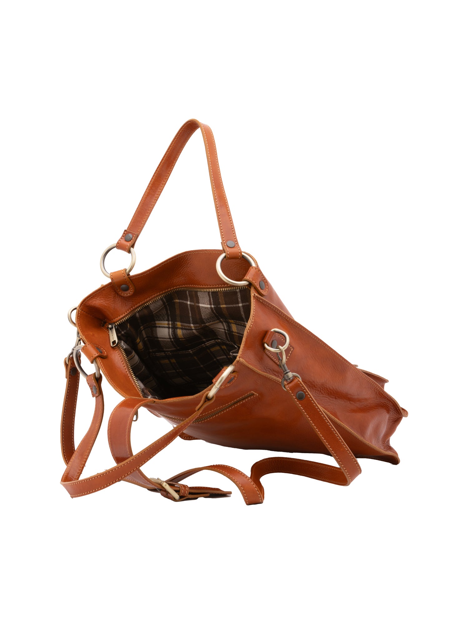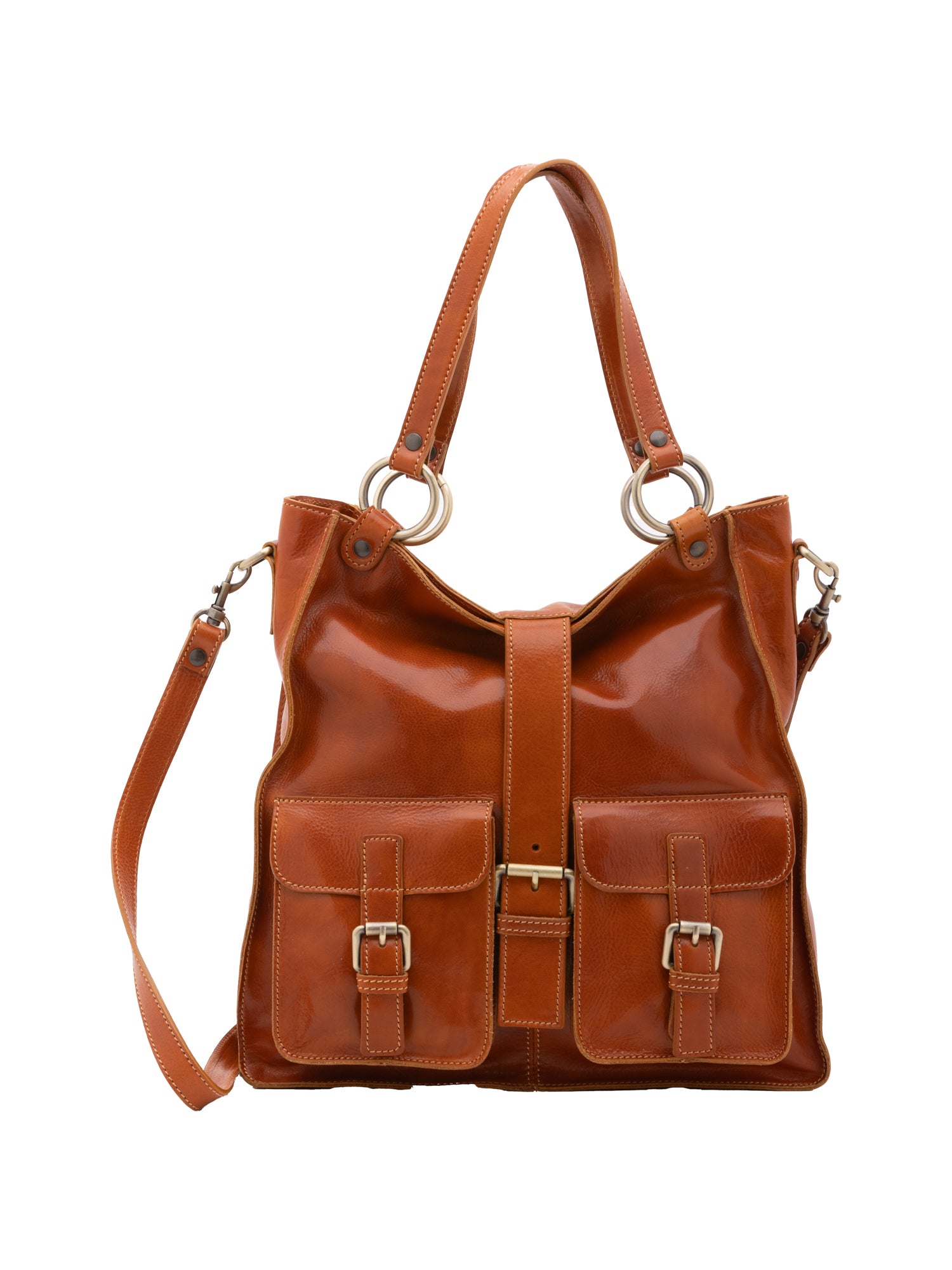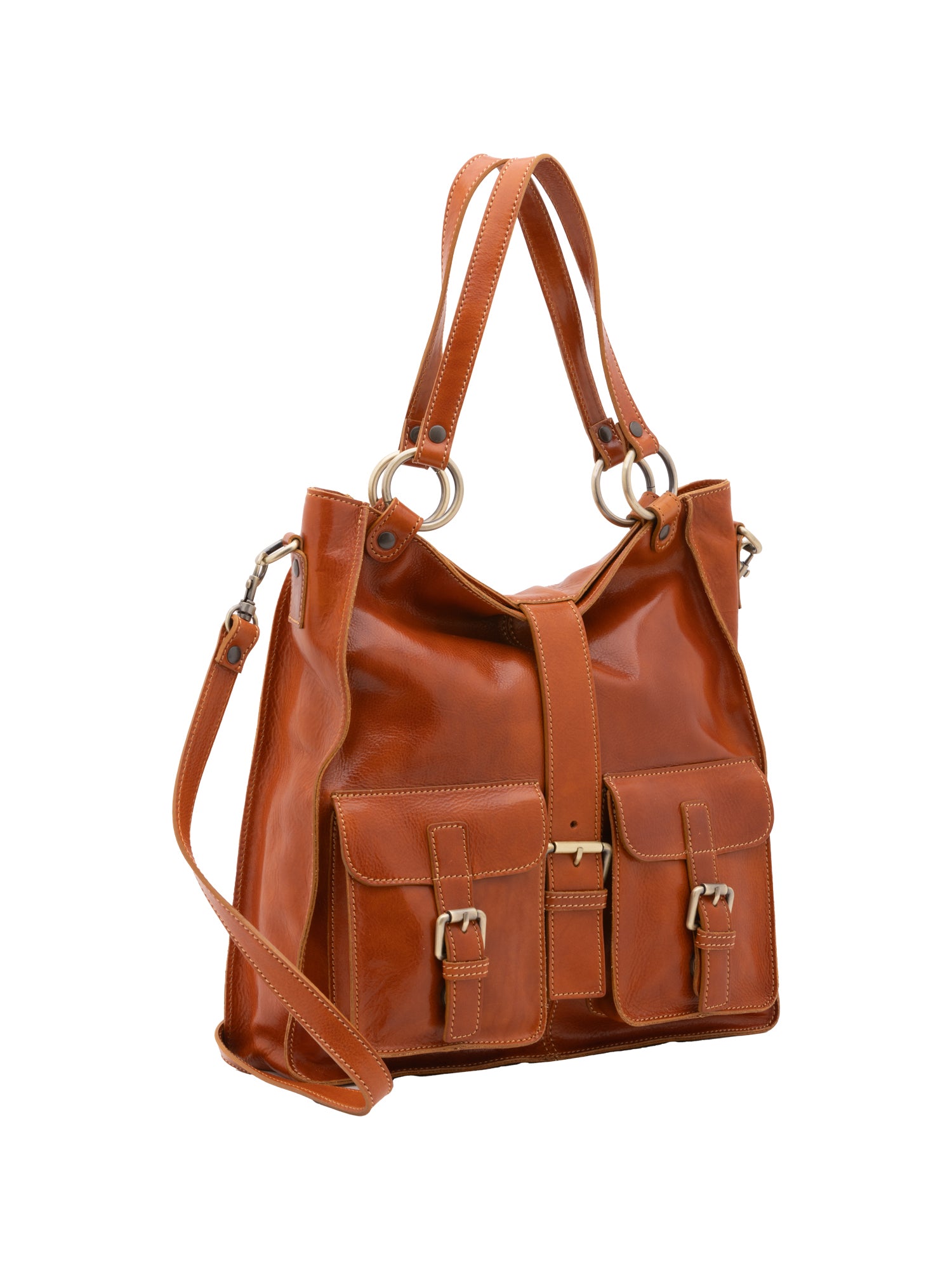 Sac bandoulière pour femme. La fermeture est à zip. Les poches intérieures sont deux avec fermetures éclair et deux ouvertes. Les poches extérieures sont une à l'arrière avec zip. La bandoulière est amovible et en cuir. La poignée est en cuir. Il y a un compartiment interne. Le matériau extérieur est en cuir de vachette véritable. L'intérieur est doublé en coton. Dimensions : 38x37x10 cm. Fabriqué en Italie