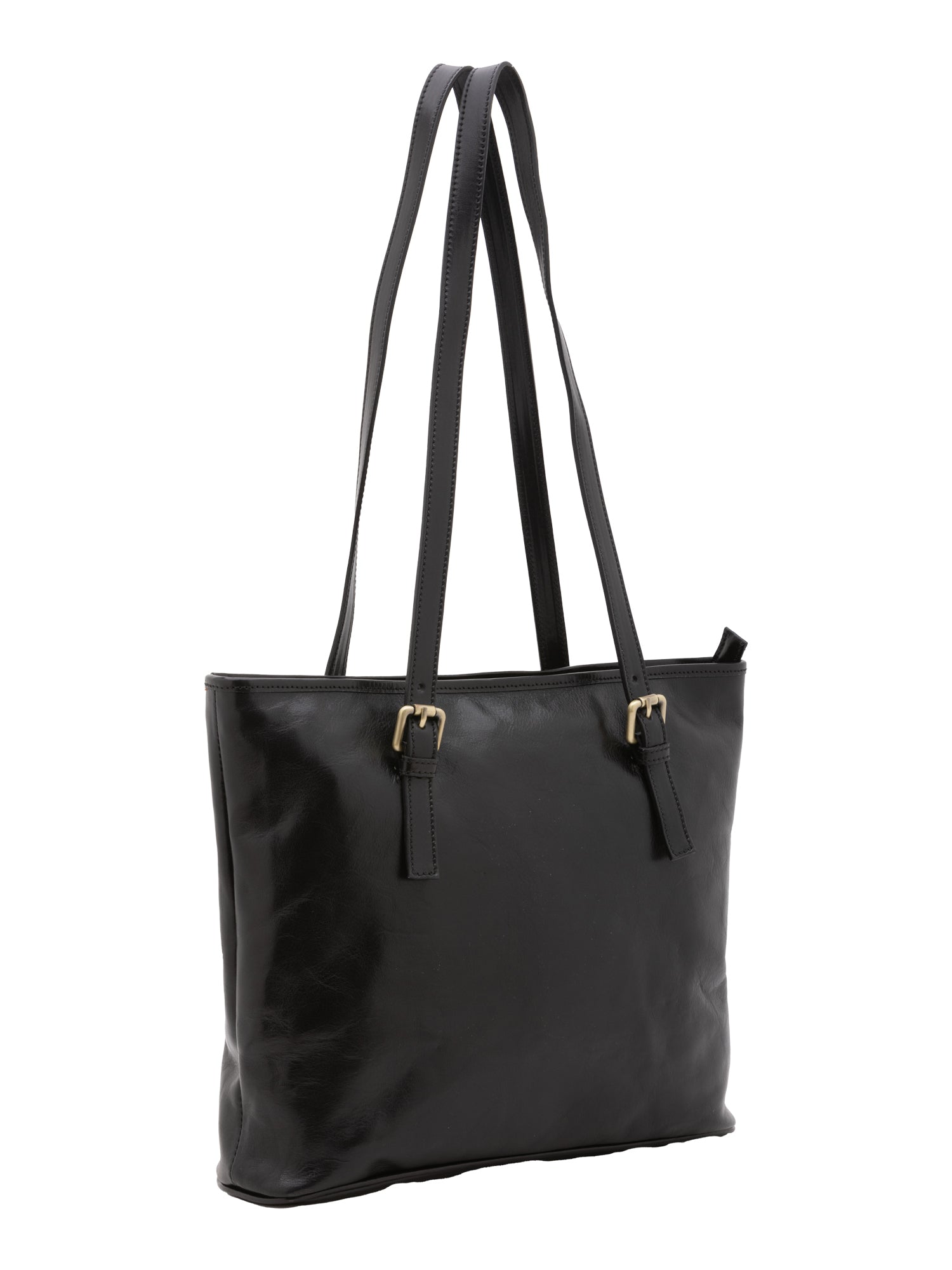 Sac bandoulière pour femme. La fermeture est à zip. Les poches intérieures sont deux avec fermetures éclair et deux ouvertes. Les poches extérieures sont une à l'arrière avec zip. La bandoulière est manquante. La poignée est en cuir. Il y a deux compartiments internes. Le matériau extérieur est en cuir de vachette véritable. L'intérieur est doublé en coton. Dimensions : 31x41x10 cm. Fabriqué en Italie