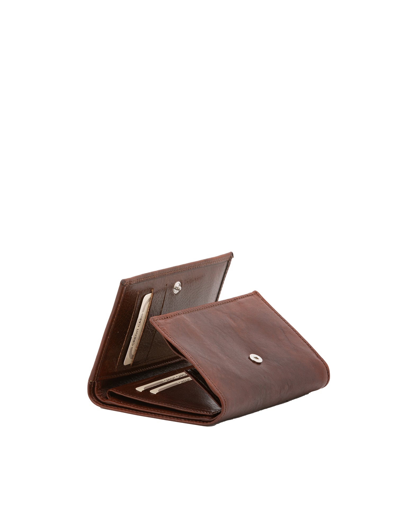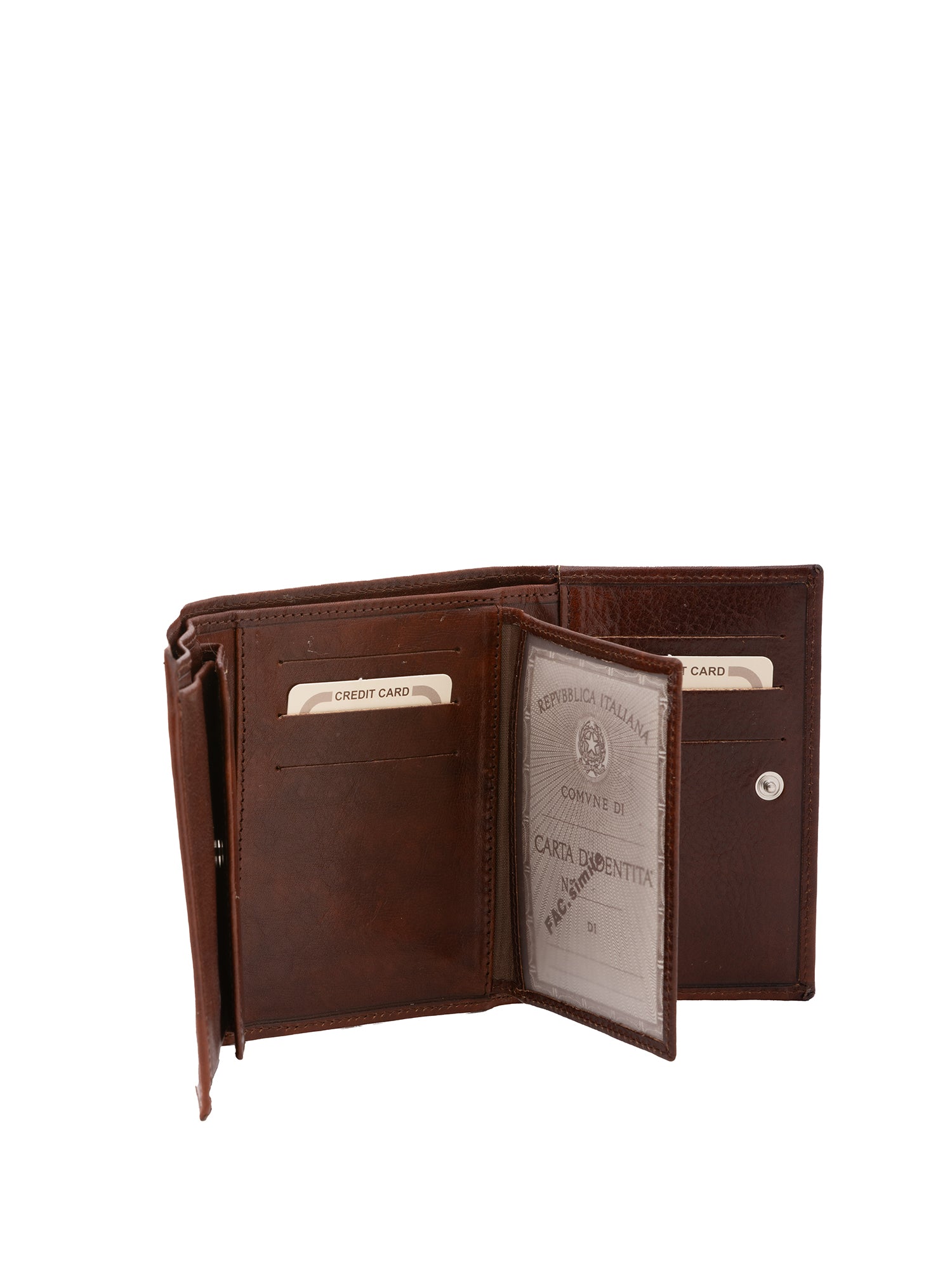 Portefeuille pour femme. La fermeture est un bouton. Les poches intérieures sont des porte-cartes. Il n'y a pas de poches extérieures. La bandoulière est manquante. La poignée est manquante. Il y a un compartiment interne. Le matériau extérieur est en cuir de vachette véritable. Il n'est pas doublé à l'intérieur. Dimensions : 13x9, 5x3 cm. Fabriqué en Italie