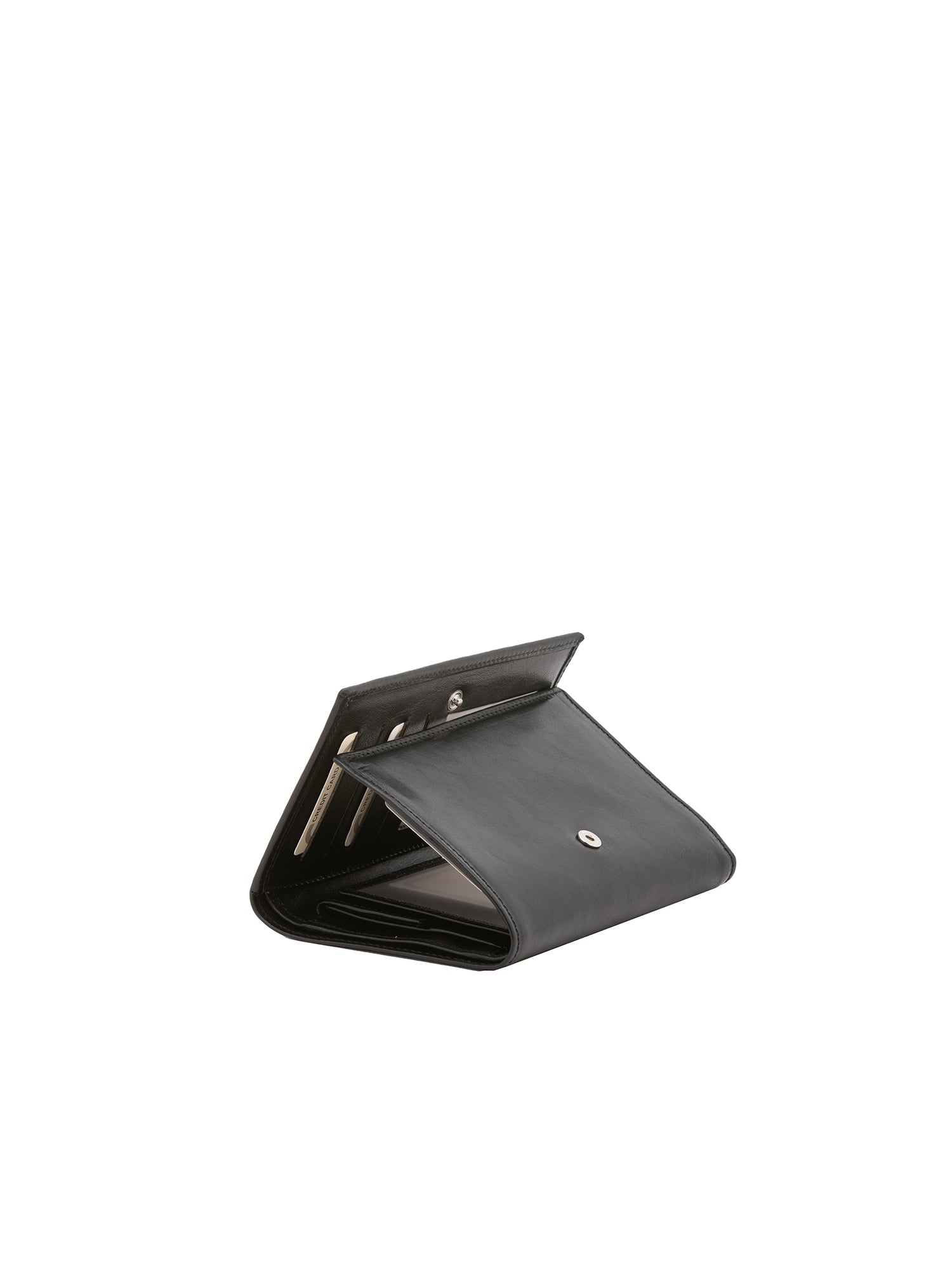 Portefeuille pour femme. La fermeture est un bouton. Les poches intérieures sont des porte-cartes. Il n'y a pas de poches extérieures. La bandoulière est manquante. La poignée est manquante. Il y a un compartiment interne. Le matériau extérieur est en cuir de vachette véritable. Il n'est pas doublé à l'intérieur. Dimensions : 15x10x3 cm. Fabriqué en Italie