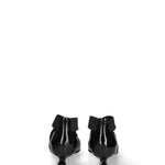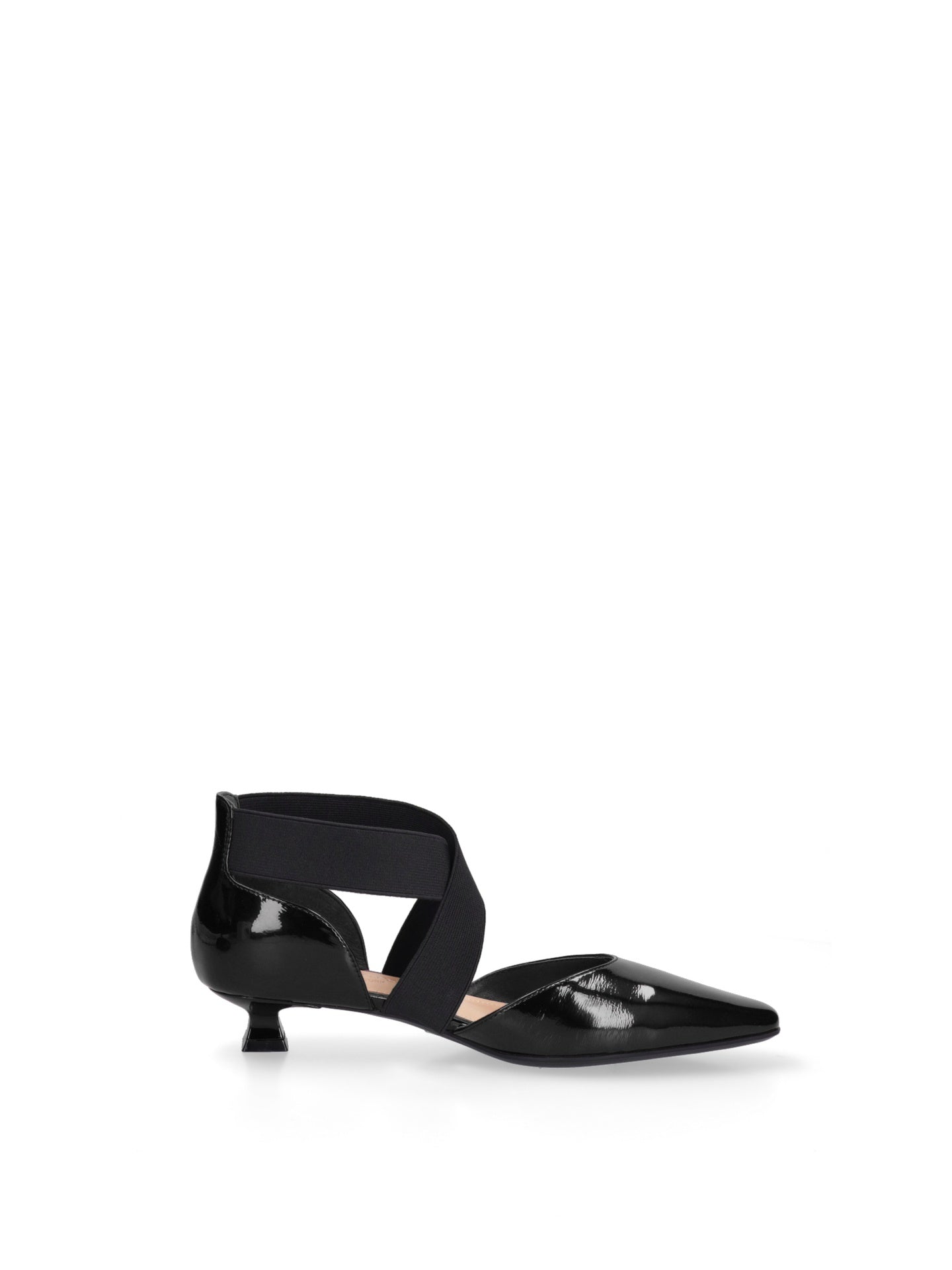 Il design minimalista e contemporaneo è esaltato dalla forma affusolata e dal tacco sottile, che slancia la figura con grazia e femminilità. L’assenza di chiusura, unita alla fascia elastica che avvolge il collo del piede, garantisce una calzata confortevole e sicura, adattandosi perfettamente alla forma del piede.
