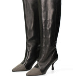 Eleva il tuo stile con questi stivali alti, un'espressione di eleganza senza tempo e artigianalità impeccabile. Realizzati in pregiata vera pelle, questi stivali avvolgono il piede in un comfort lussuoso e offrono una vestibilità impeccabile.
