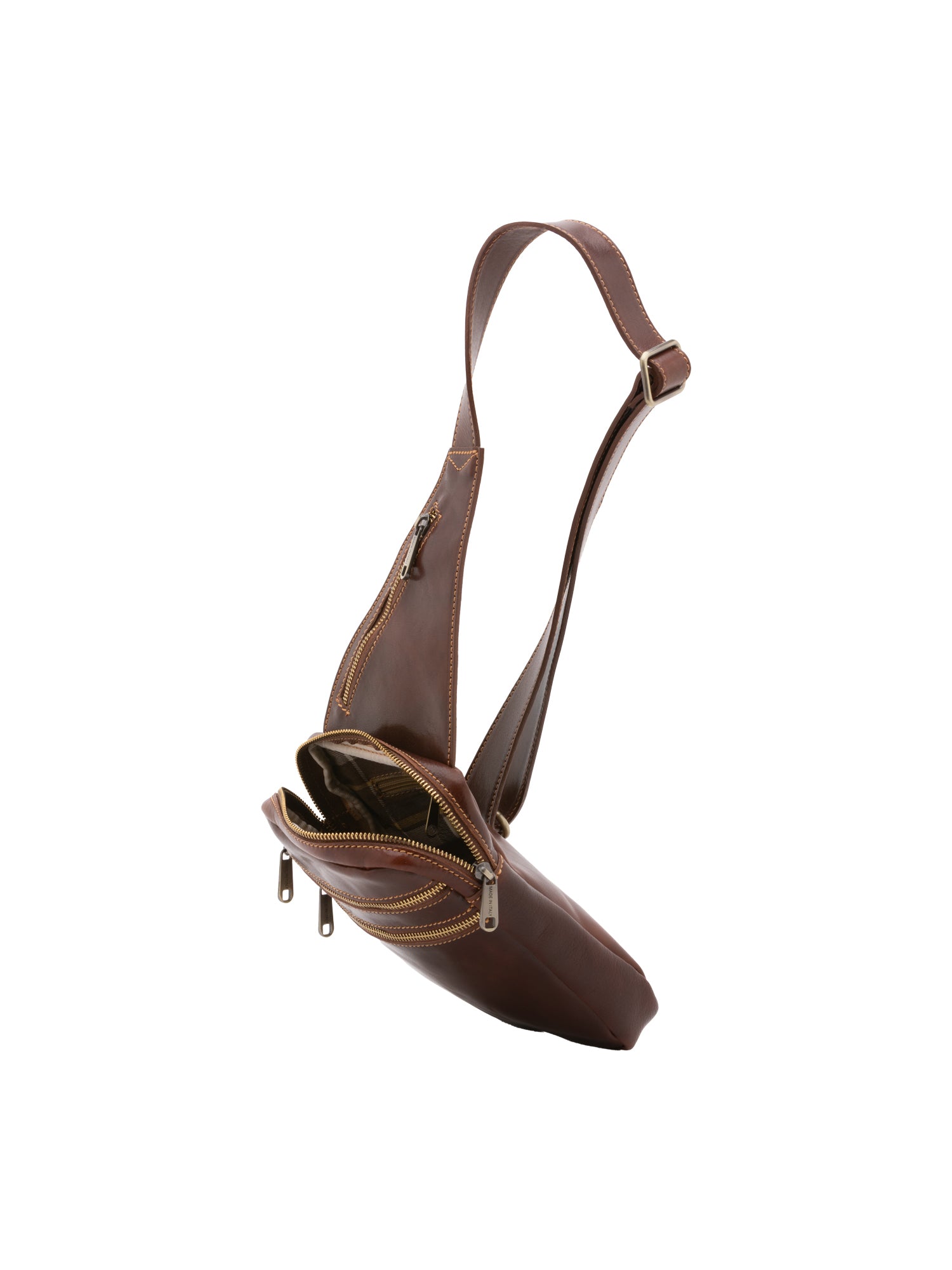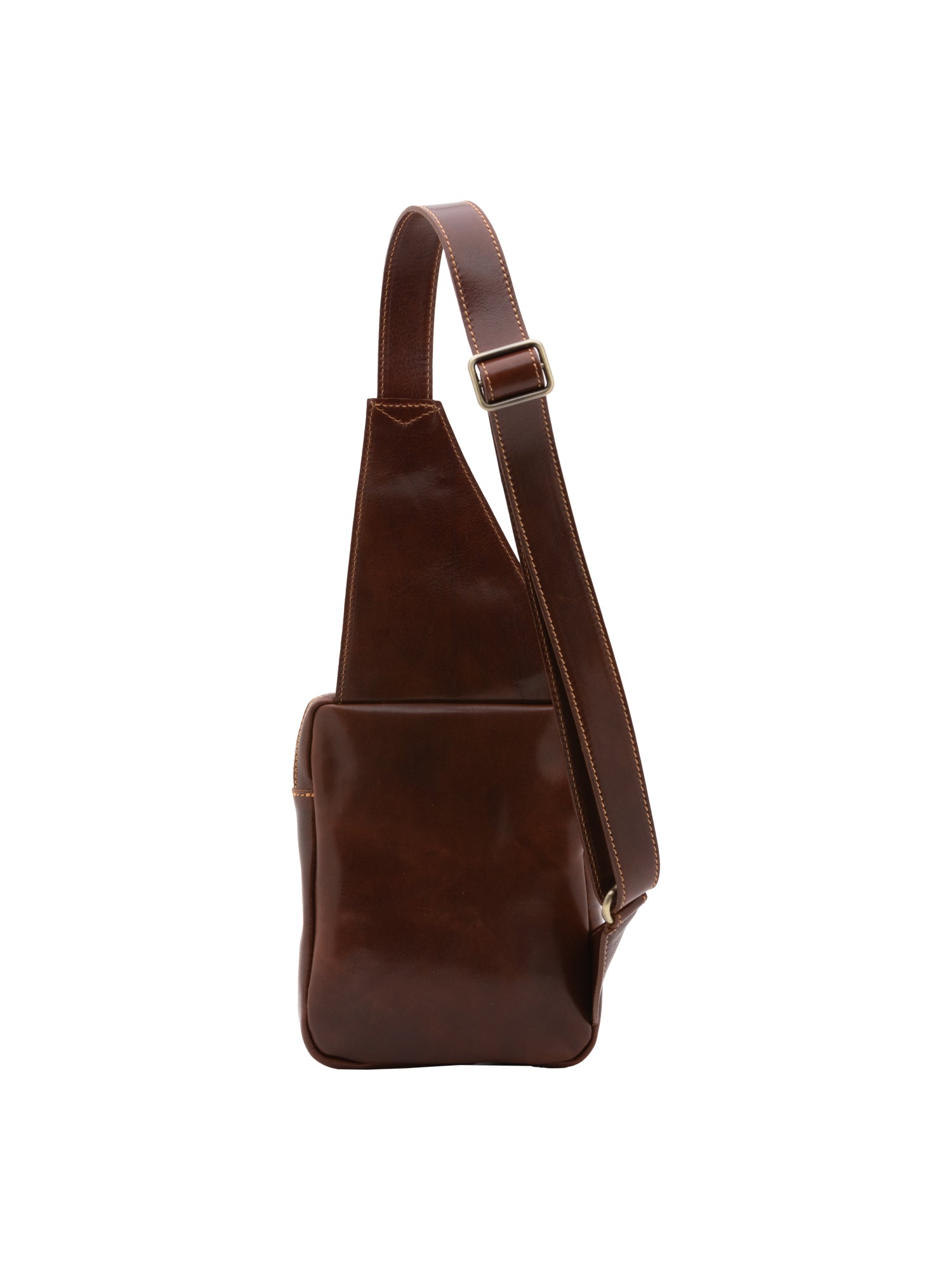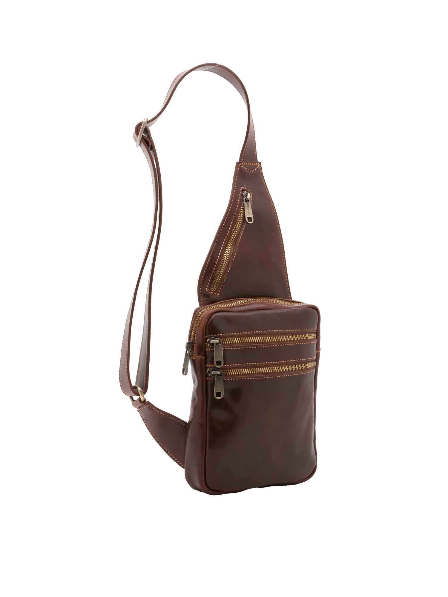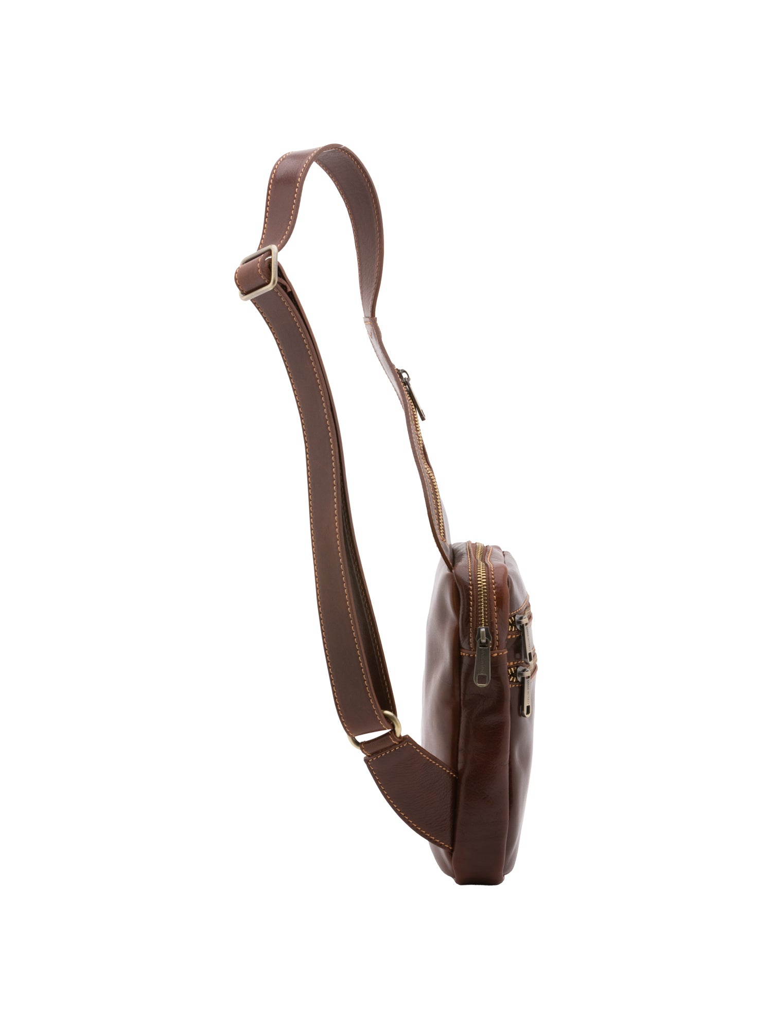 Sac bandoulière pour homme. La fermeture est à zip. Les poches intérieures sont une avec un zip. Il y a deux poches extérieures avec fermetures éclair. La bandoulière est réglable en cuir. La poignée est manquante. Il y a un compartiment interne. Le matériau extérieur est en cuir de vachette véritable. L'intérieur est doublé en coton. Dimensions : 17x23x4 cm. Fabriqué en Italie