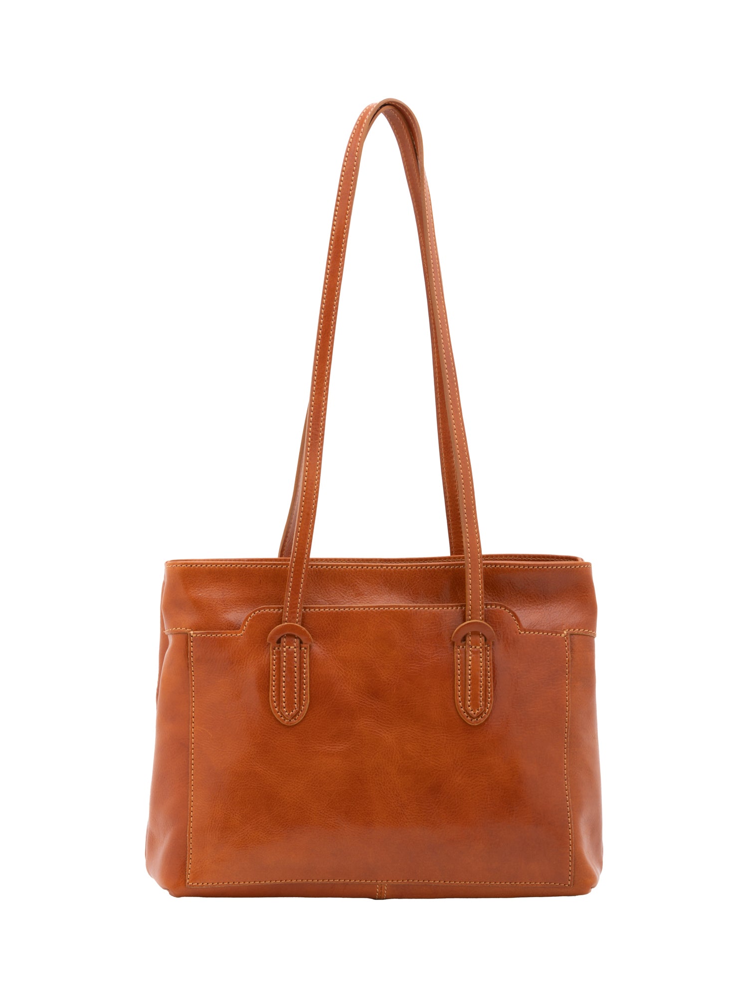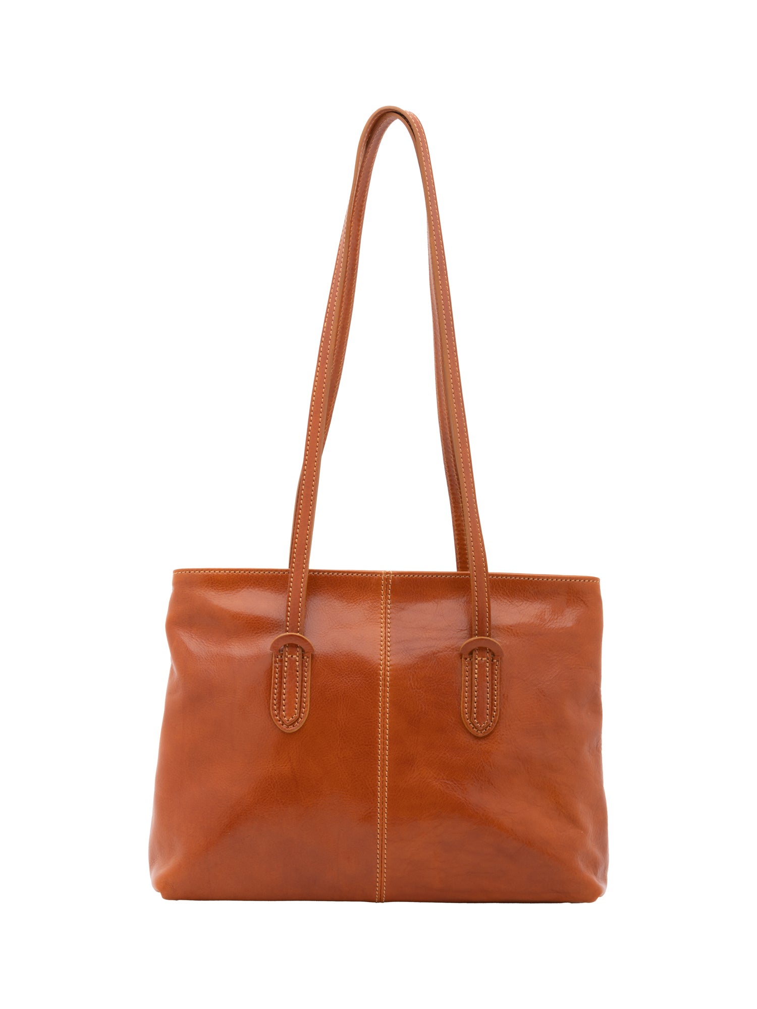 Sac bandoulière pour femme. La fermeture est à zip. Les poches intérieures sont une avec un zip. Les poches extérieures sont ouvertes sur le devant. La bandoulière est manquante. La poignée est en cuir. Il y a deux compartiments internes. Le matériau extérieur est en cuir de vachette véritable. L'intérieur est doublé en coton. Dimensions : 35x26x12 cm. Fabriqué en Italie