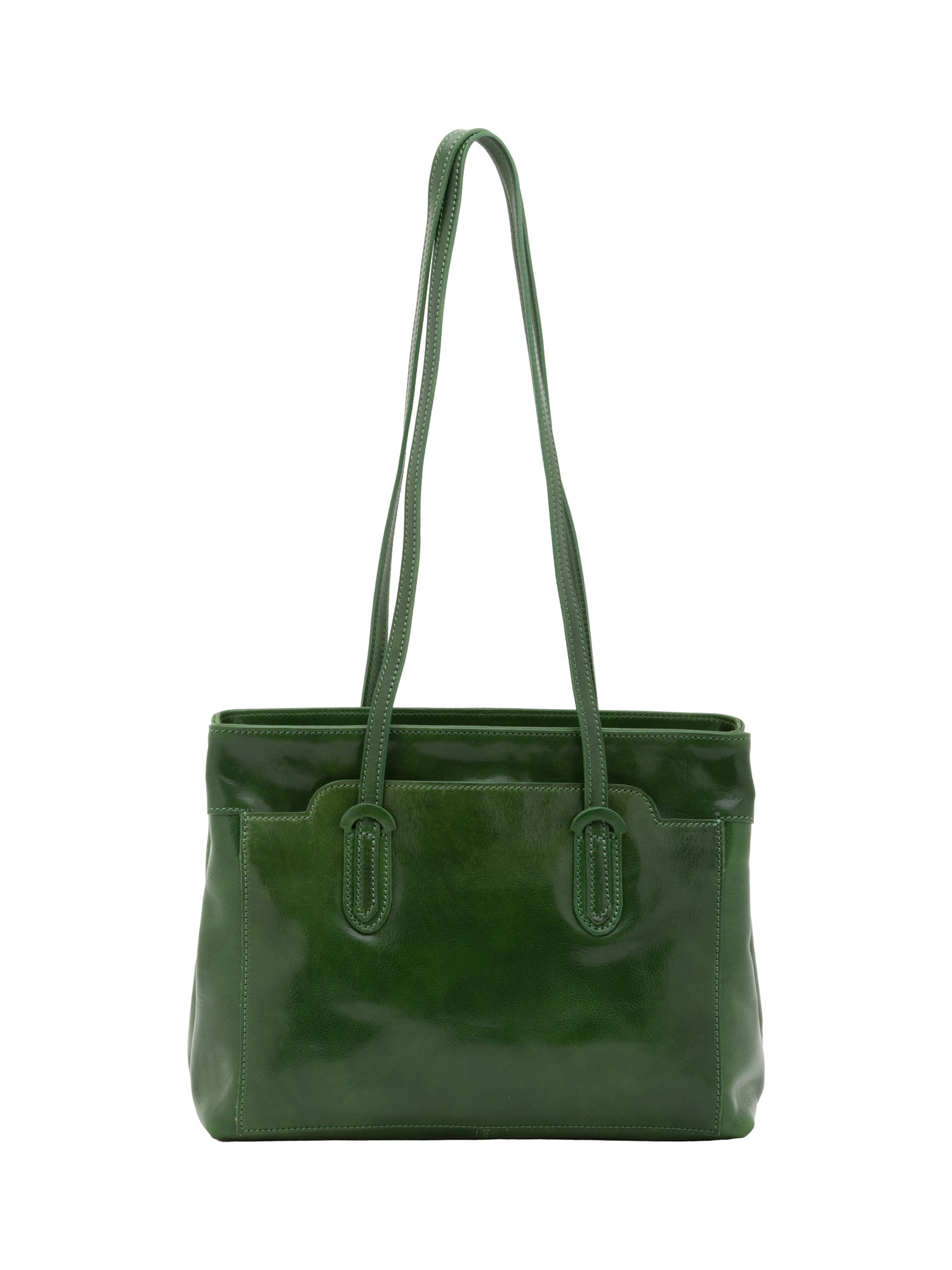 Sac bandoulière pour femme. La fermeture est à zip. Les poches intérieures sont une avec un zip. Les poches extérieures sont ouvertes sur le devant. La bandoulière est manquante. La poignée est en cuir. Il y a deux compartiments internes. Le matériau extérieur est en cuir de vachette véritable. L'intérieur est doublé en coton. Dimensions : 35x26x12 cm. Fabriqué en Italie
