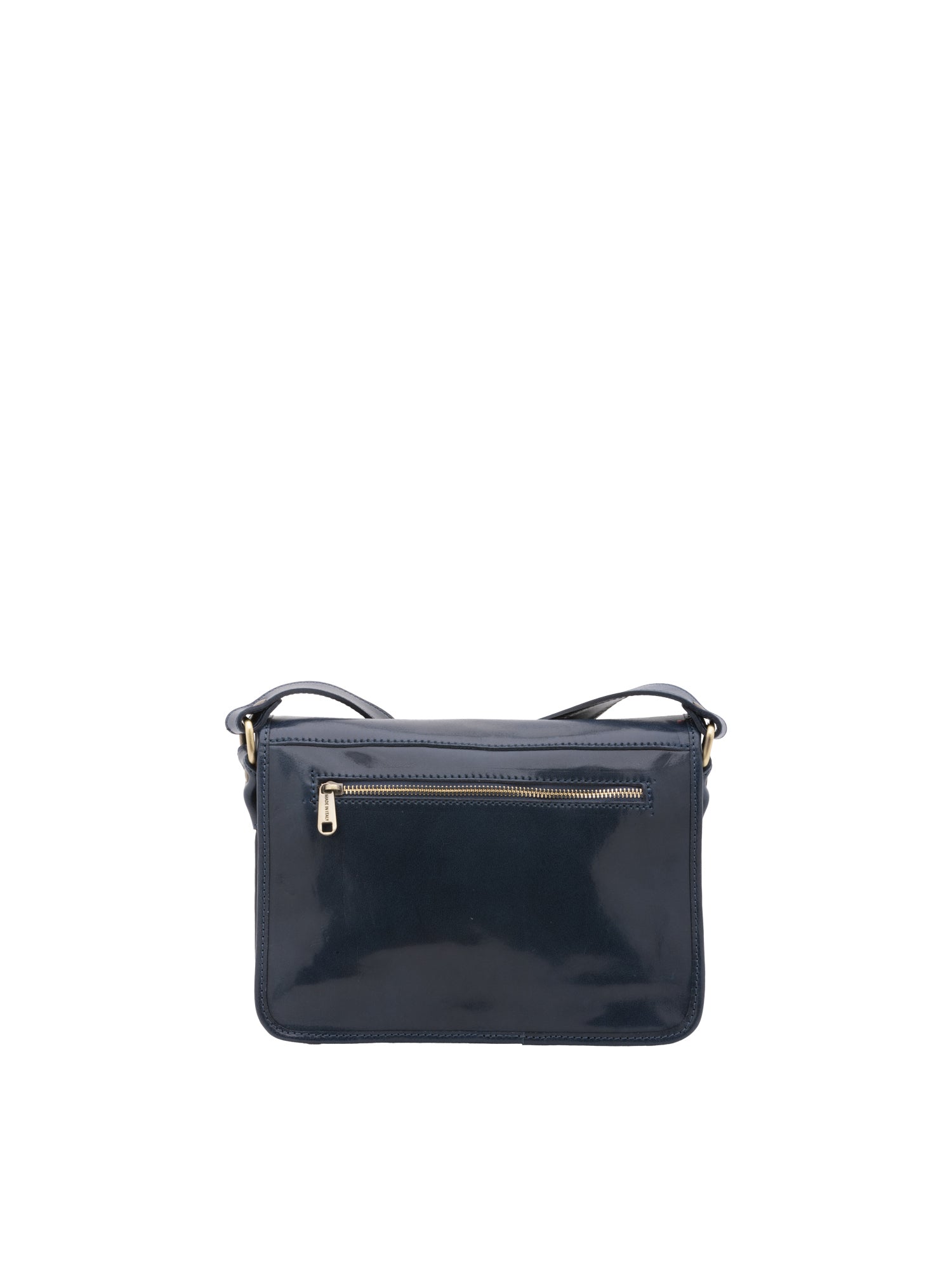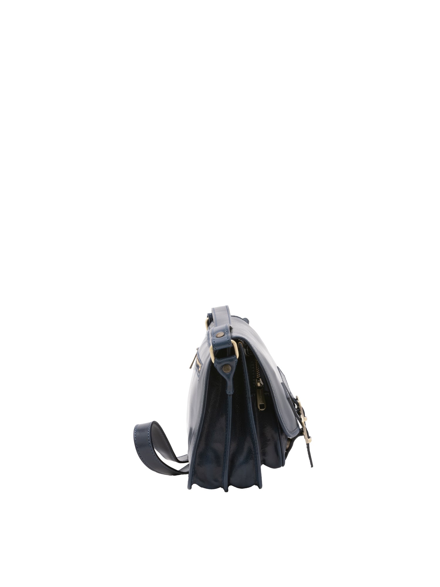 Sac bandoulière pour femme. La fermeture est avec un aimant. Les poches intérieures sont une avec fermeture éclair et une ouverte. Les poches extérieures sont une poche avant zippée et une poche arrière zippée. La bandoulière est réglable en cuir. La poignée est manquante. Il y a deux compartiments internes. Le matériau extérieur est en cuir de vachette véritable. L'intérieur est doublé en coton. Dimensions : 27, 5x22x12 cm. Fabriqué en Italie