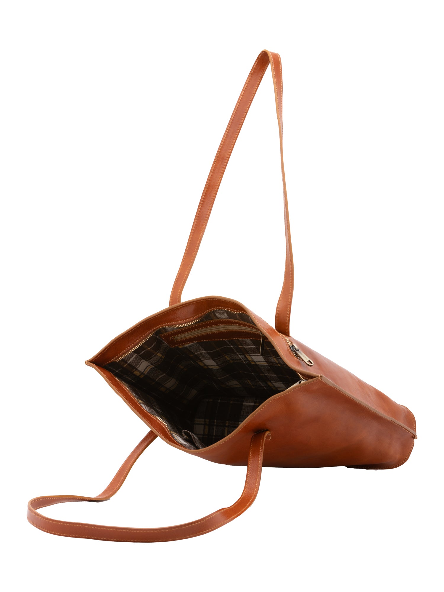 Sac bandoulière pour femme. La fermeture est à zip. Les poches intérieures sont deux avec fermetures éclair et deux ouvertes. Les poches extérieures sont une à l'arrière avec zip. La bandoulière est manquante. La poignée est en cuir. Il y a un compartiment interne. Le matériau extérieur est en cuir de vachette véritable. L'intérieur est doublé en coton. Dimensions : 31x43x10 cm. Fabriqué en Italie