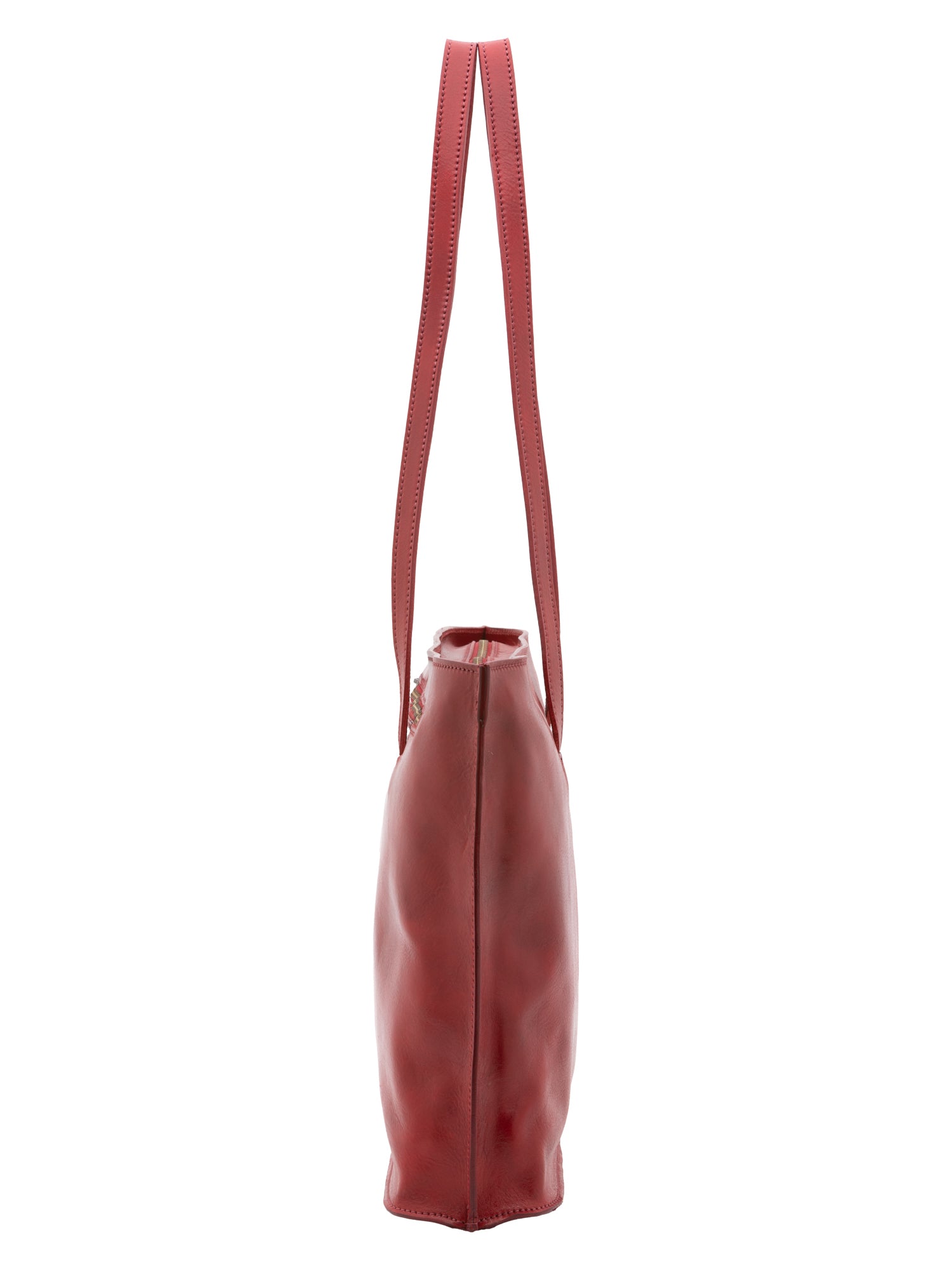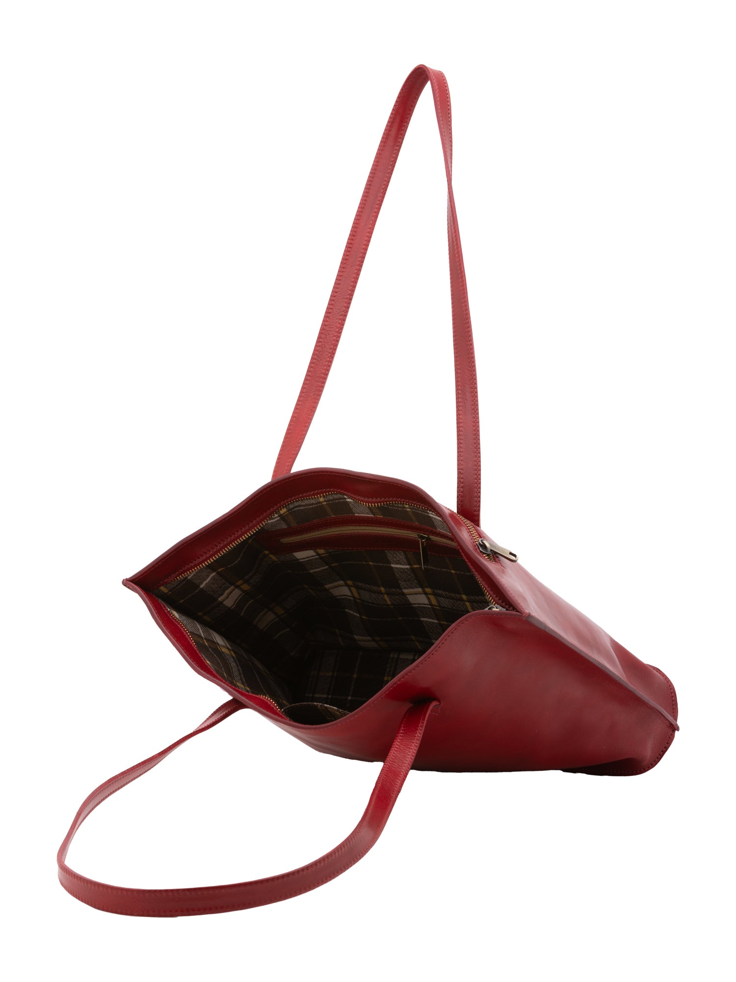 Sac bandoulière pour femme. La fermeture est à zip. Les poches intérieures sont deux avec fermetures éclair et deux ouvertes. Les poches extérieures sont une à l'arrière avec zip. La bandoulière est manquante. La poignée est en cuir. Il y a un compartiment interne. Le matériau extérieur est en cuir de vachette véritable. L'intérieur est doublé en coton. Dimensions : 31x43x10 cm. Fabriqué en Italie