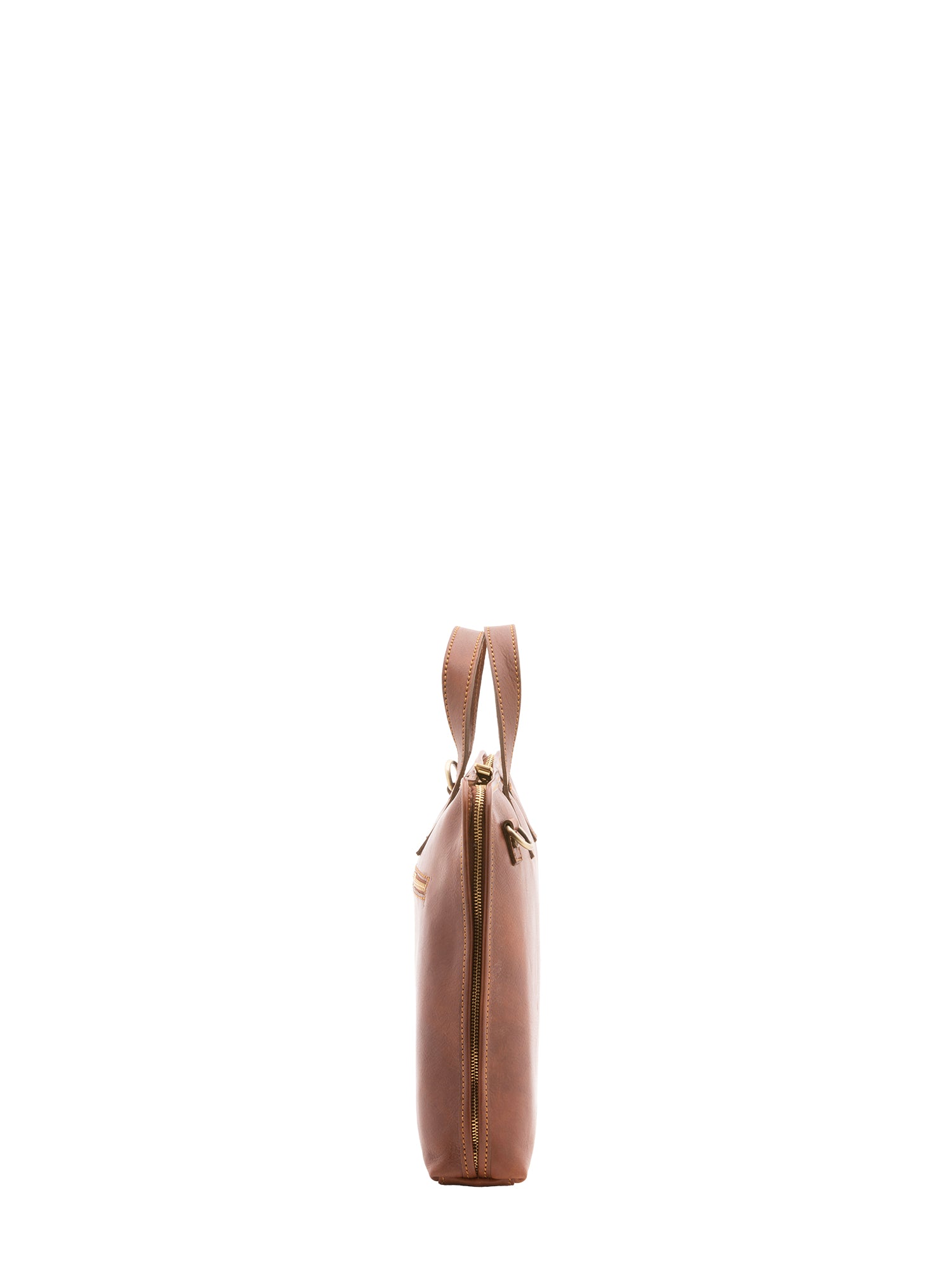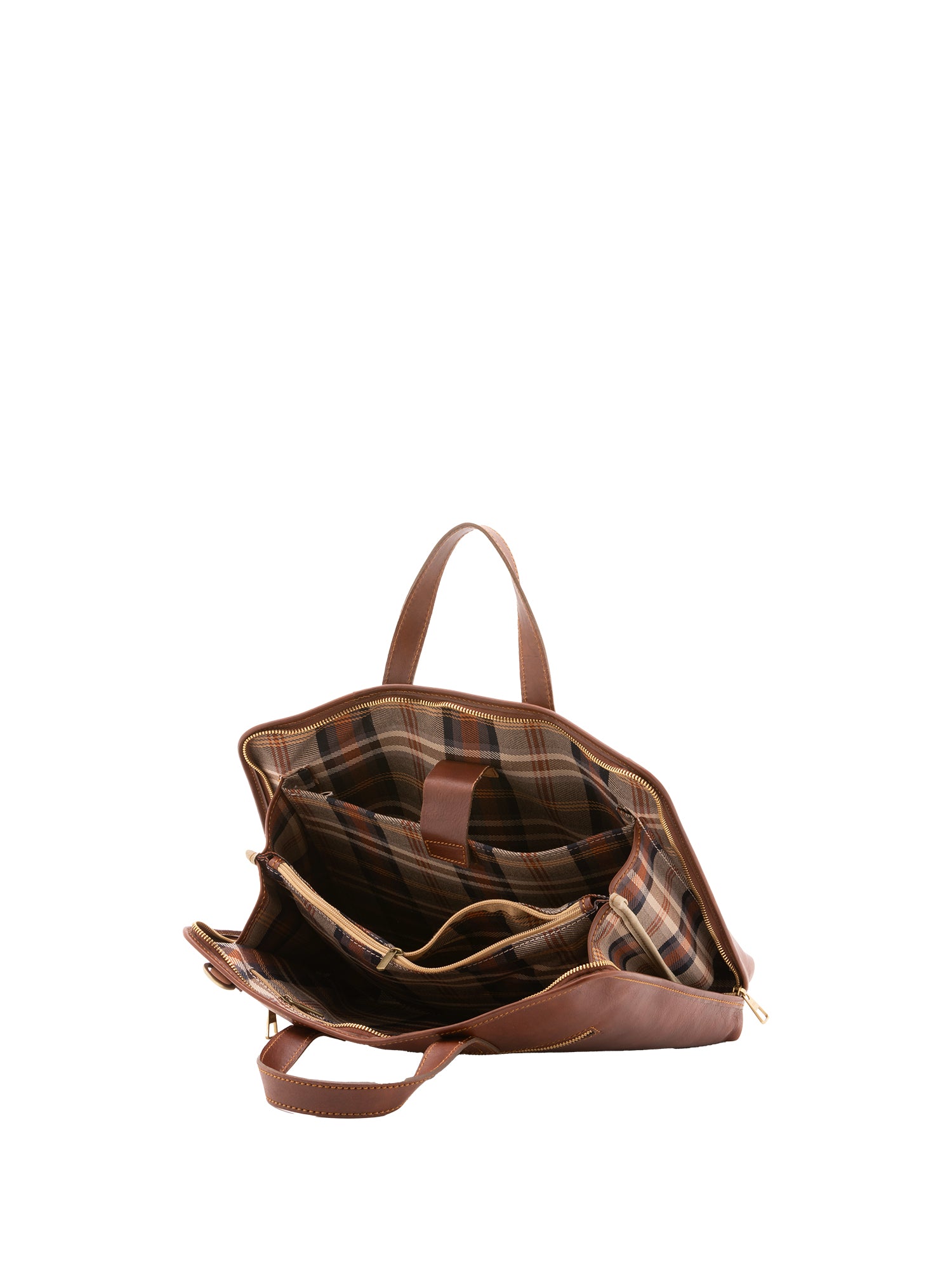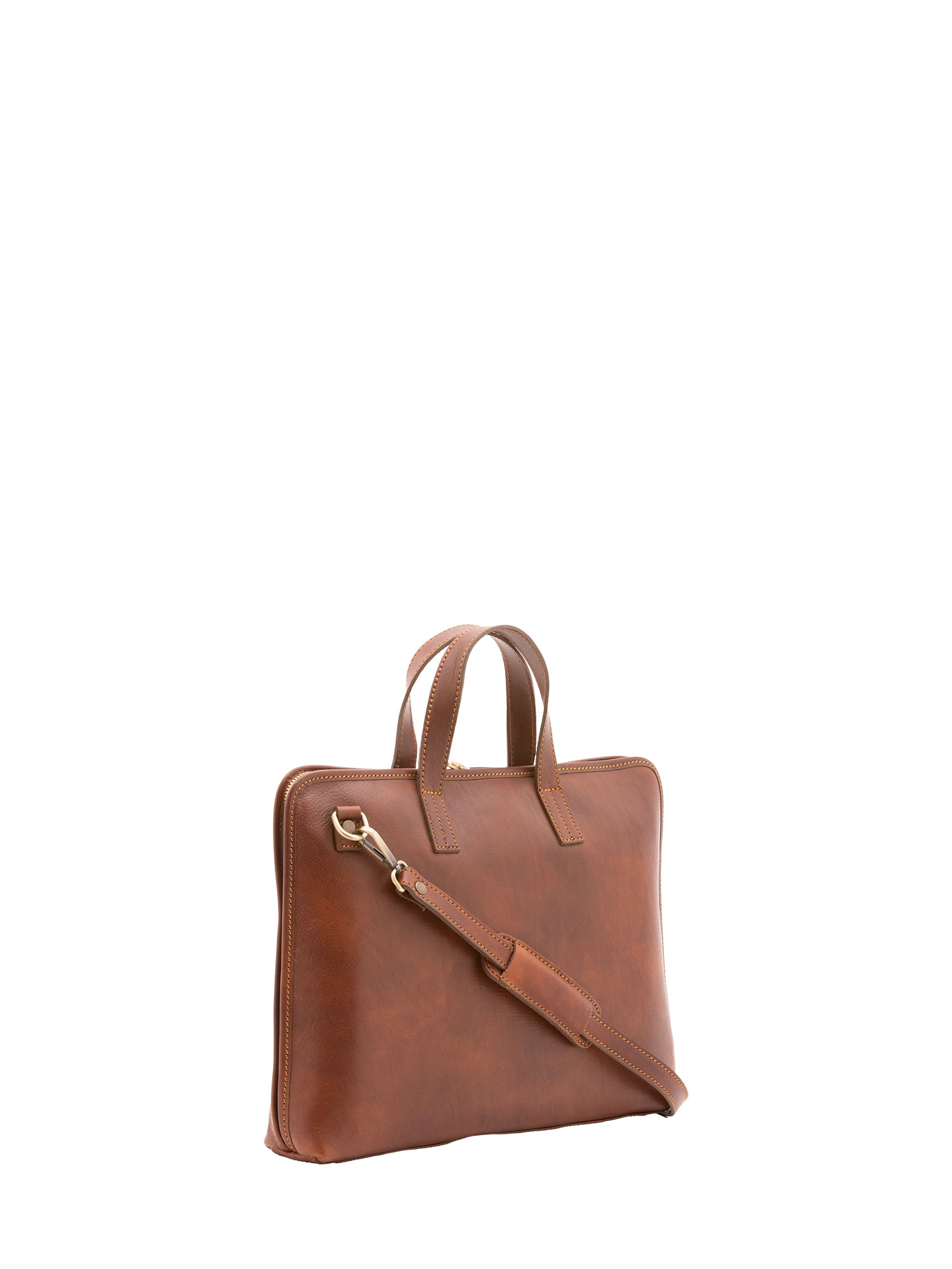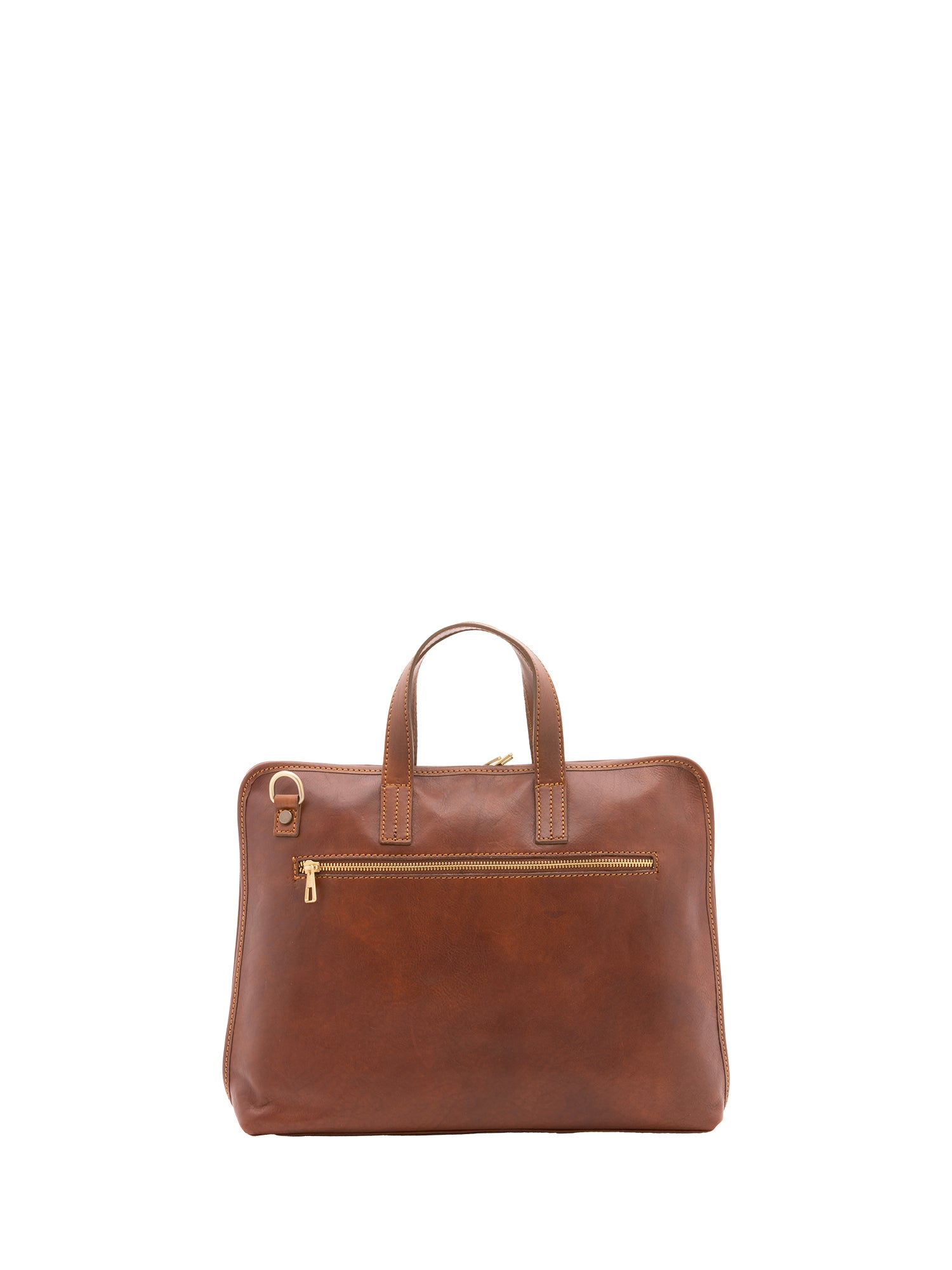 Sac à main unisexe. La fermeture est à zip. Les poches intérieures sont une avec fermeture éclair et une ouverte. Les poches extérieures sont une à l'arrière avec zip. La bandoulière est réglable en cuir. La poignée est en cuir. Il y a deux compartiments internes. Le matériau extérieur est 100 % cuir véritable. L'intérieur est doublé en coton. Dimensions : 40x30x5 cm. Fabriqué en Italie