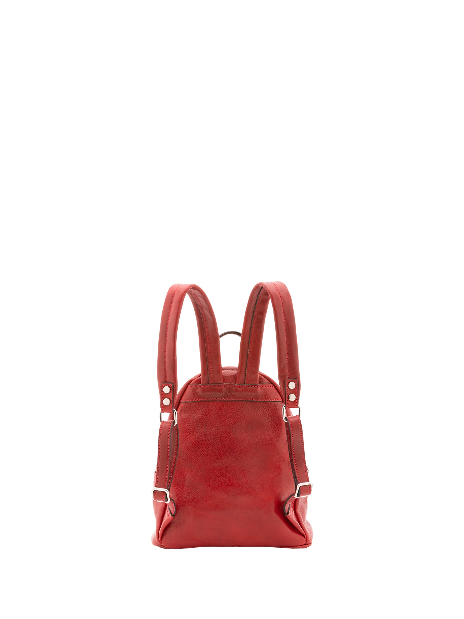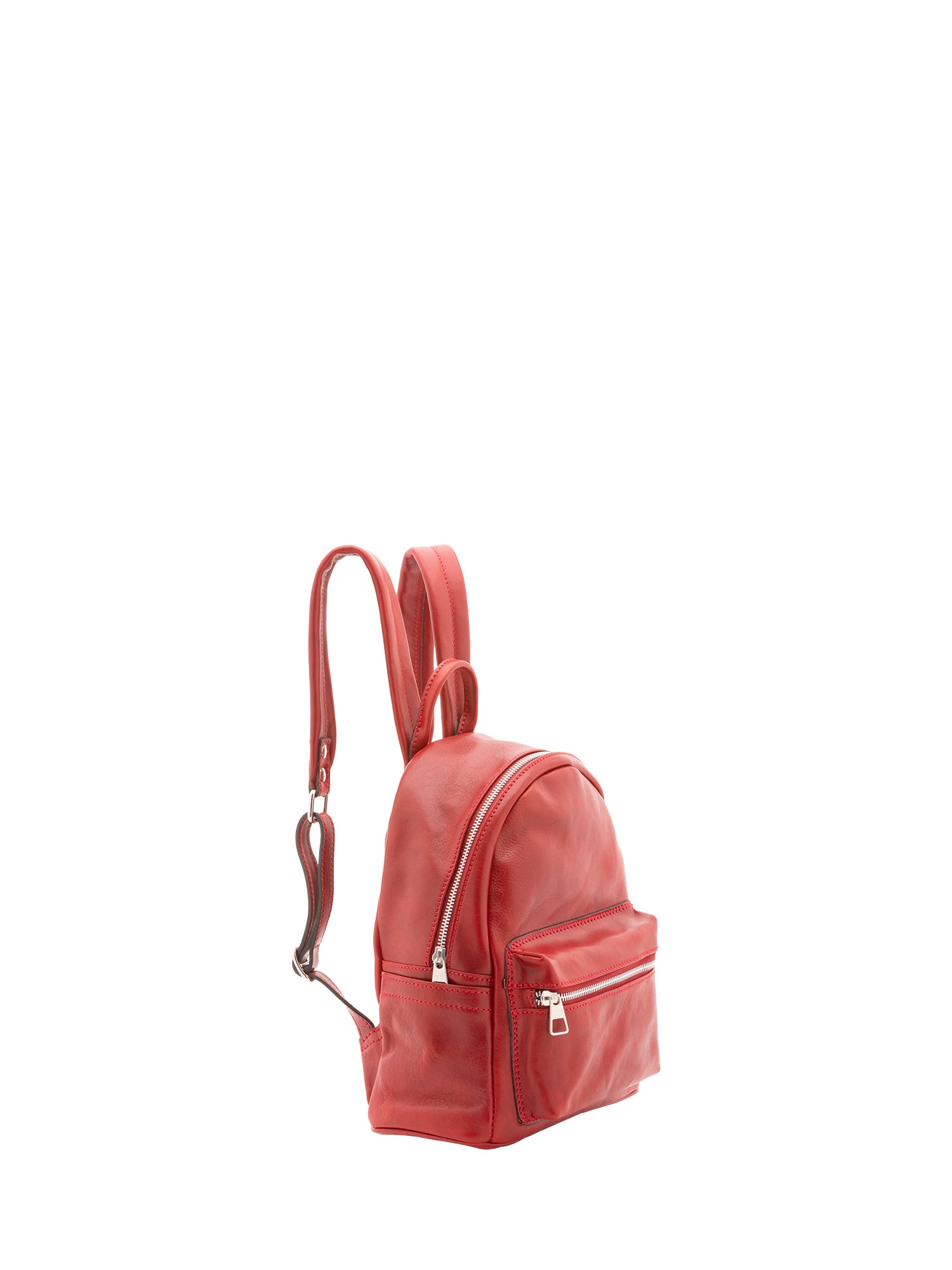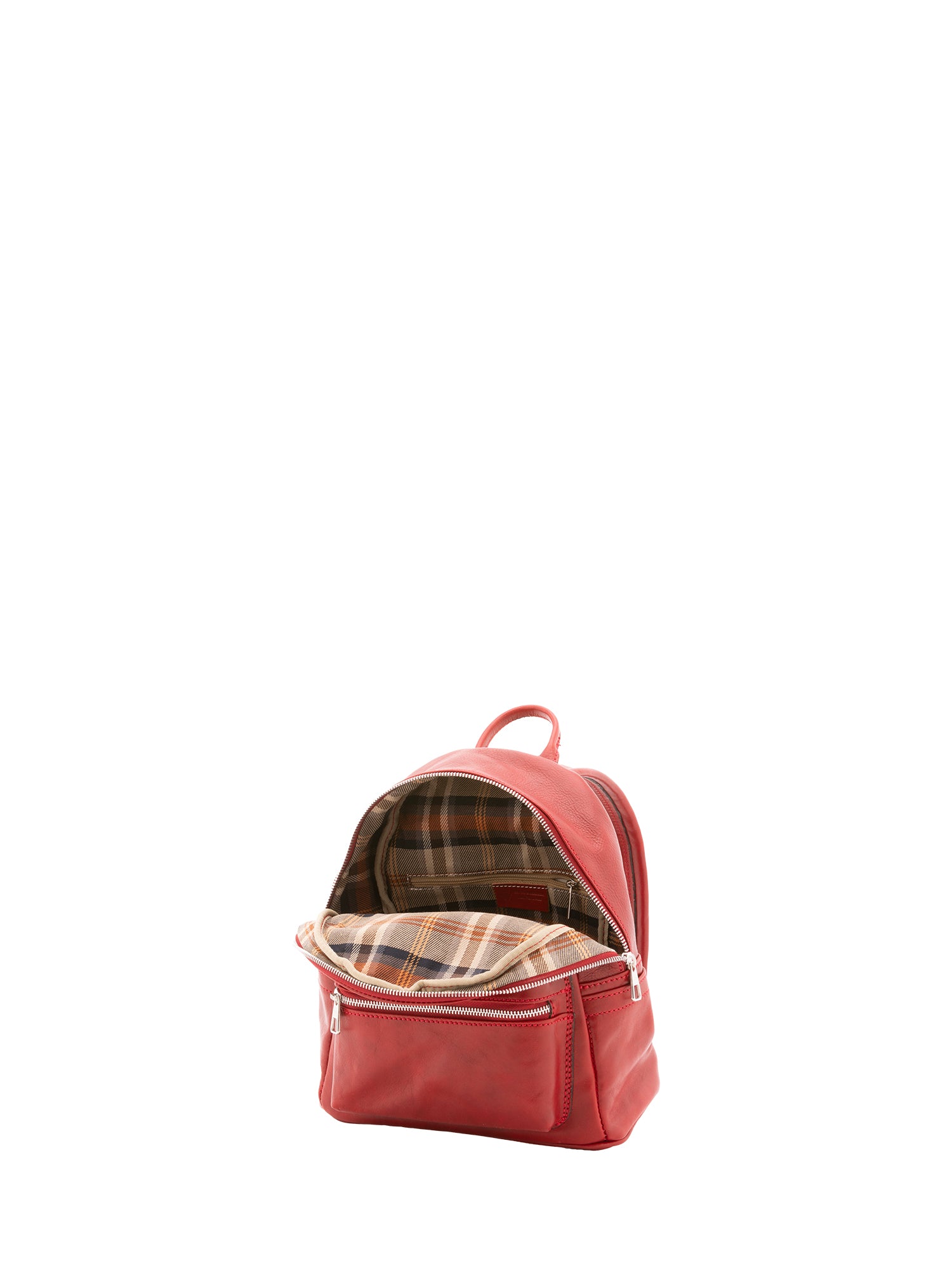 Sac à dos unisexe. La fermeture est à zip. Les poches intérieures sont ouvertes. Les poches extérieures sont une à l'avant avec zip. La bandoulière est réglable en cuir. La poignée est en cuir. Il y a un compartiment interne. Le matériau extérieur est 100 % cuir véritable. L'intérieur est doublé en coton. Dimensions : 23x29x13 cm. Fabriqué en Italie