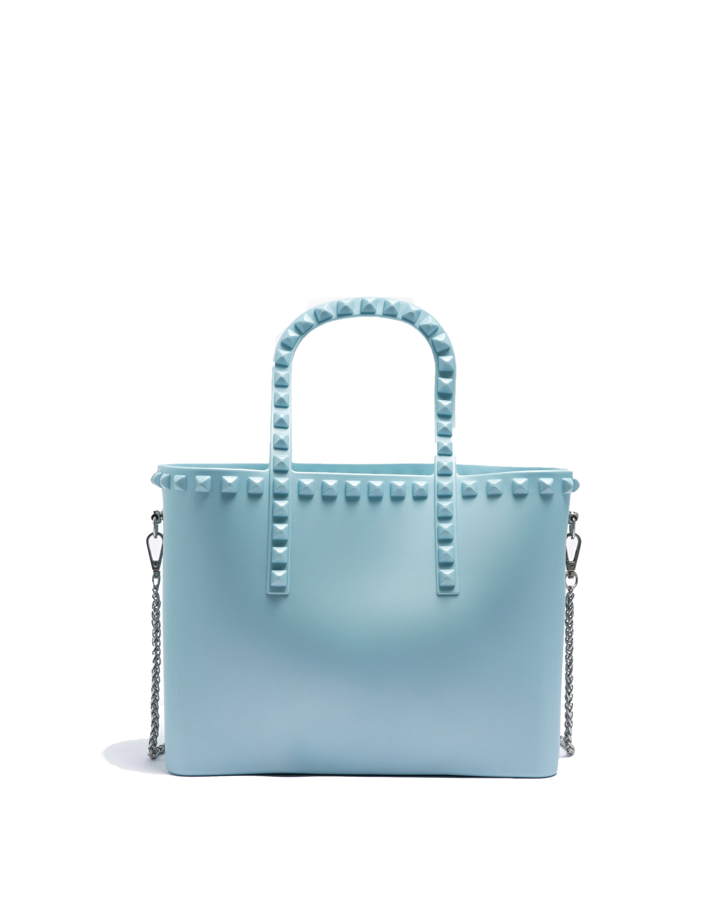 Borsa a mano da donna. La chiusura è assente. Le tasche interne sono assenti. Le tasche esterne sono assenti. La tracolla è rimovibile in catena. Il manico è gomma. Gli scomparti interni sono uno. Il materiale esterno è PVC. Internamente è PVC. Misure: 21x11x5,5 cm . Prodotto Fashion