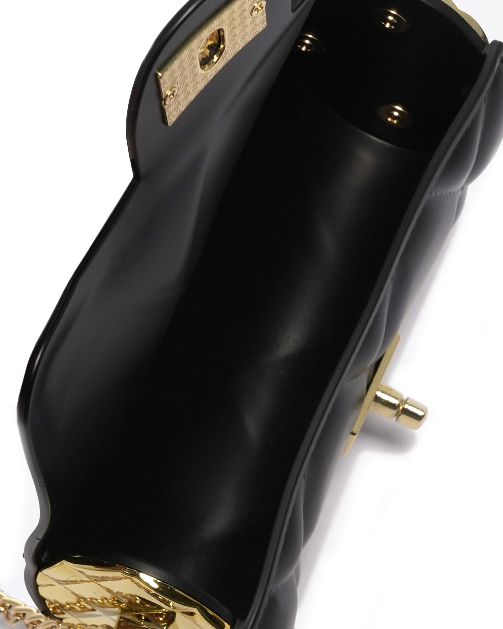 Borsa a mano da donna. La chiusura è con girello. Le tasche interne sono assenti. Le tasche esterne sono assenti. La tracolla è catena. Il manico è assente. Gli scomparti interni sono uno. Il materiale esterno è PVC. Internamente è PVC. Misure: 20,5x12,5x7 cm . Prodotto Fashion