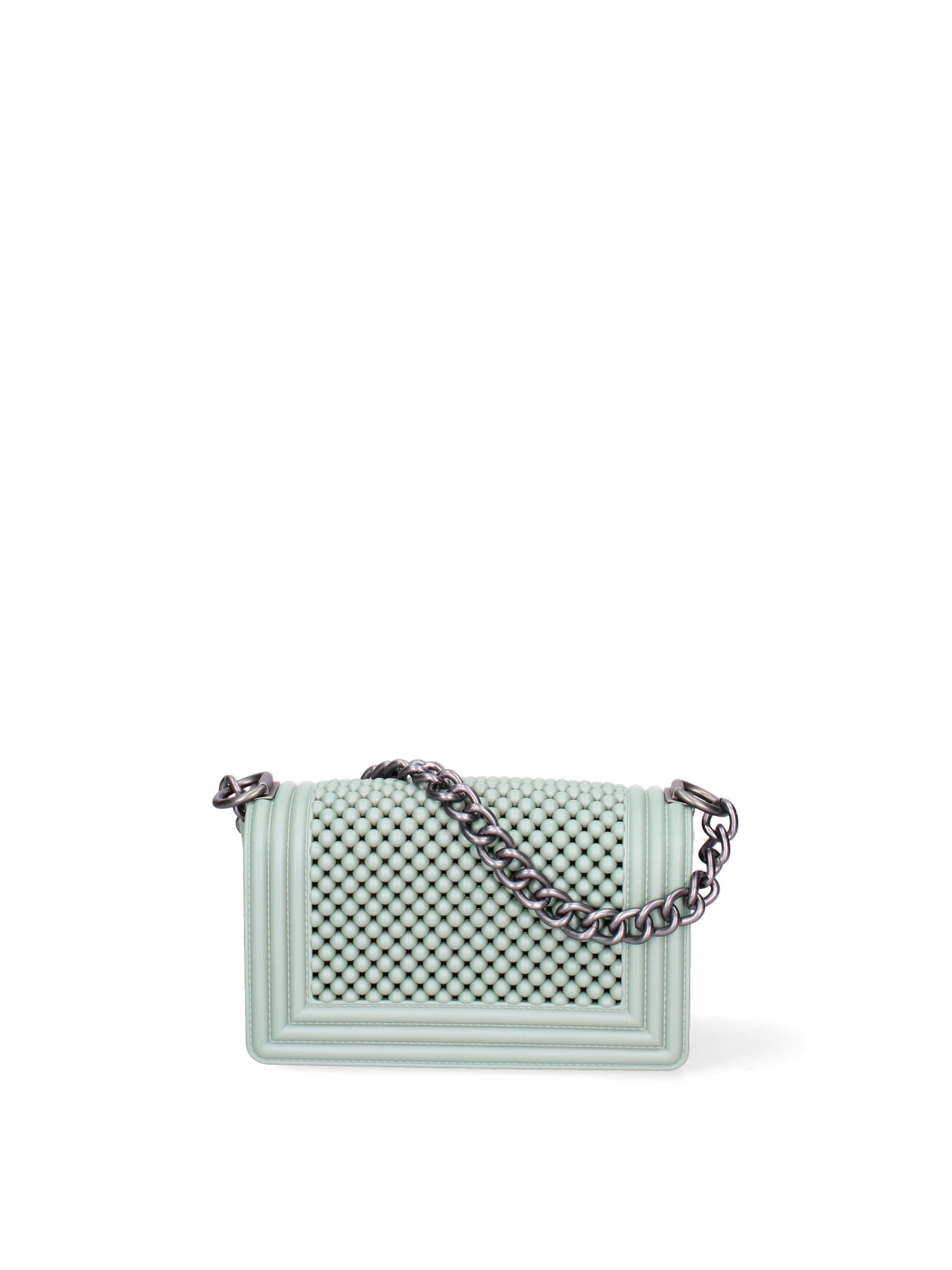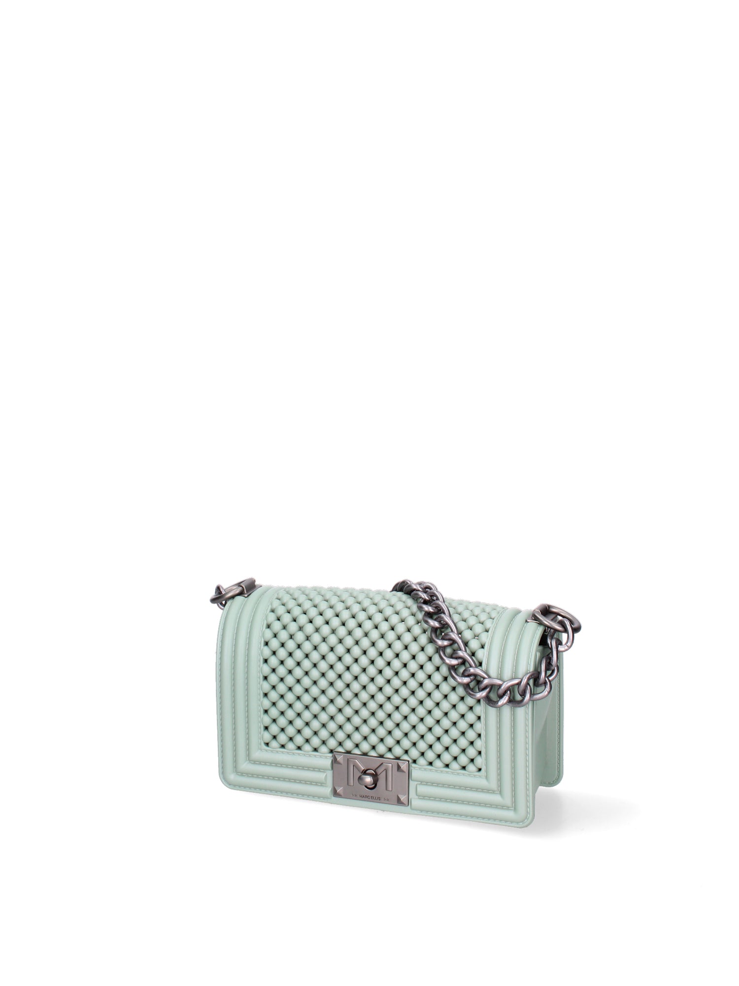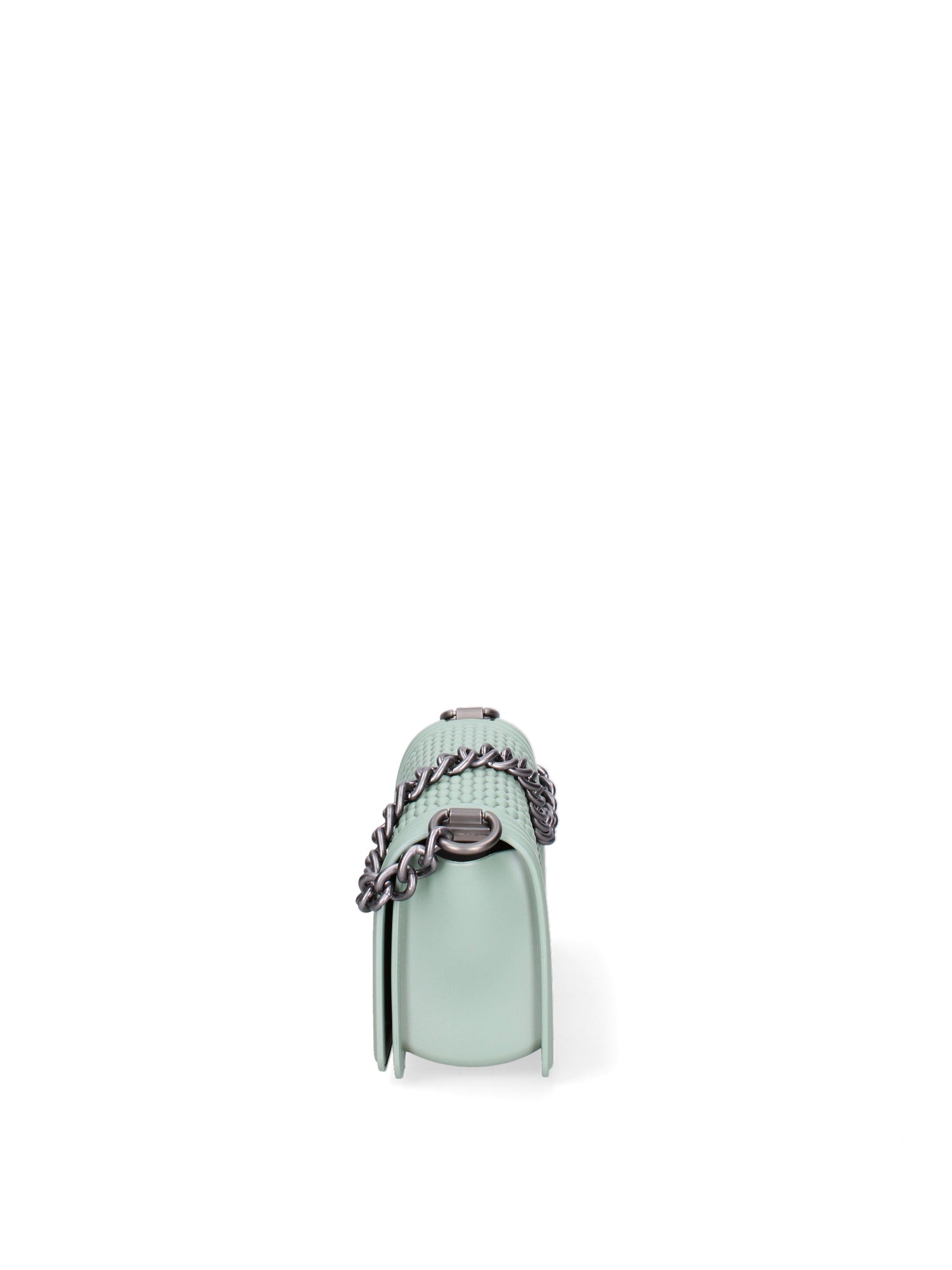 Borsa a mano da donna. La chiusura è con girello. Le tasche interne sono assenti. Le tasche esterne sono assenti. La tracolla è regolabile e rimovibile in tessuto. Il manico è catena. Gli scomparti interni sono uno. Il materiale esterno è PVC. Internamente è PVC. Misure: 11x19x6,5 cm . Prodotto Fashion