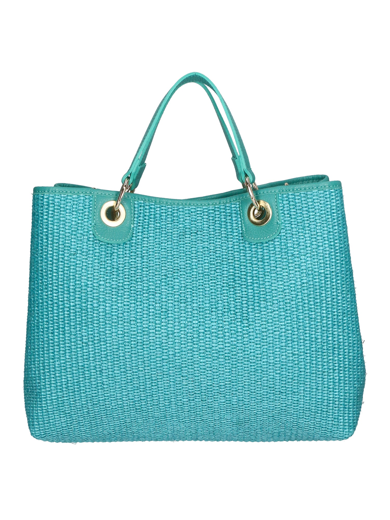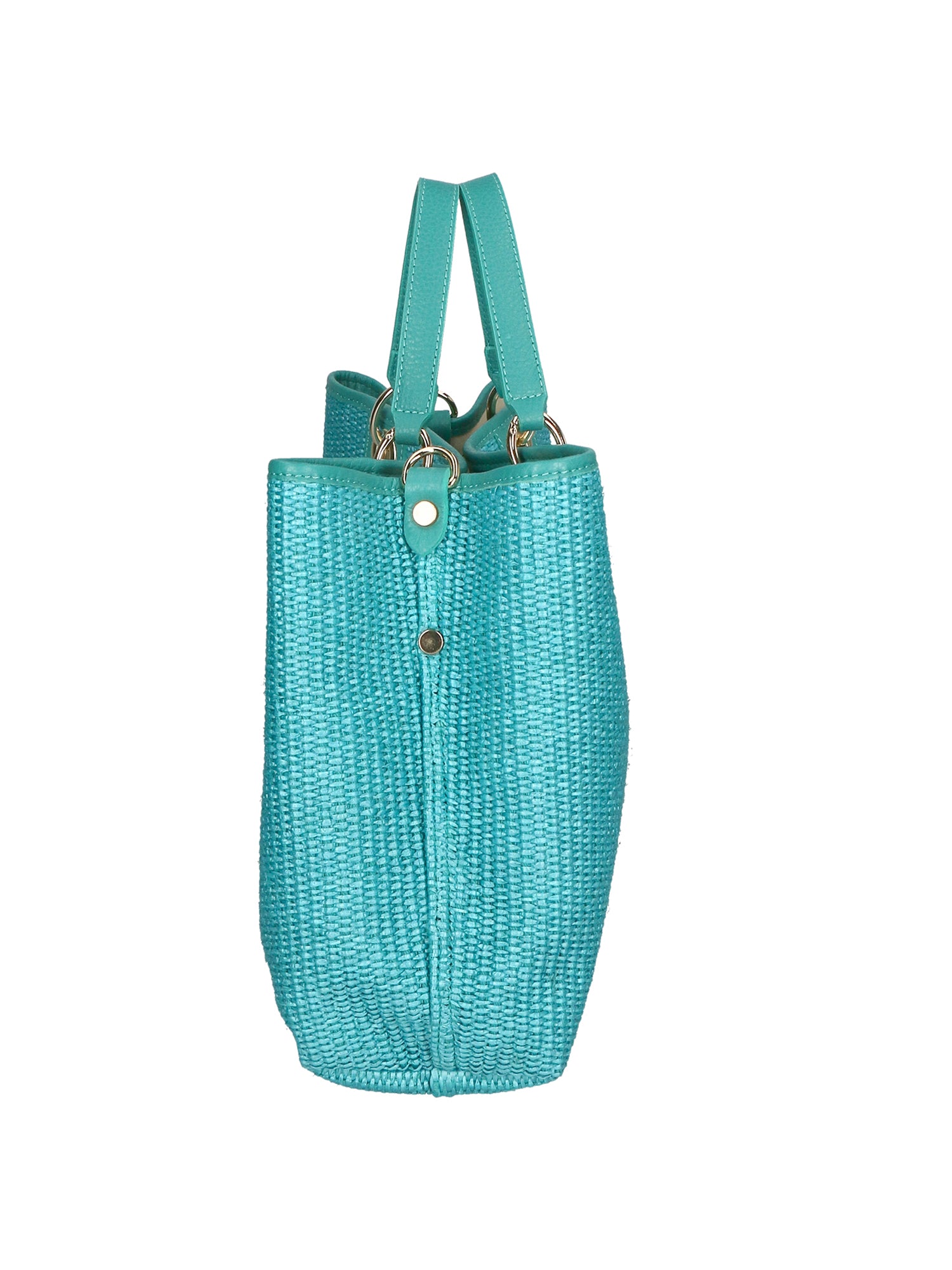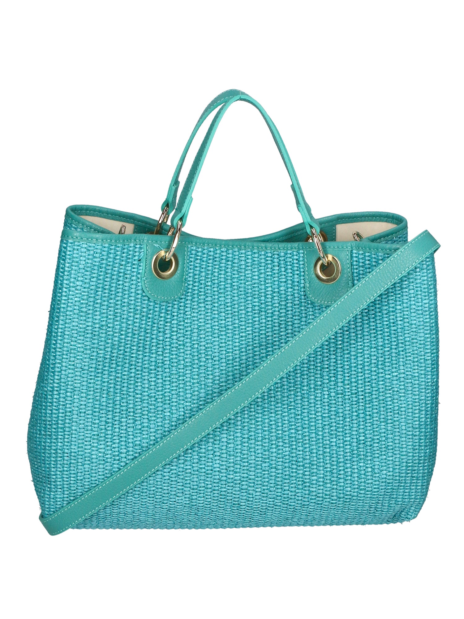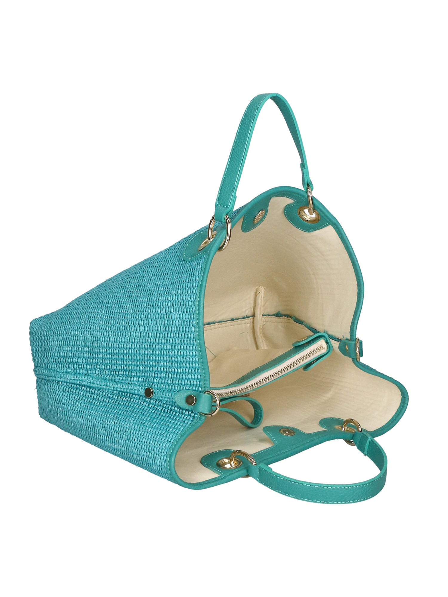 Borsa a mano da donna. La chiusura è con bottone magnetico. Le tasche interne sono Pochette. Le tasche esterne sono assenti. La tracolla è regolabile e rimovibile in pelle . Il manico è in pelle. Gli scomparti interni sono due. Il materiale esterno è paglia tabru e pelle sauvage. Internamente è foderato in tessuto 70% cotone - 30% poliestere. Misure: 30x37,5x16 cm . Made in Italy