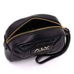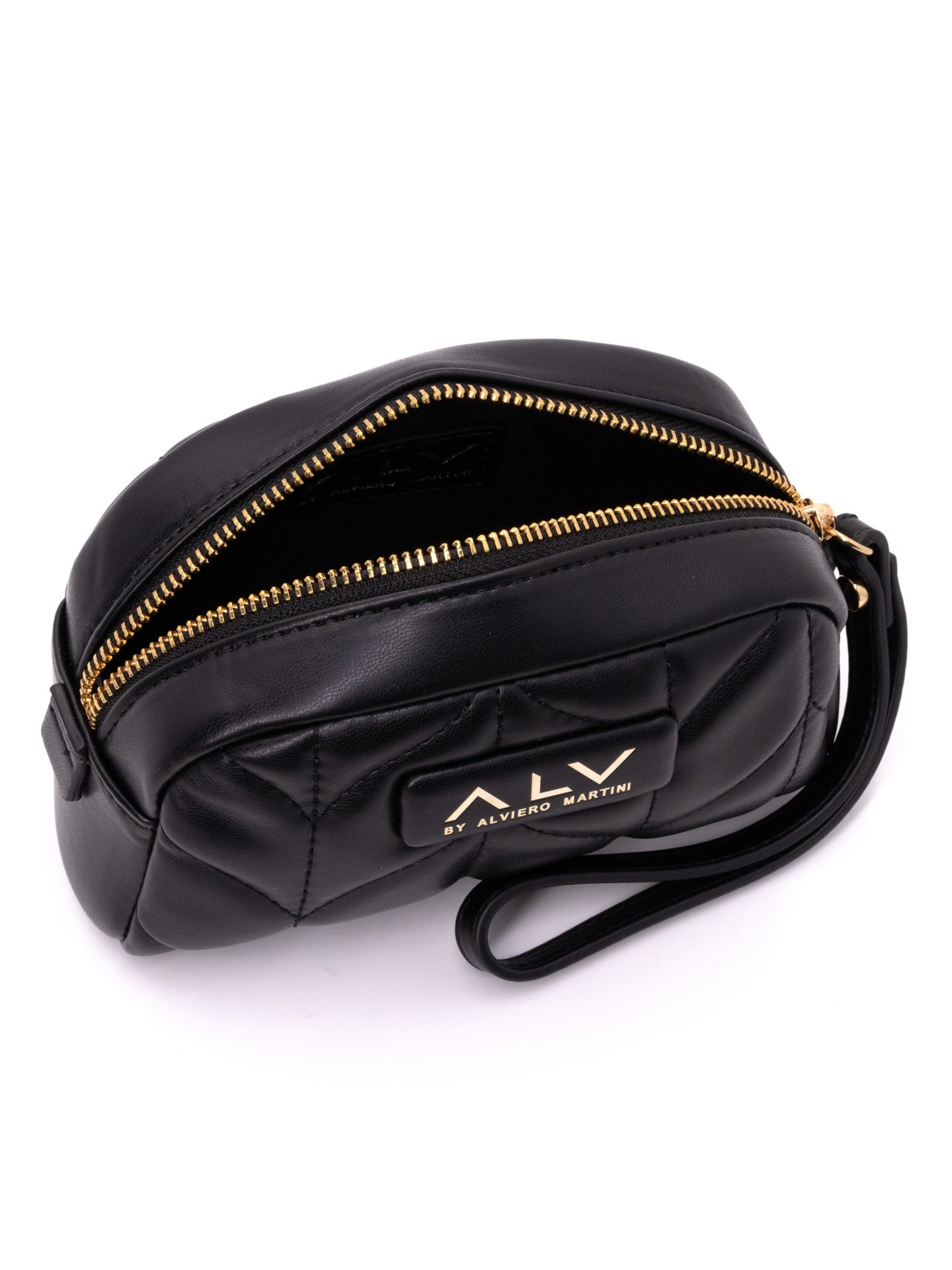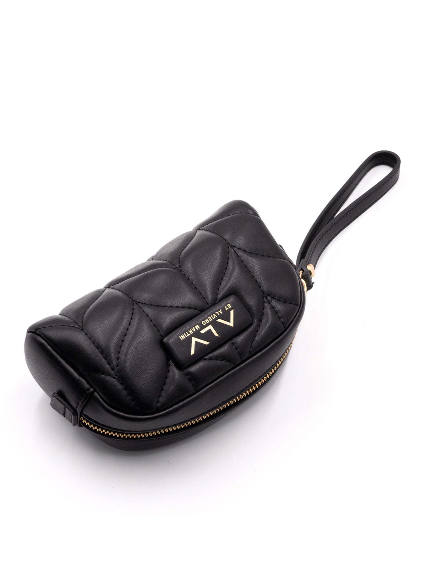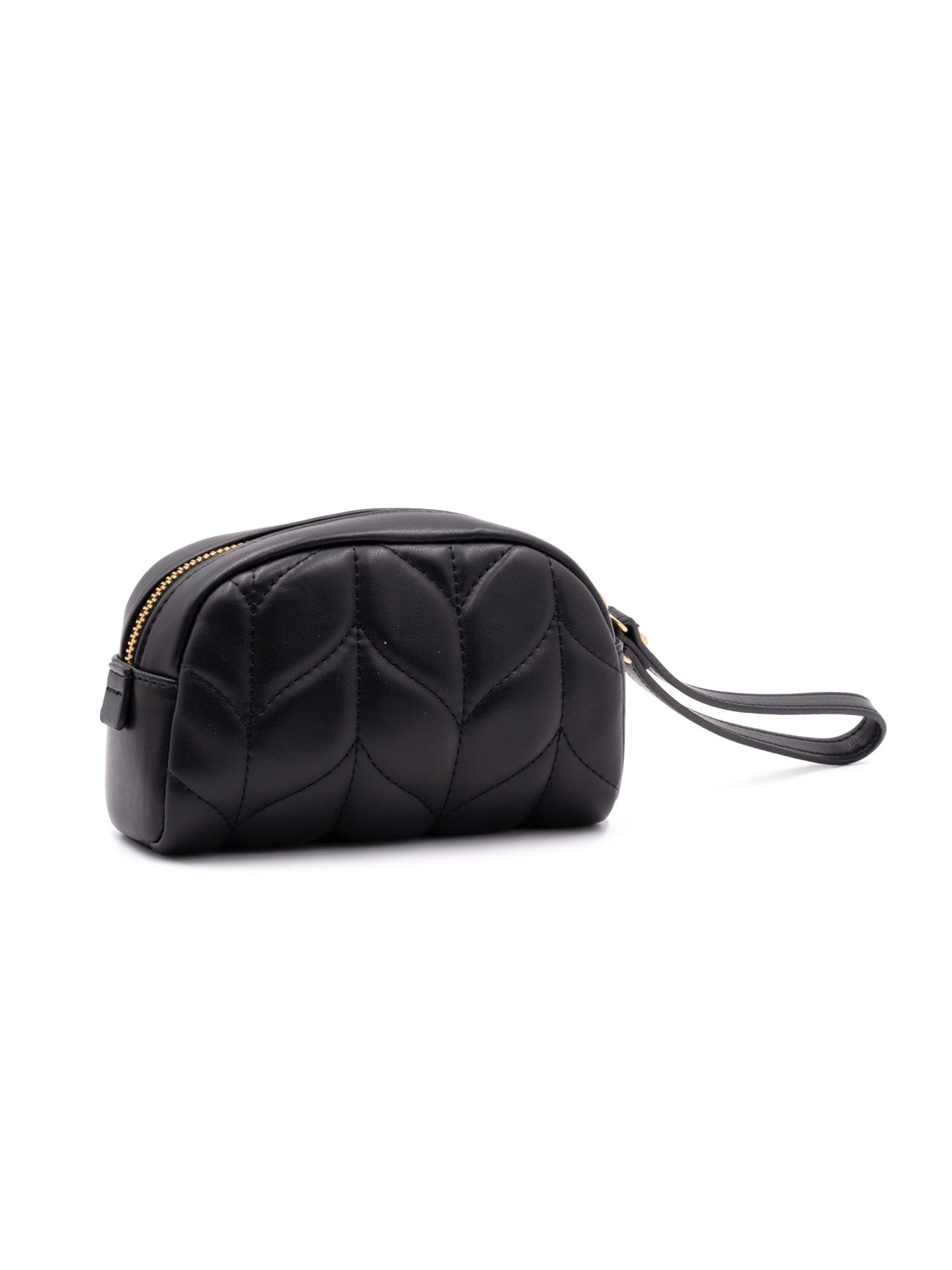La superficie trapuntata conferisce un tocco di texture sofisticato, mentre la chiusura a zip garantisce la sicurezza dei tuoi effetti personali. L'interno, rivestito in poliestere resistente, offre lo spazio ideale per organizzare cosmetici, trucchi o piccoli oggetti essenziali.