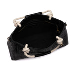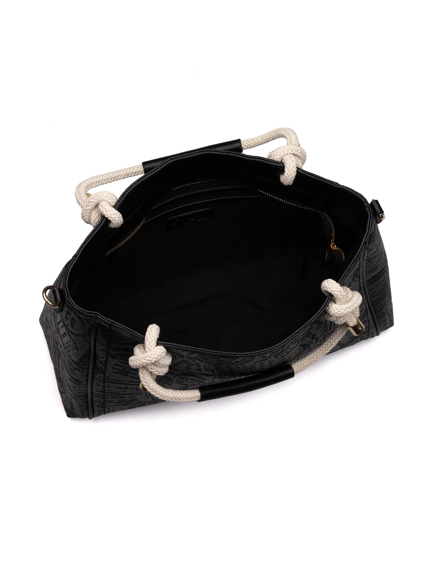 Il design curato è accentuato dai manici intrecciati, che aggiungono un tocco di originalità e unicità. L'interno, foderato in poliestere resistente, offre ampio spazio per organizzare al meglio i tuoi effetti personali. La chiusura con zip garantisce sicurezza e protezione per i tuoi oggetti di valore.