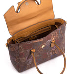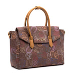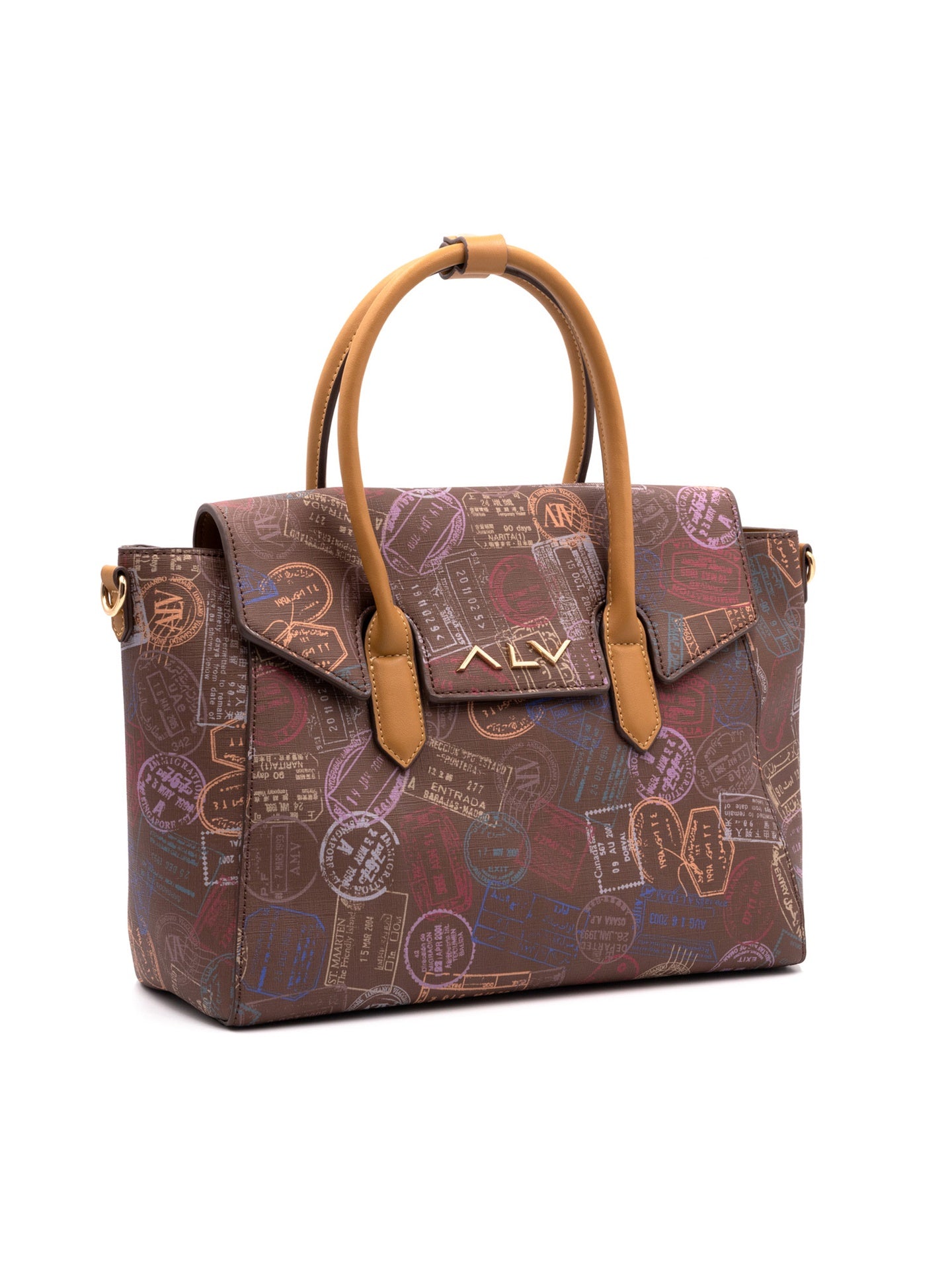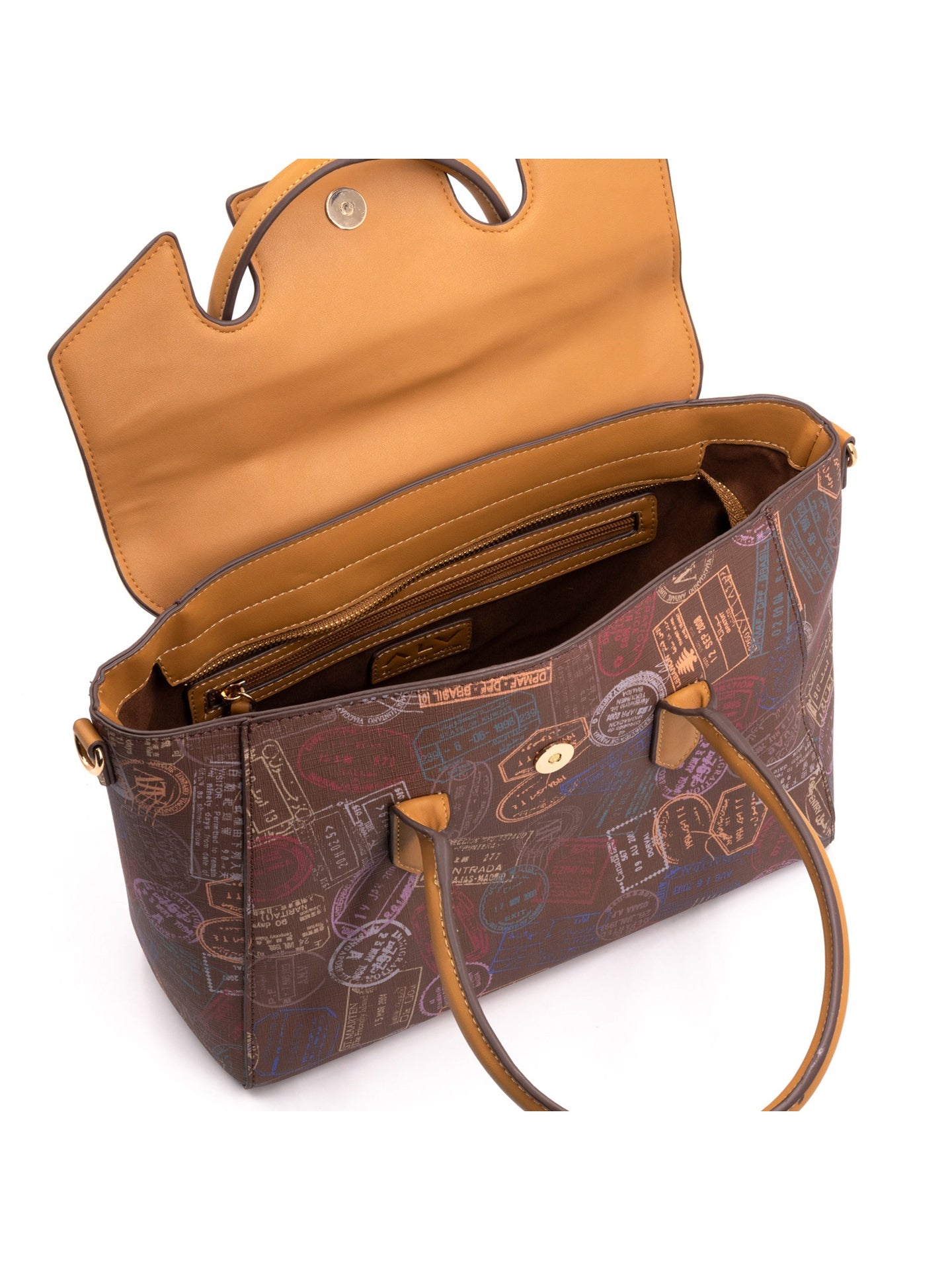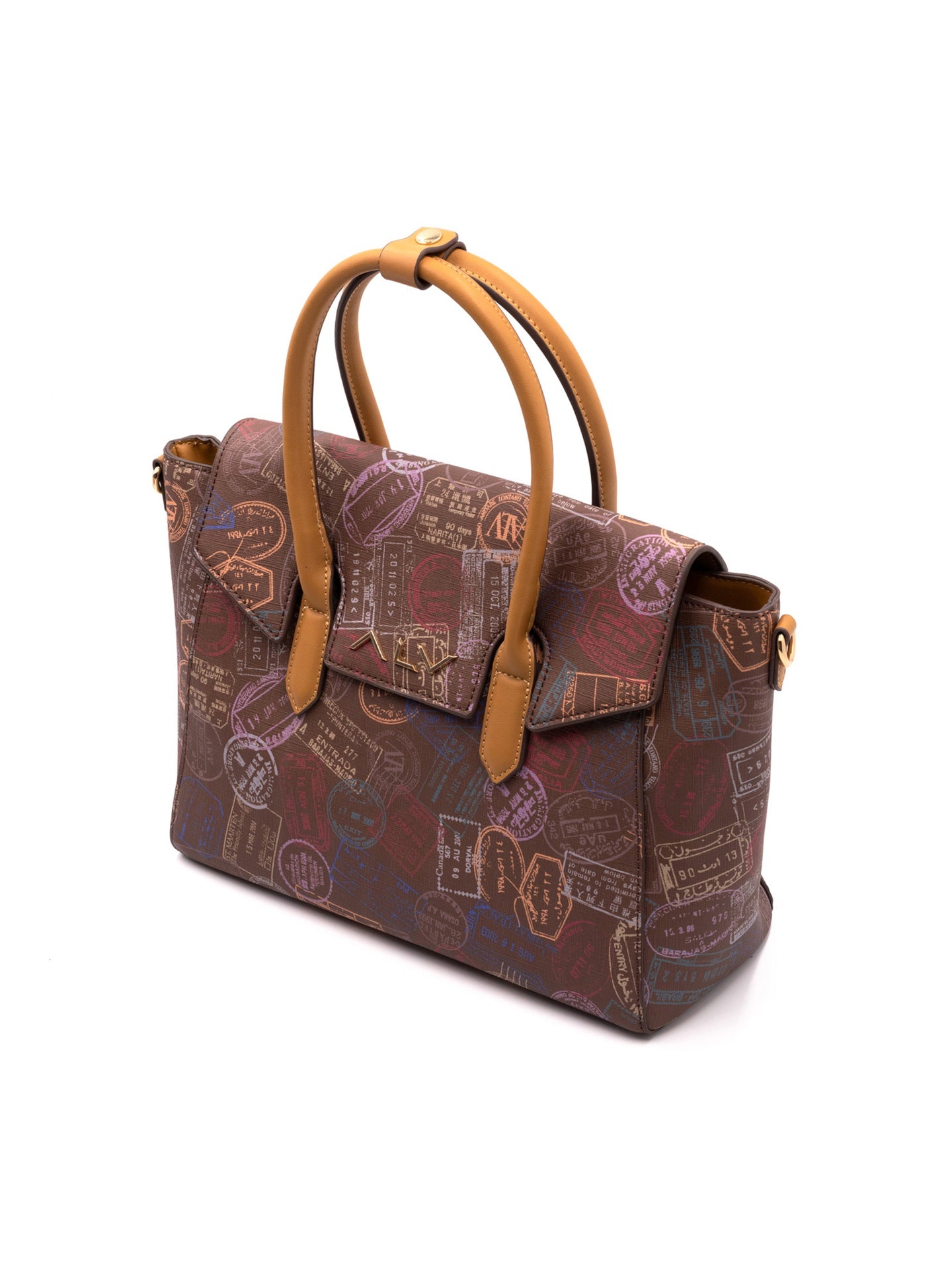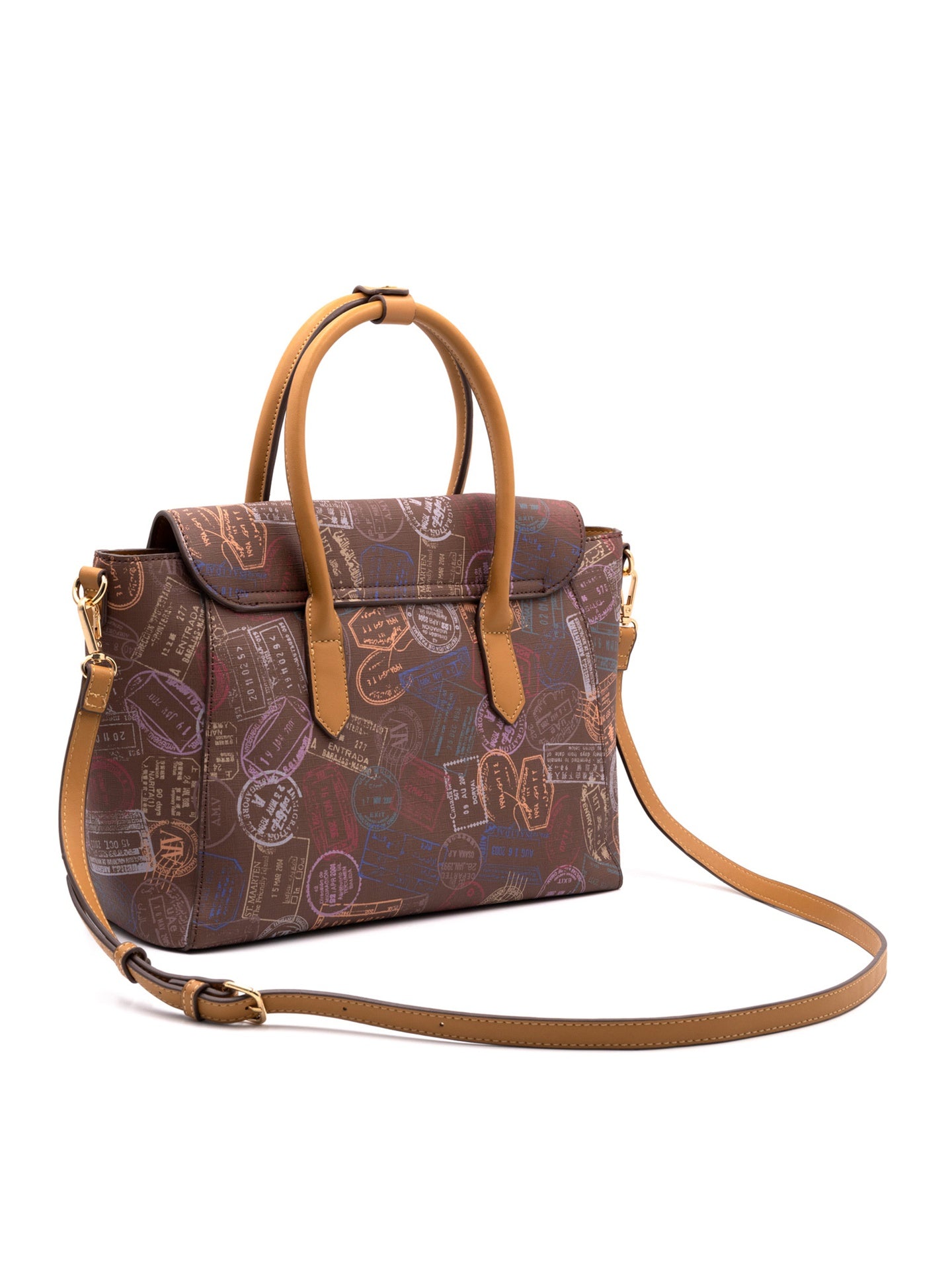 Un tocco di avventura e stile per il tuo look quotidiano. Questa borsa a mano è un accessorio fashion che cattura l'attenzione con la sua originale stampa ispirata ai timbri di viaggio. Realizzata in 100% poliuretano di alta qualità, offre un aspetto sofisticato e una resistenza duratura.