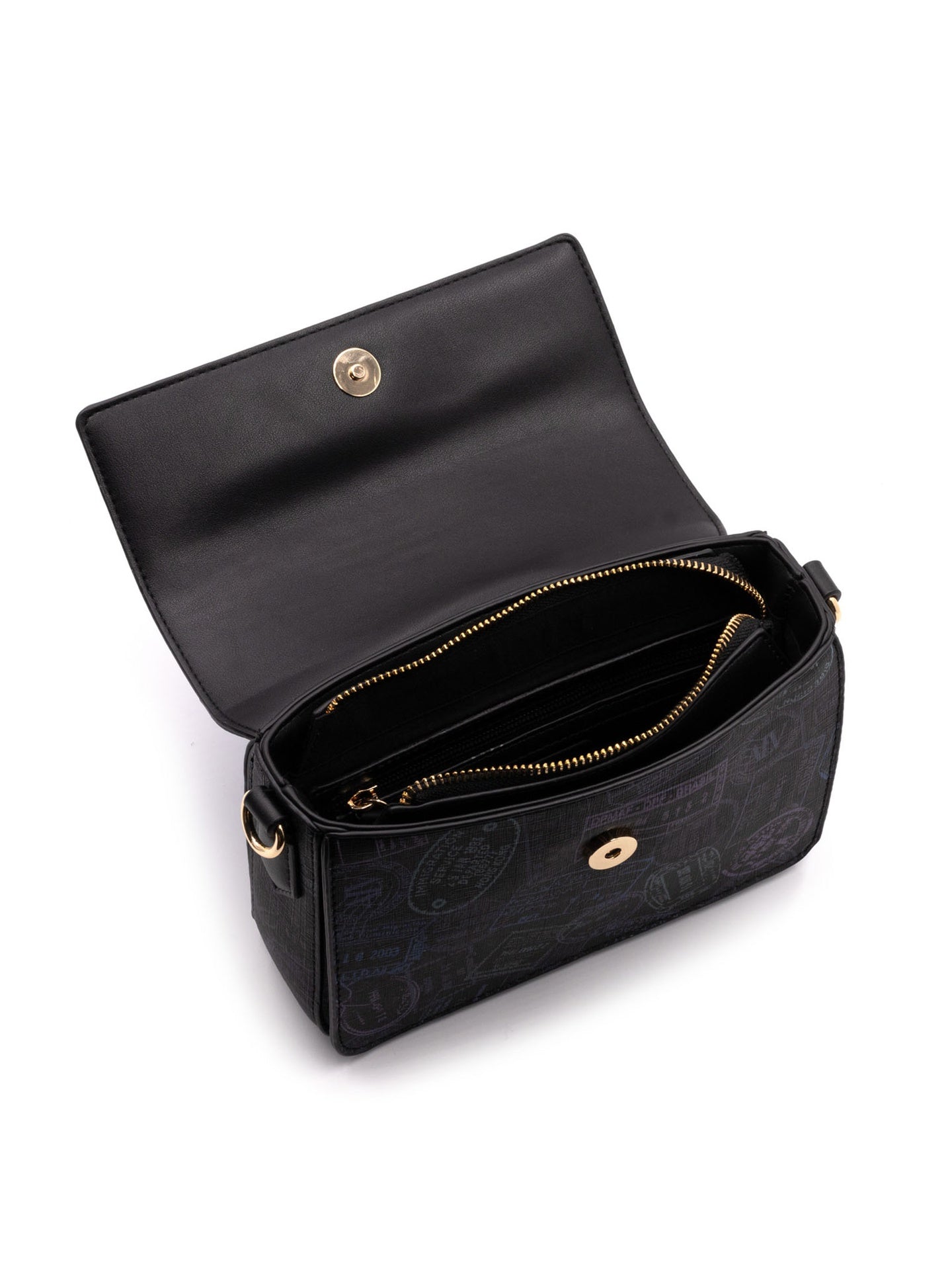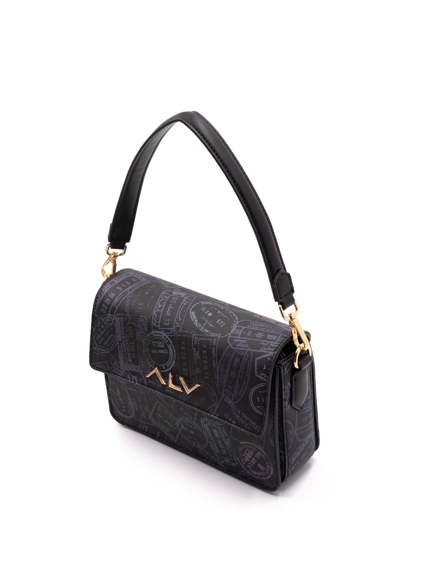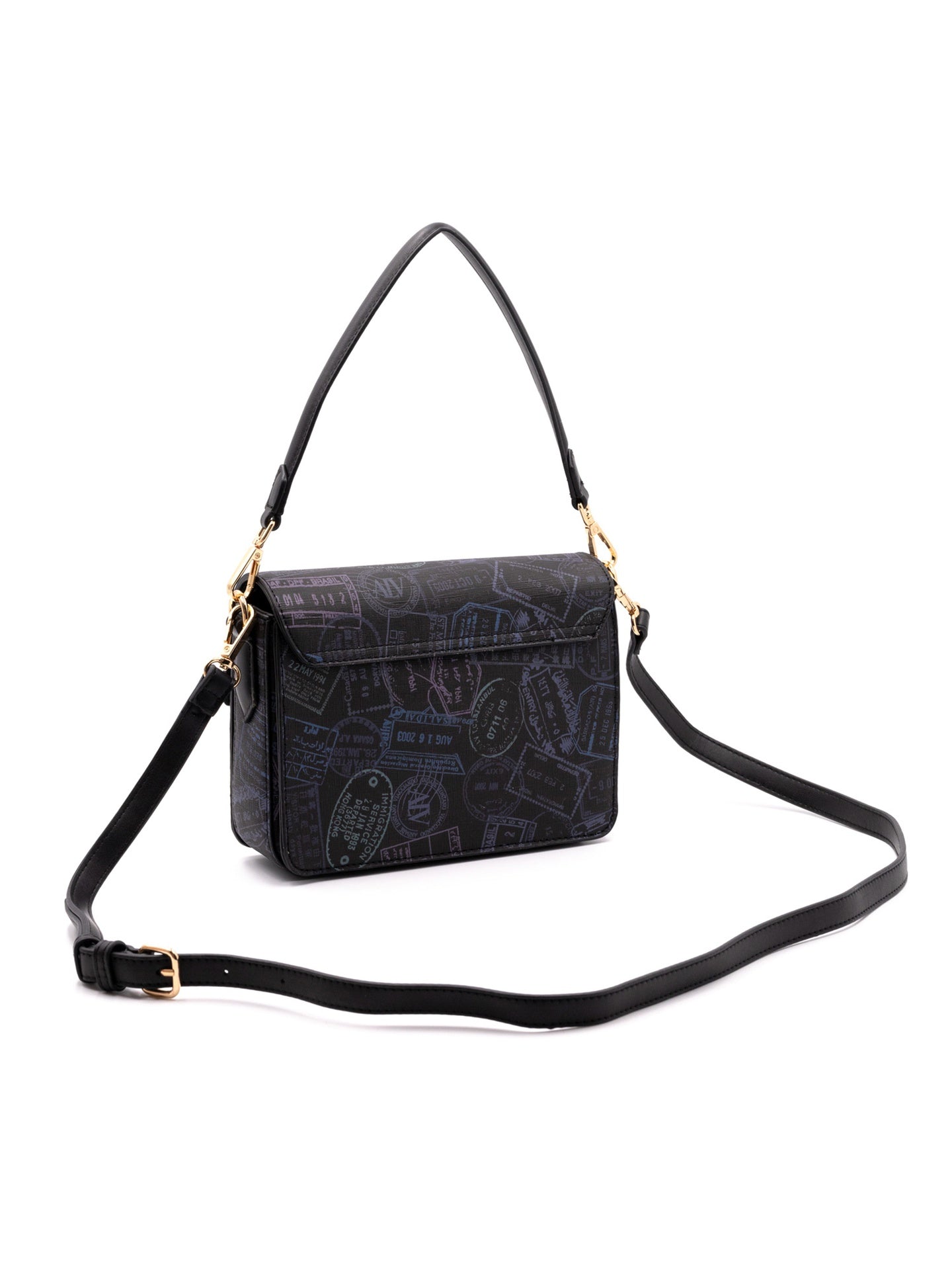 Realizzata in 100% poliuretano di alta qualità, questa borsa cattura l'attenzione con la sua stampa ispirata ai timbri di viaggio, che evoca ricordi di esplorazioni e scoperte. La texture raffinata e la cura dei dettagli la rendono un vero e proprio gioiello artigianale.