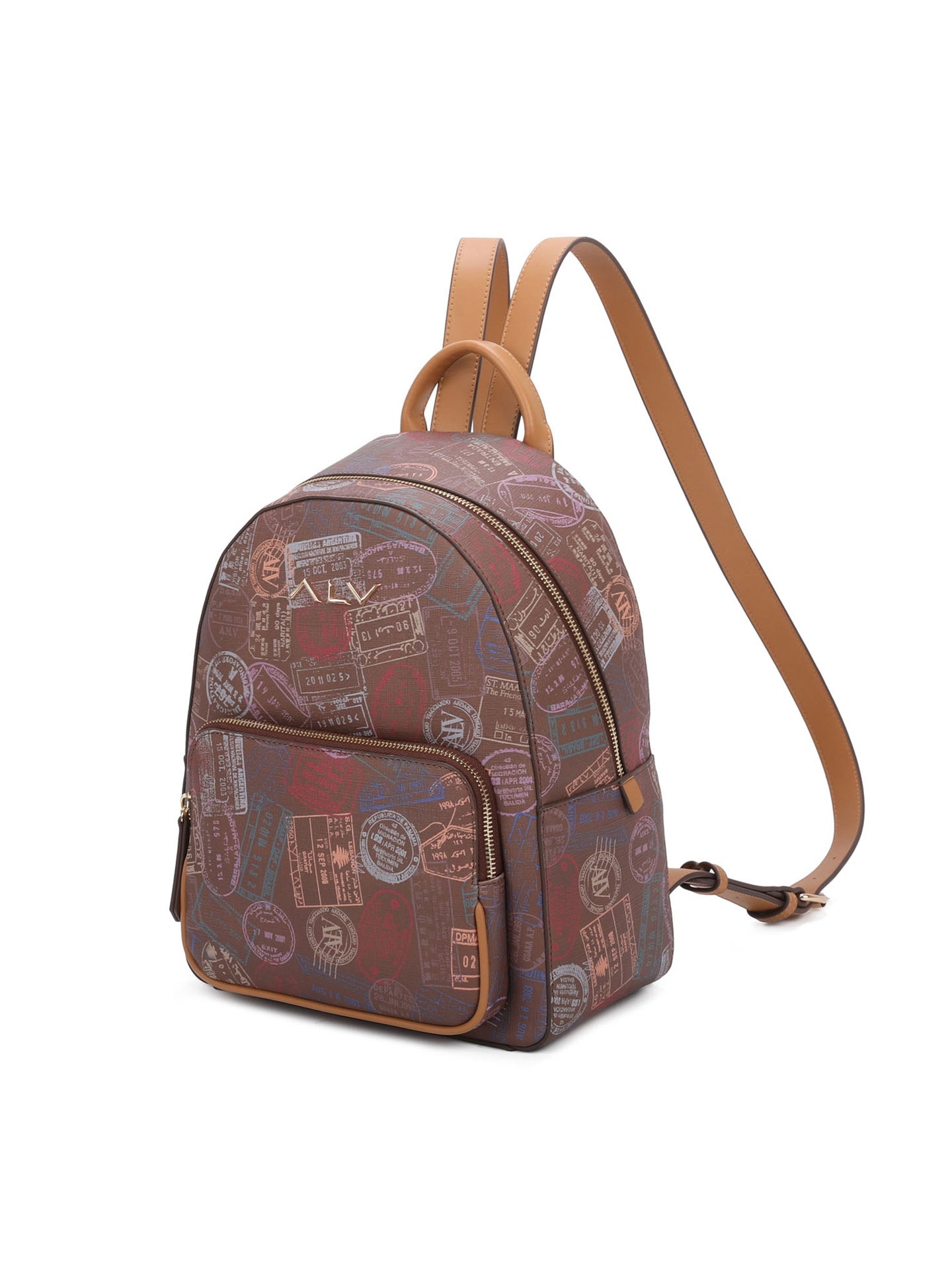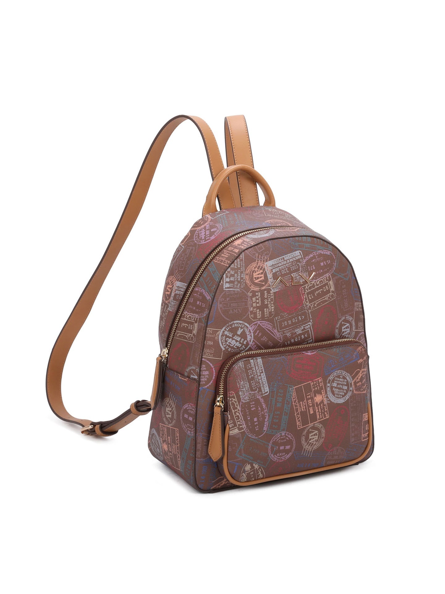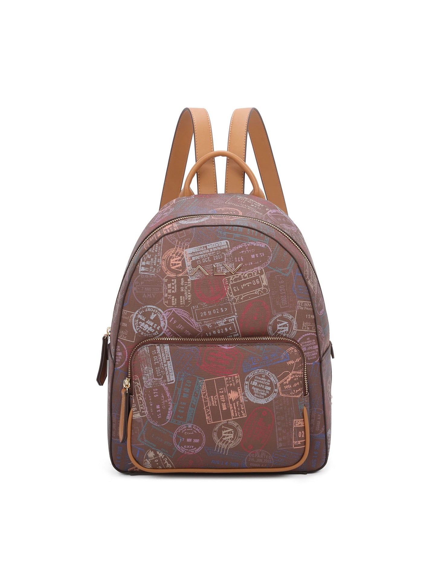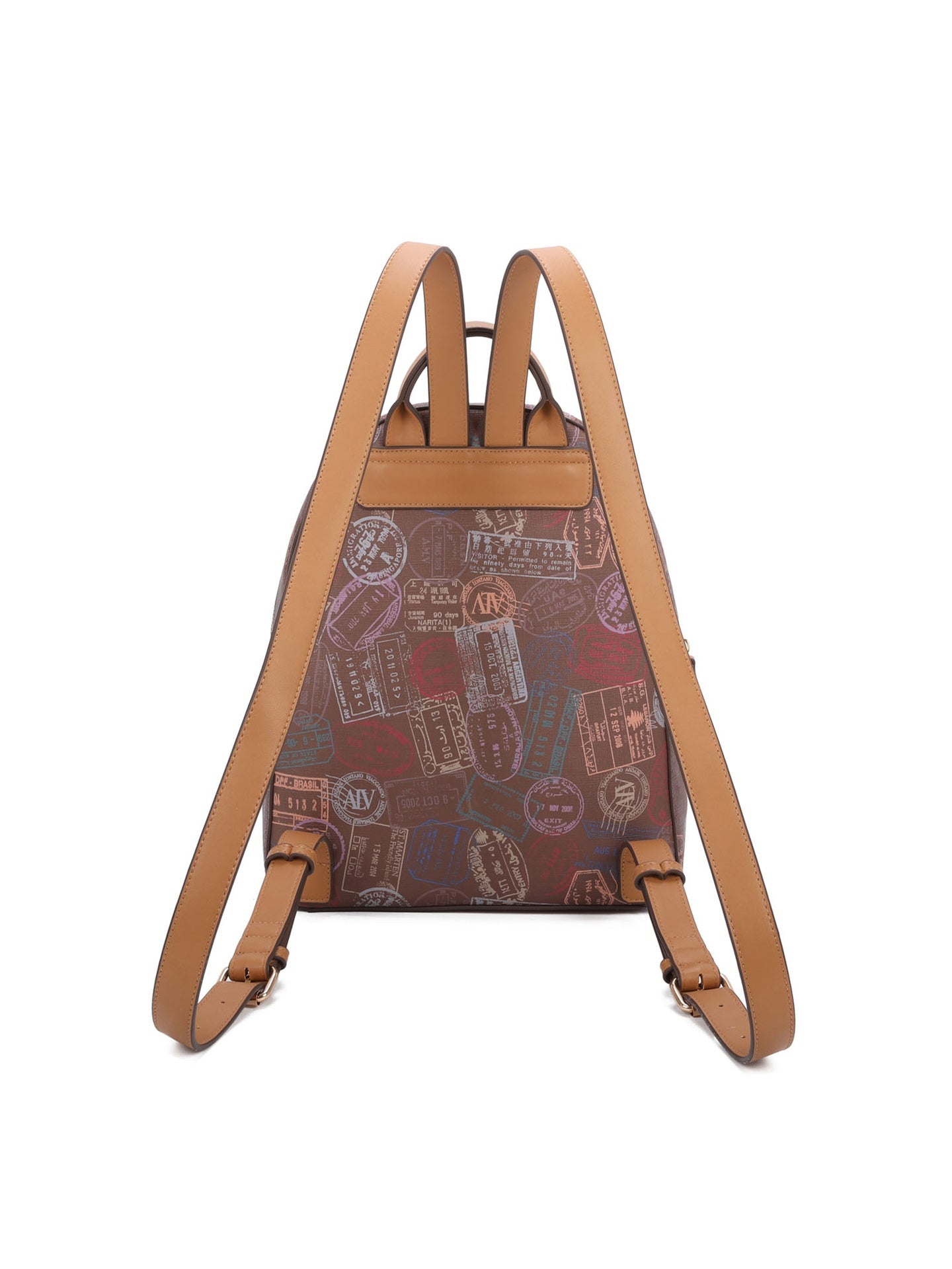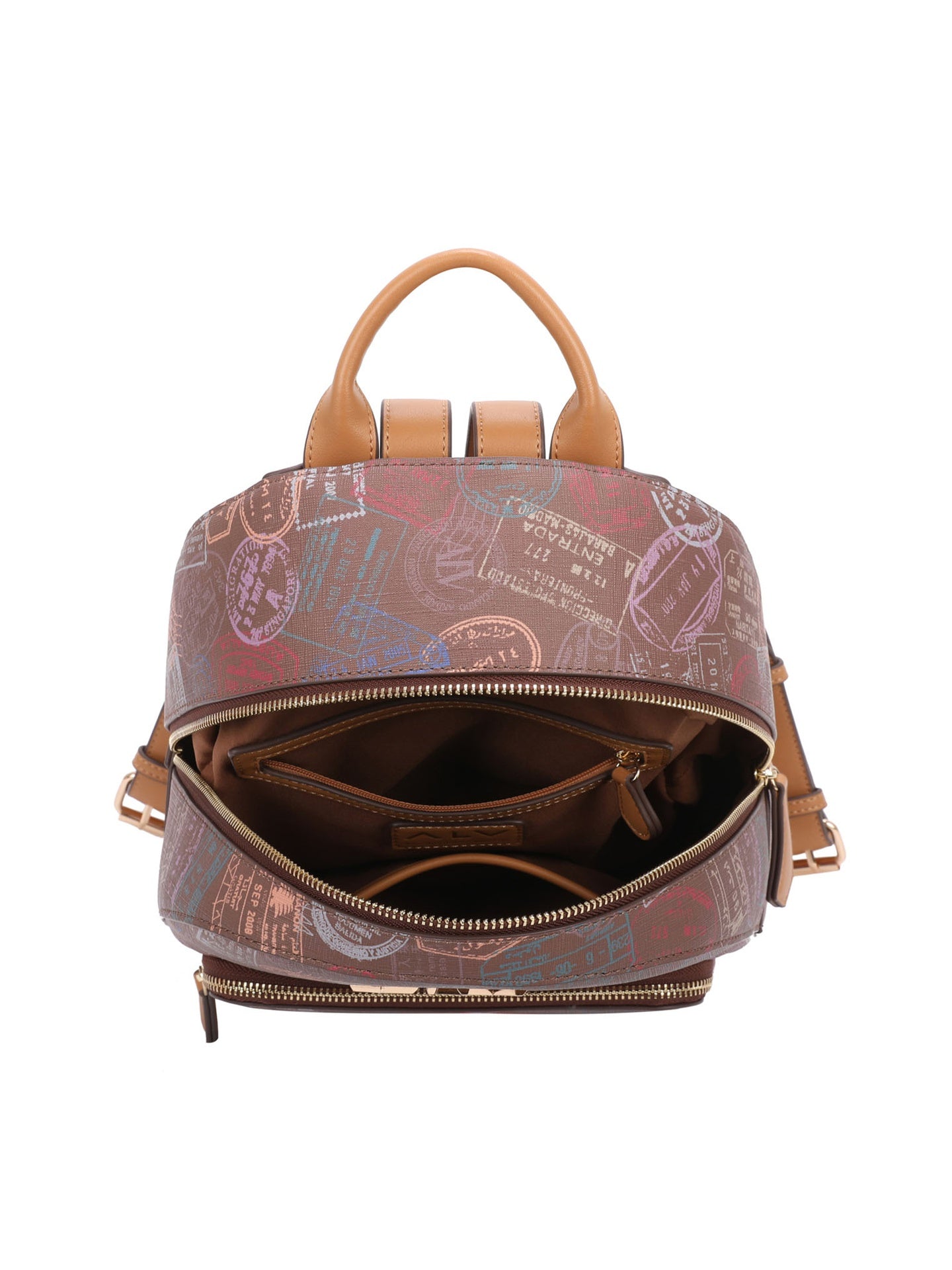 Un tocco di avventura e stile per la tua quotidianità. Questo zaino, realizzato in raffinato poliuretano, cattura l'attenzione con la sua stampa esclusiva ispirata ai timbri da viaggio, evocando un senso di scoperta e libertà.