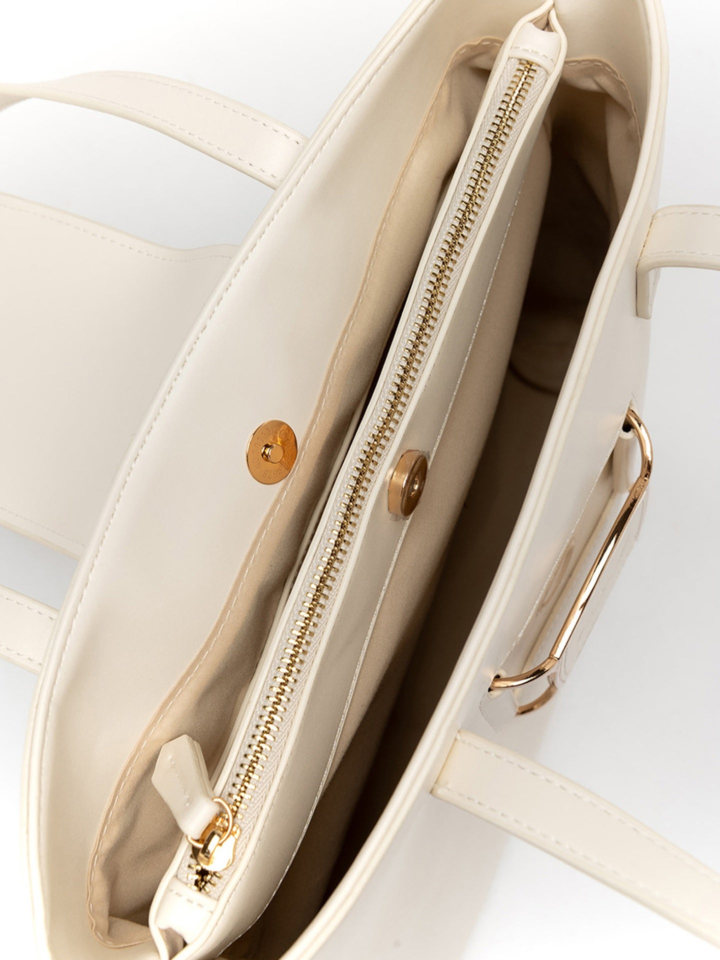 Il design pulito e minimalista è arricchito da dettagli distintivi che ne sottolineano l'eleganza, come la chiusura iconica che aggiunge un tocco di stile inconfondibile.