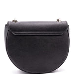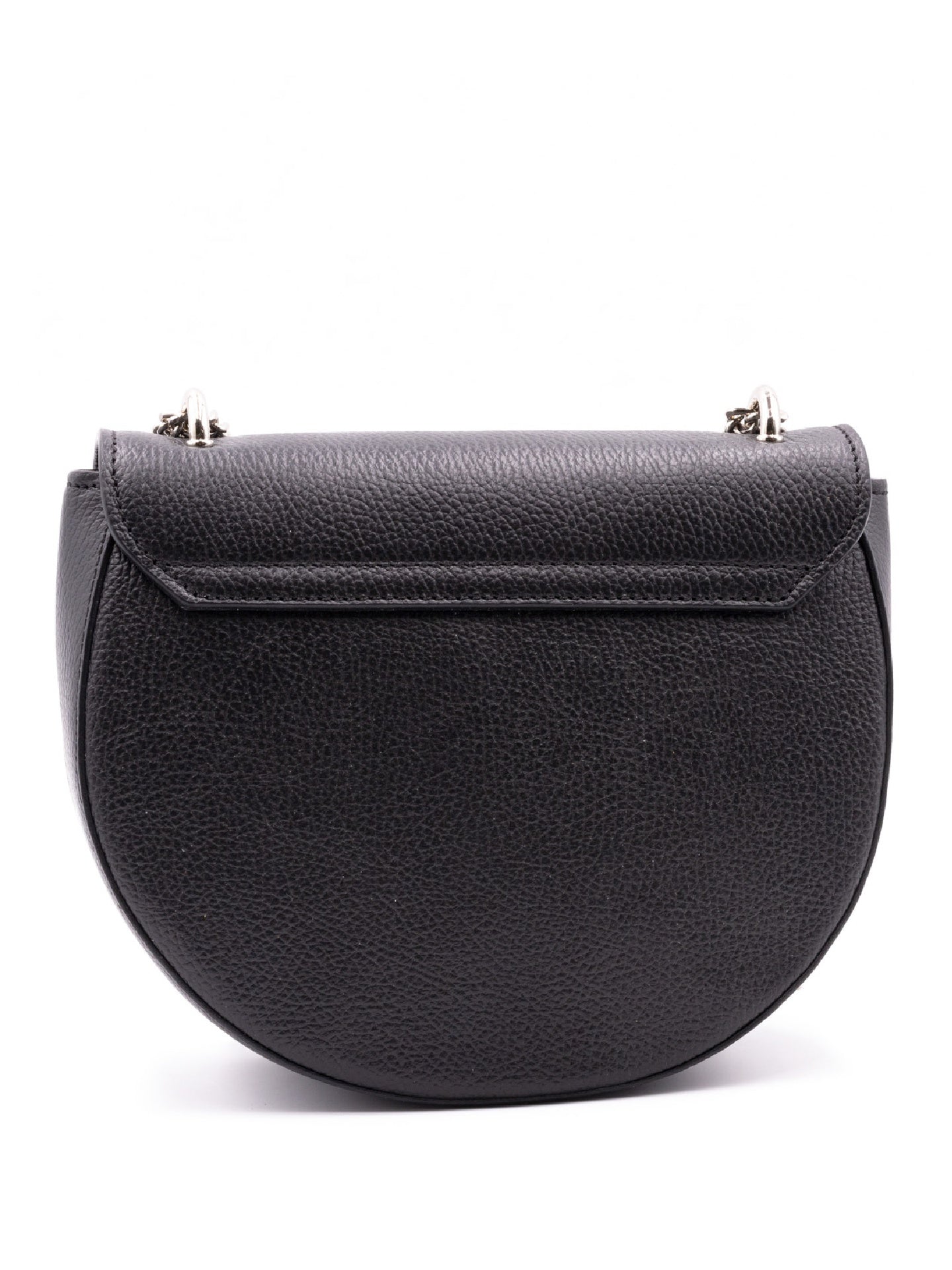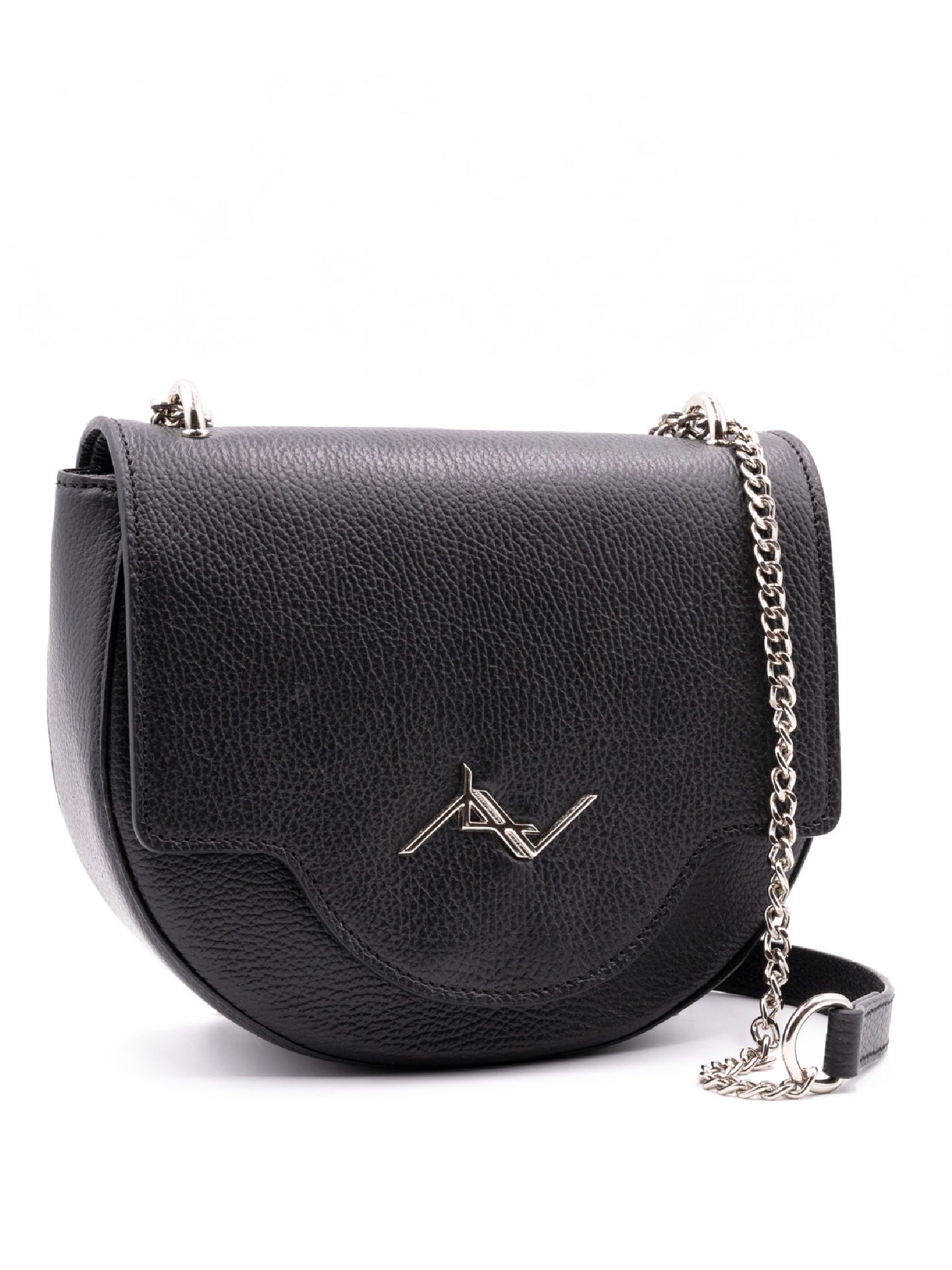 La sua forma arrotondata e la texture delicata della pelle conferiscono un fascino senza tempo, mentre la tracolla a catena aggiunge un tocco moderno e raffinato. L'interno, foderato in poliestere resistente, offre spazio sufficiente per gli essenziali di tutti i giorni, mantenendoli organizzati e al sicuro.
