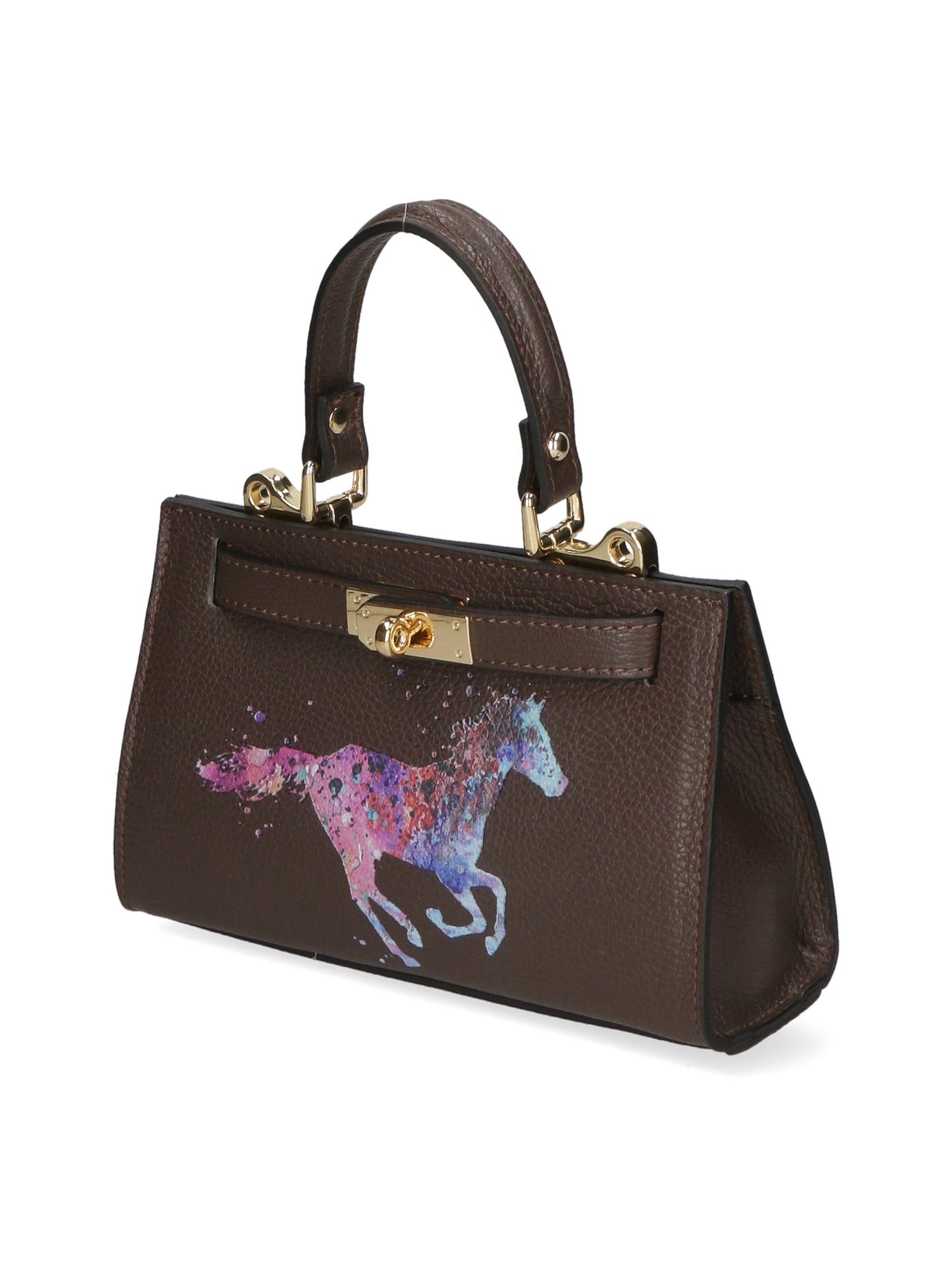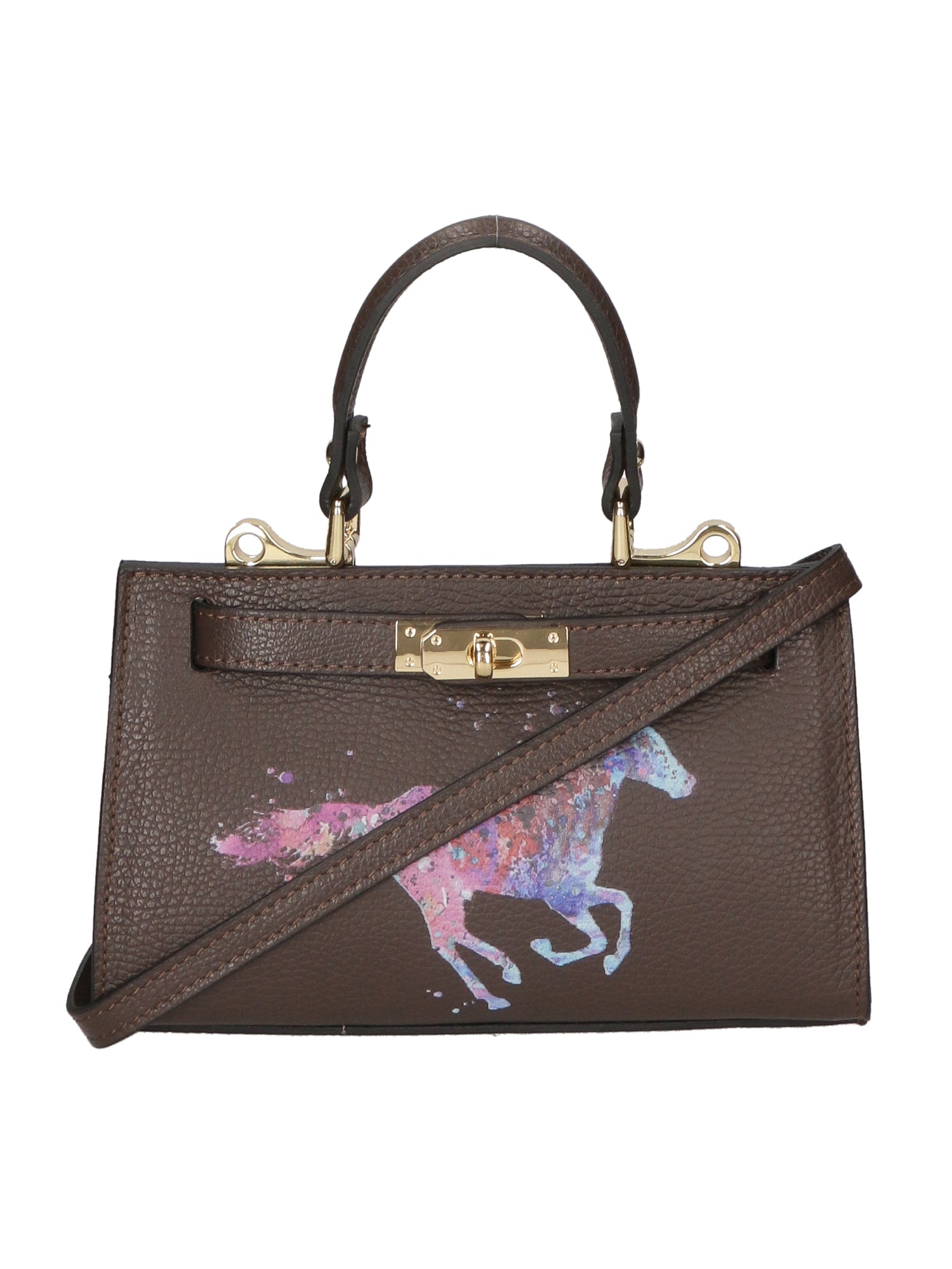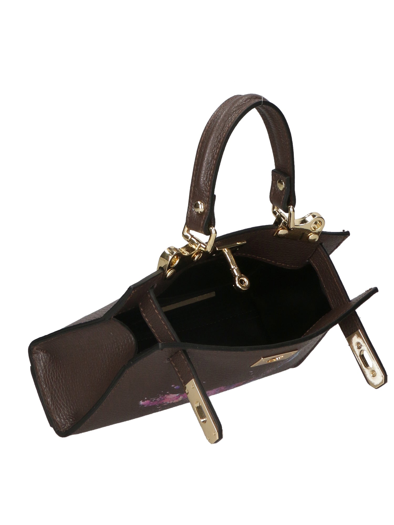 Borsetta a mano a scomparto unico da donna con manico superiore e tracolla regolabile rimovibile. Prodotto artigianale italiano in vera pelle dollaro con stampa frontale. Made in Italy