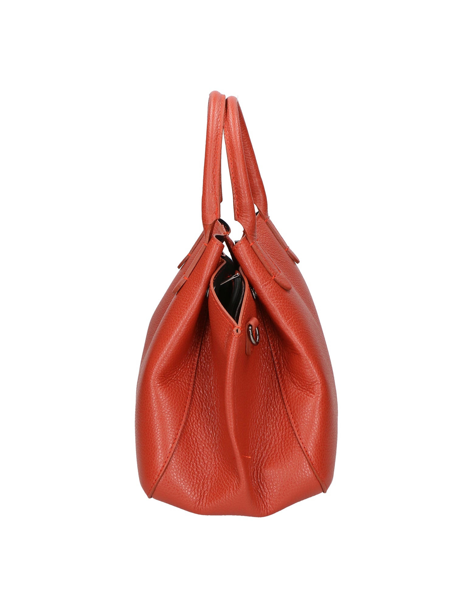 Borsa a mano donna con clip laterali per regolare l'ampiezza. Dotata di tracolla rimovibile. Prodotto artigianale italiano in vera pelle Dollaro. Made in Italy.