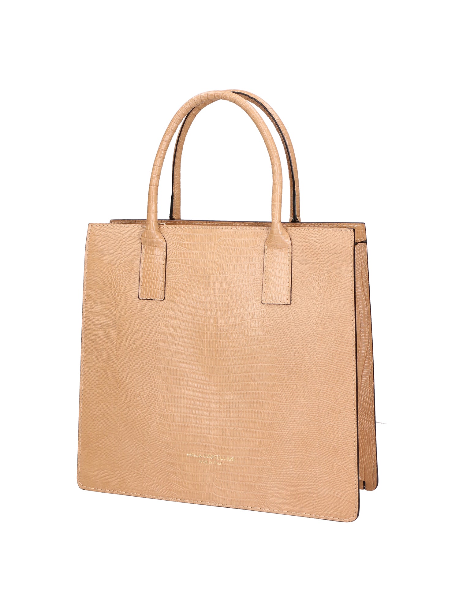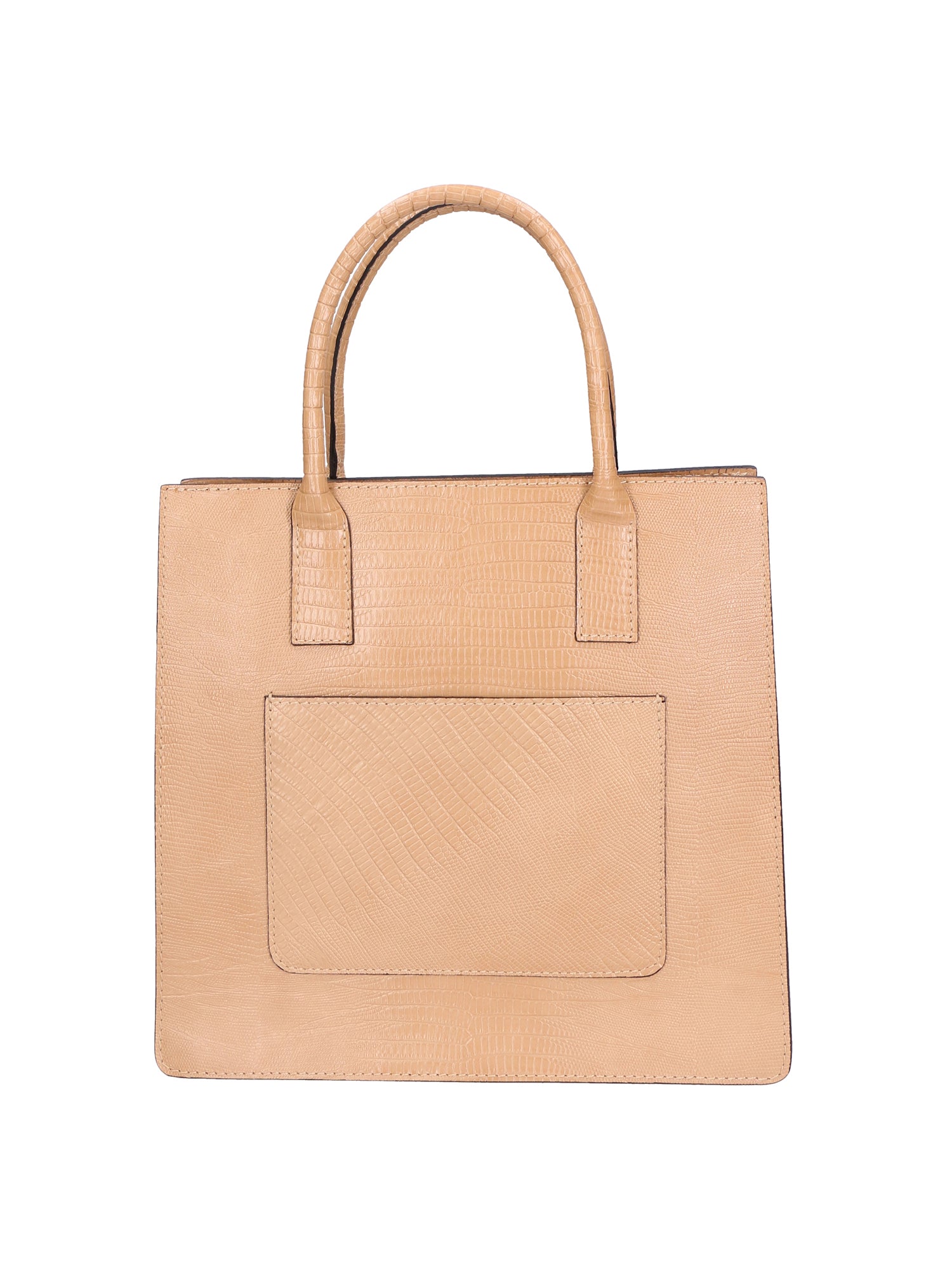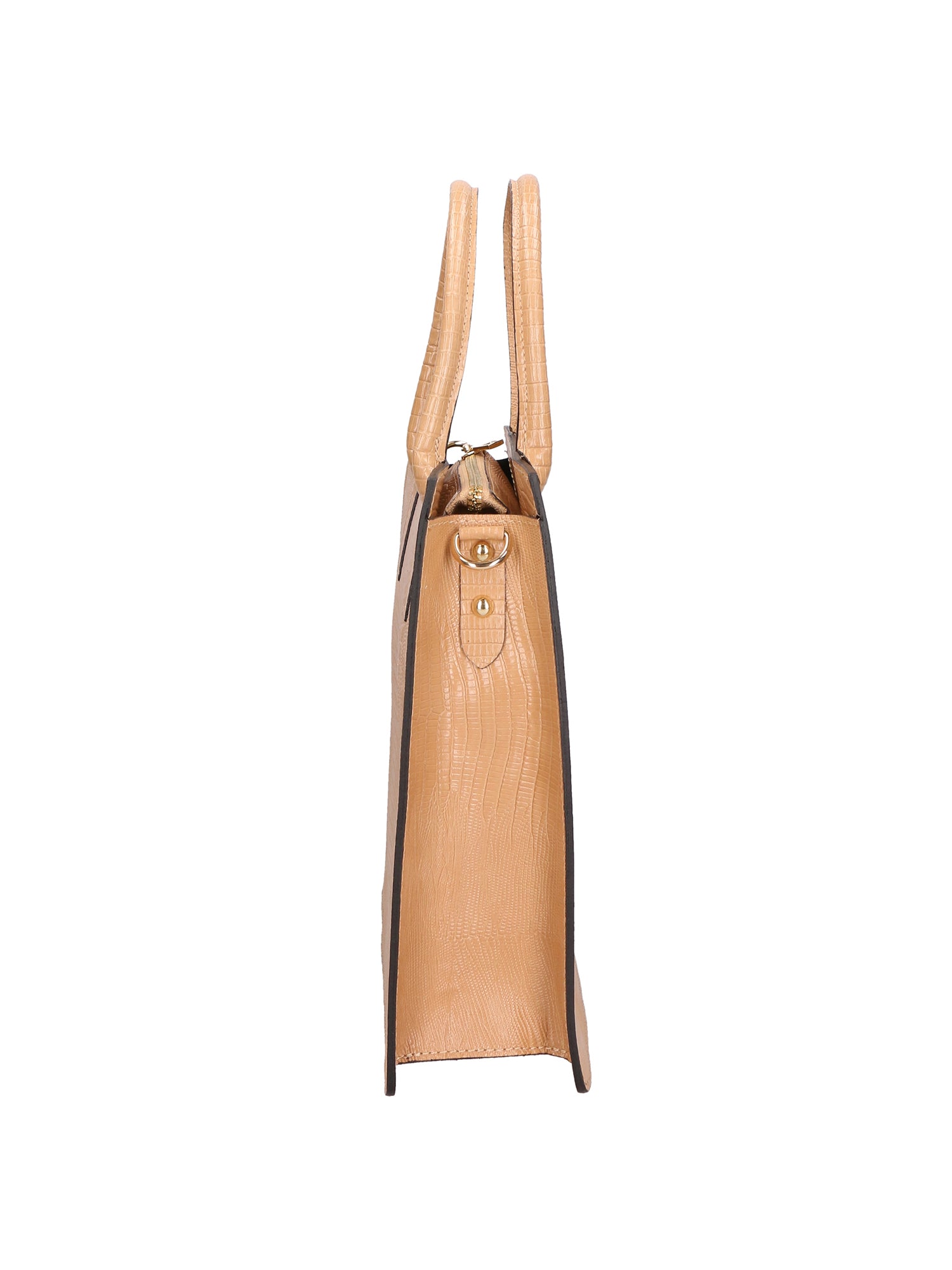 Borsa shopping rigida da donna, in vera pelle stampata con effetto lucertolina. Dotata di tracolla regolabile e rimovibile. Prodotto artigianale italiano. Made in Italy