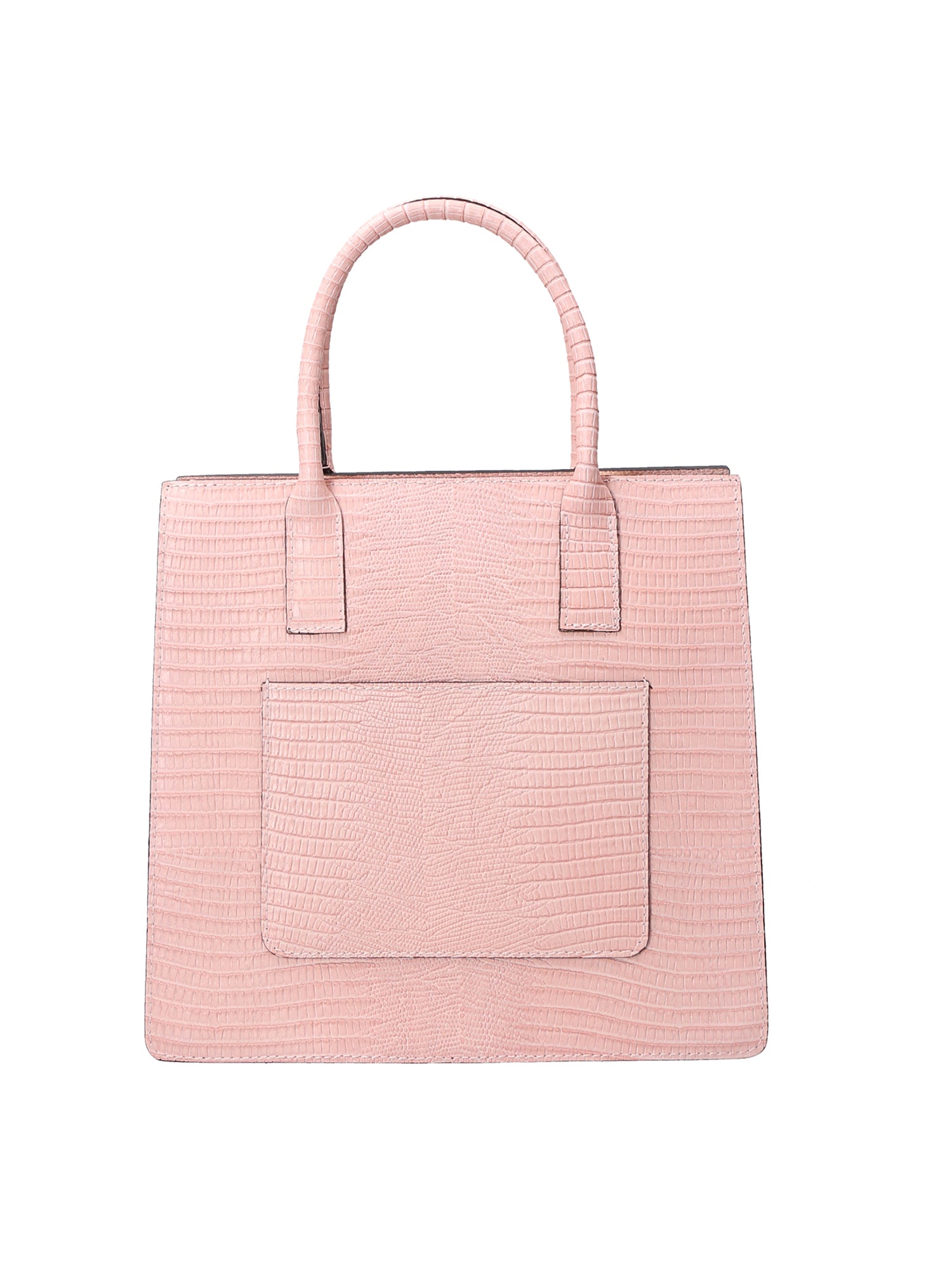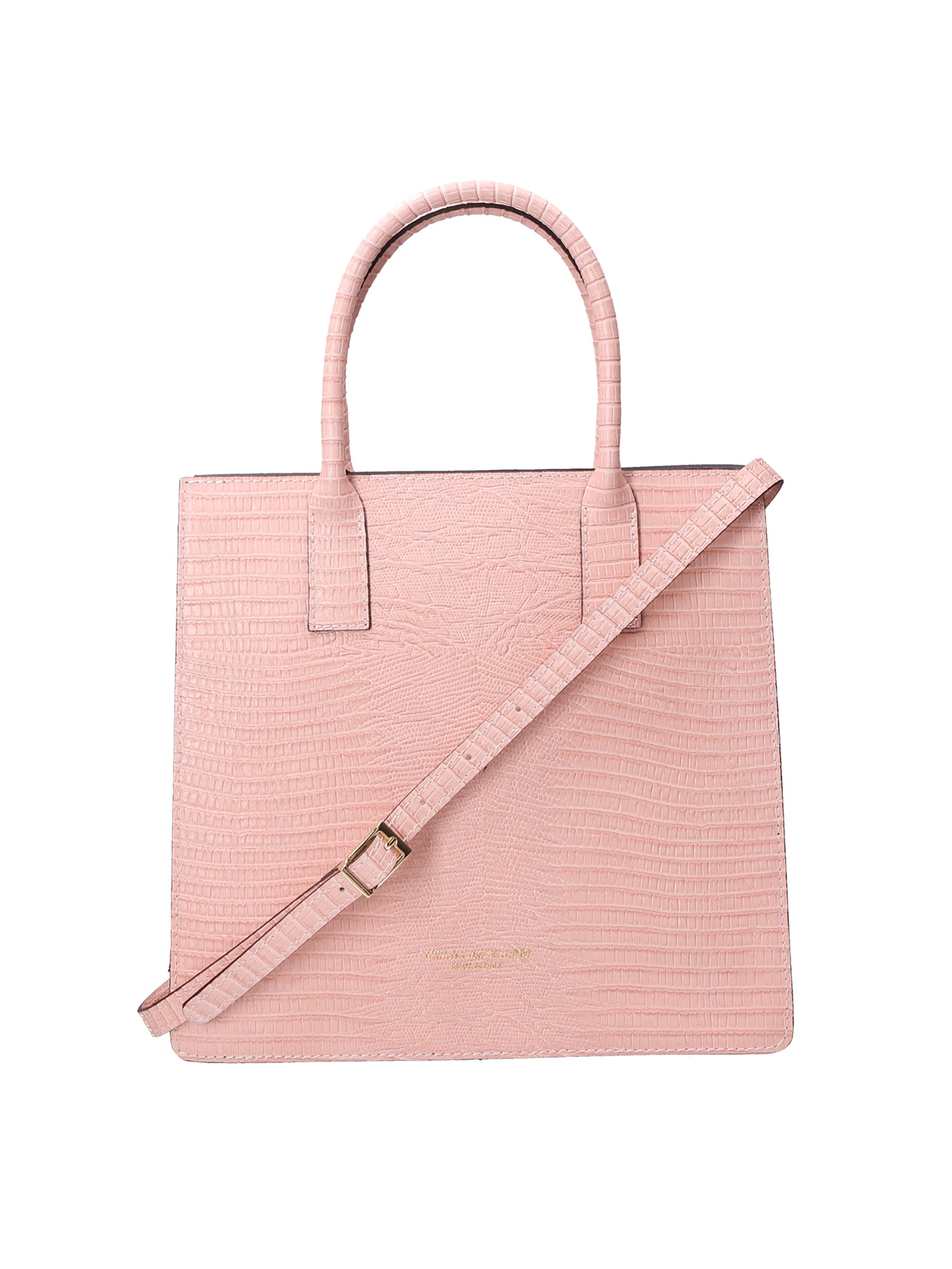 Borsa shopping rigida da donna, in vera pelle stampata con effetto lucertolina. Dotata di tracolla regolabile e rimovibile. Prodotto artigianale italiano. Made in Italy