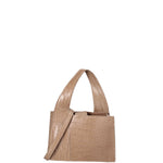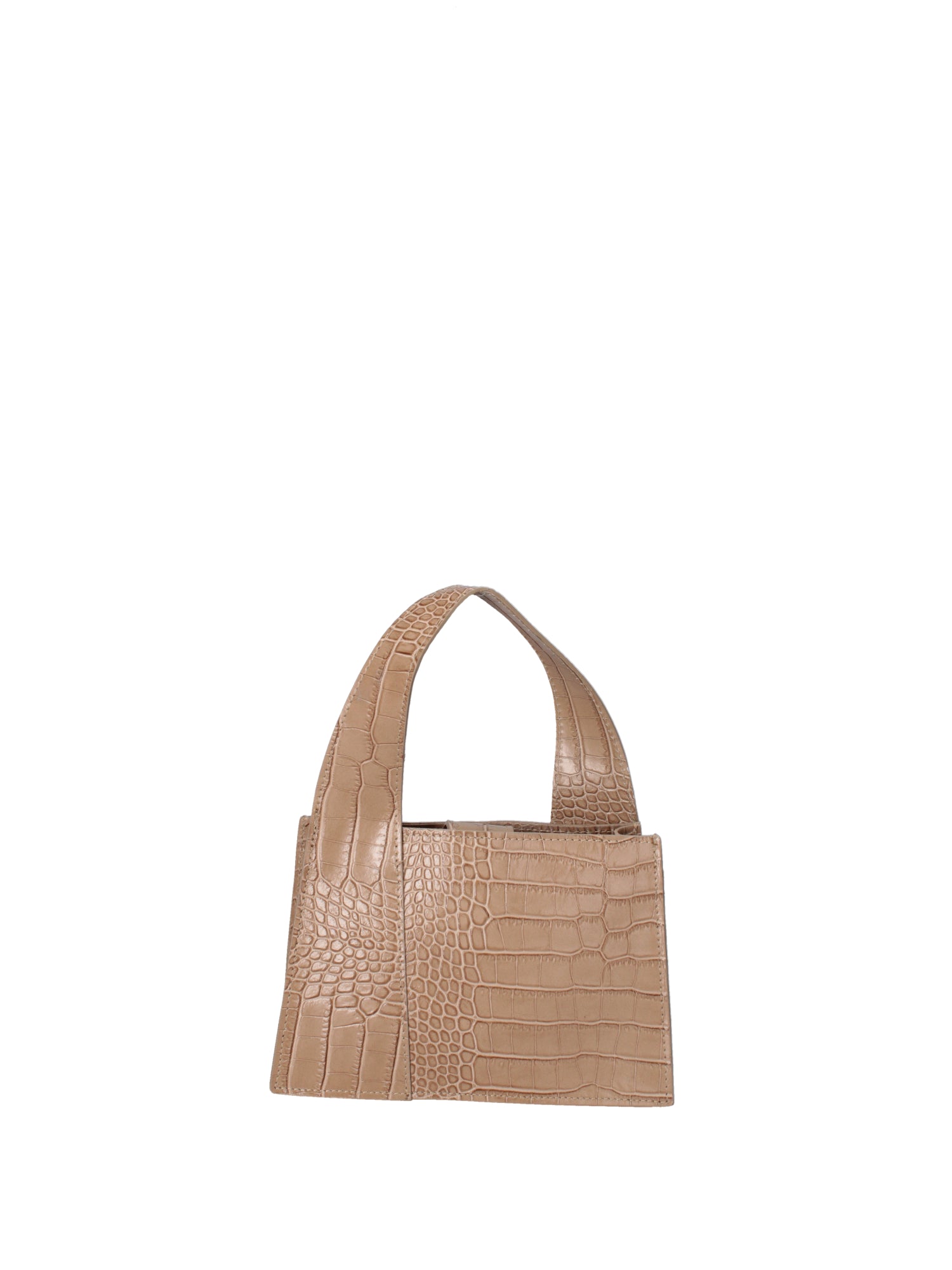Borsa a mano da donna. La chiusura è con bottone magnetico. Le tasche interne sono una aperta. Le tasche esterne sono assenti. La tracolla è regolabile e rimovibile in pelle . Il manico è in pelle. Gli scomparti interni sono uno. Il materiale esterno è vera pelle stampata con effetto coccodrillo. Internamente è sfoderato. Misure: 21x14x8 cm . Made in Italy